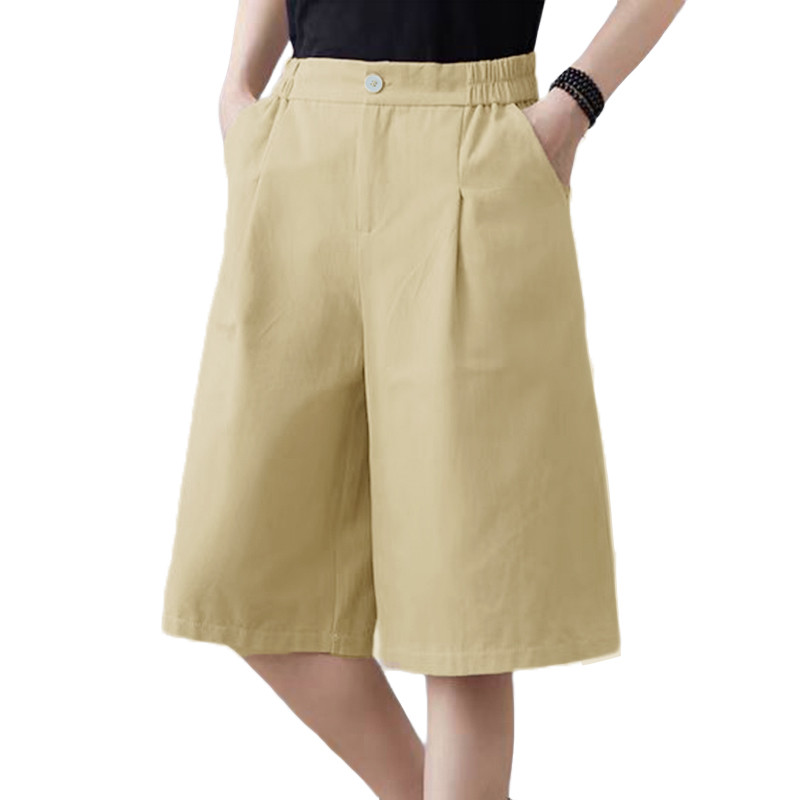 ZANZEA Women Korean Casual All Match Back Elastic Waist Mid-Length Wide Leg Shorts