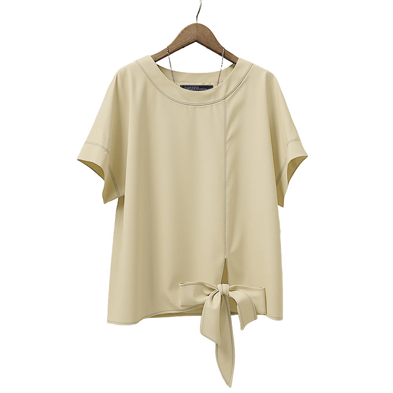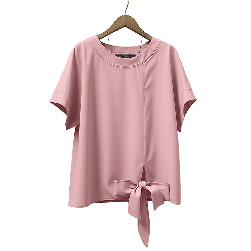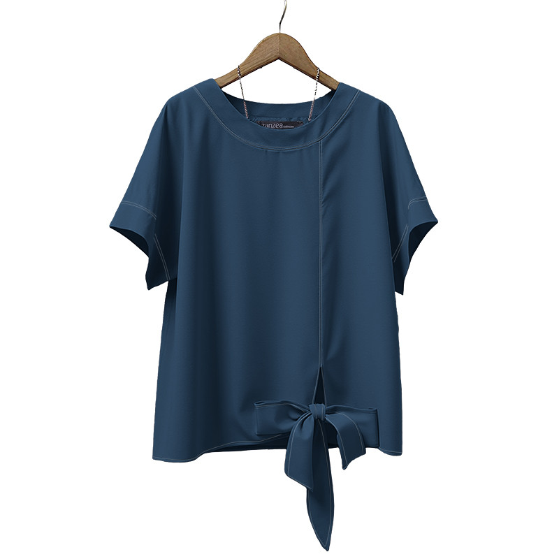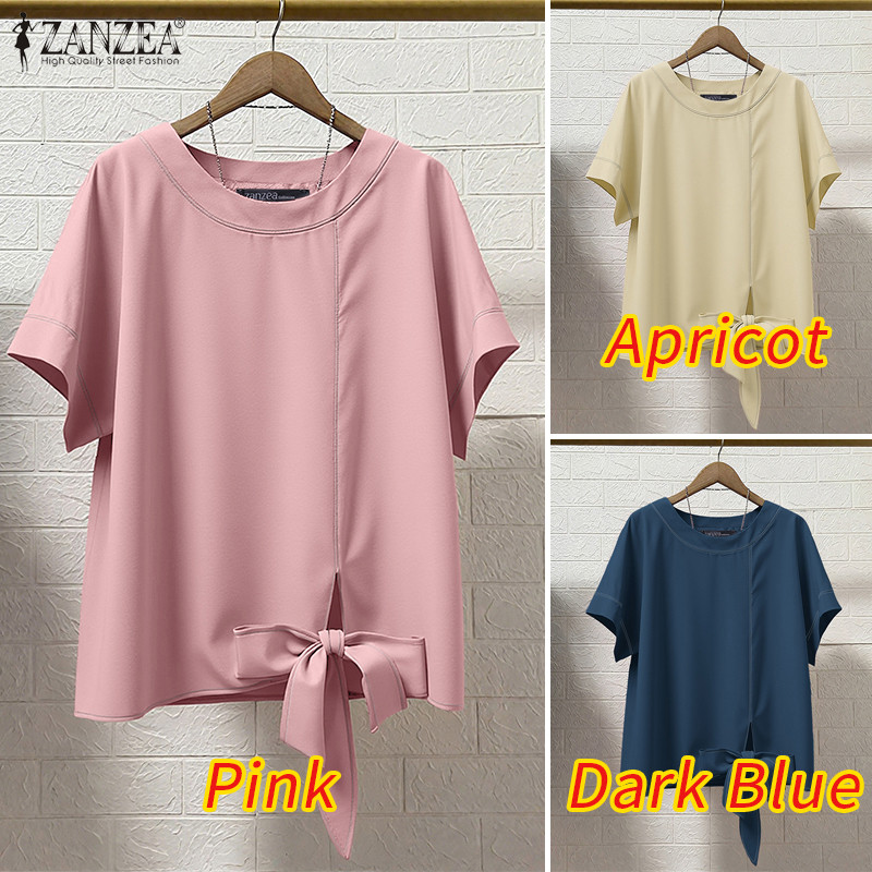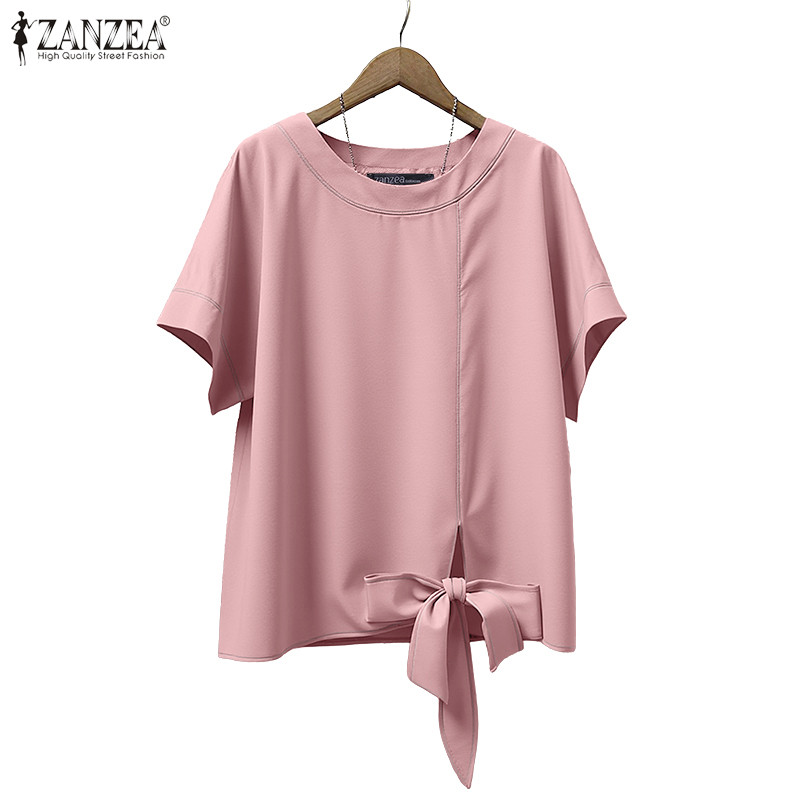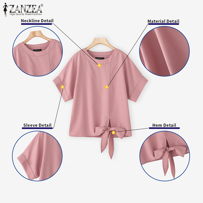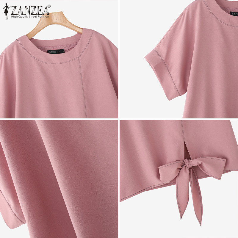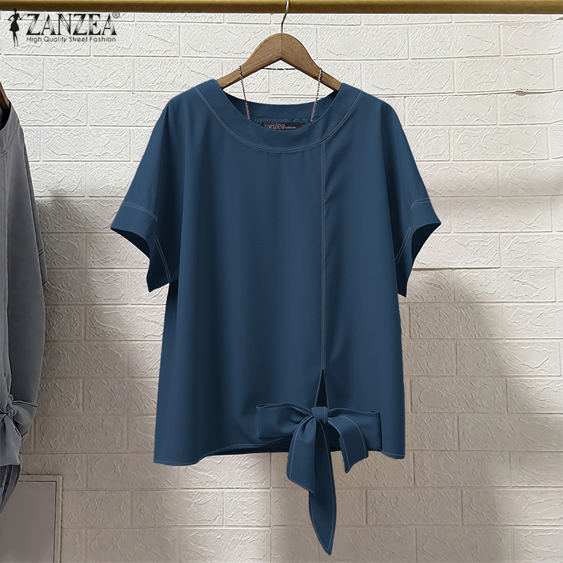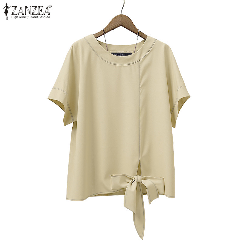 ZANZEA Women's Korean Style Casual Loose Blouse - Round Neck, Short Sleeves, Twisted Hem