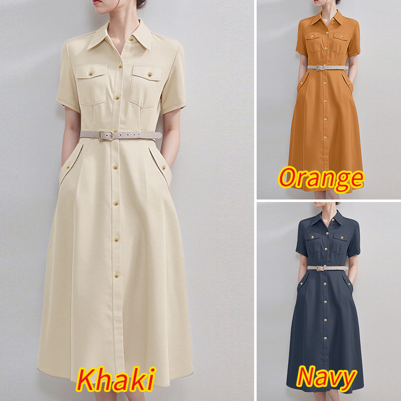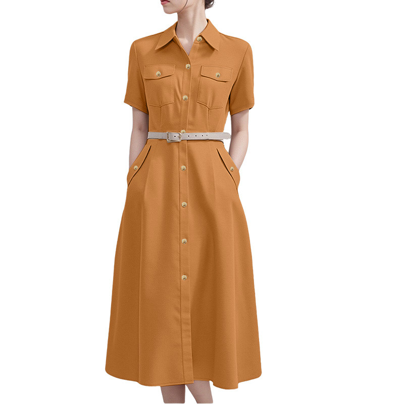 ZANZEA Women Korean Workplace Advanced Lapel Short Sleeve Single-Breasted Midi Shirt Dresses