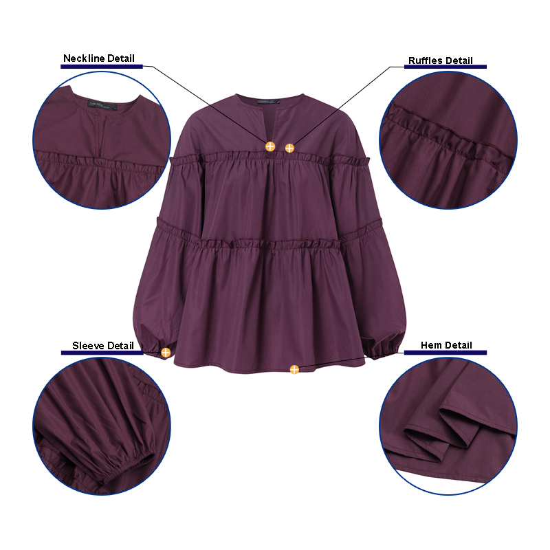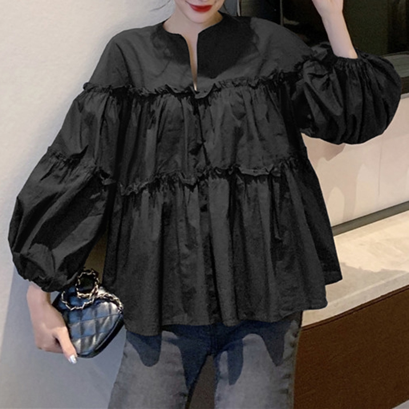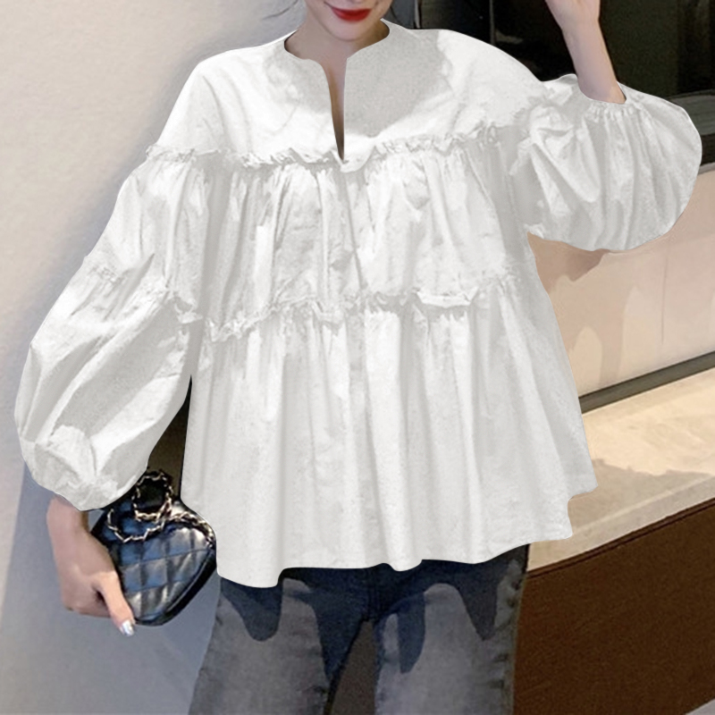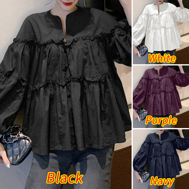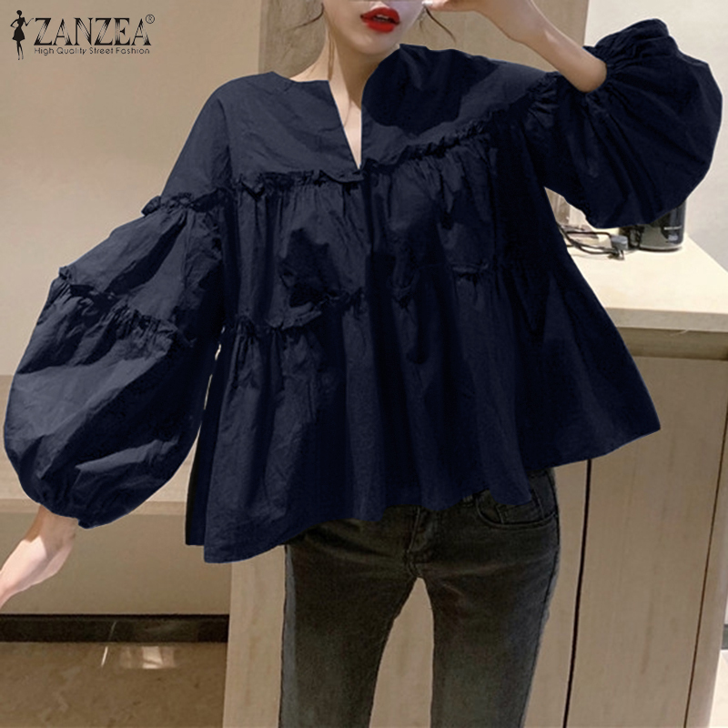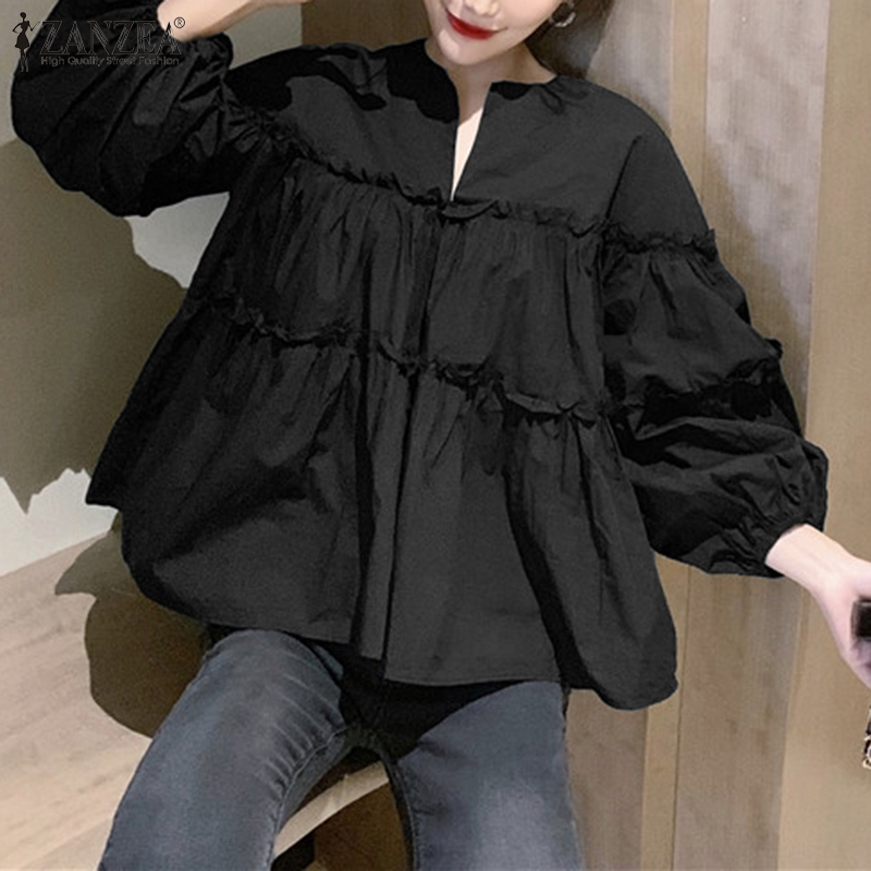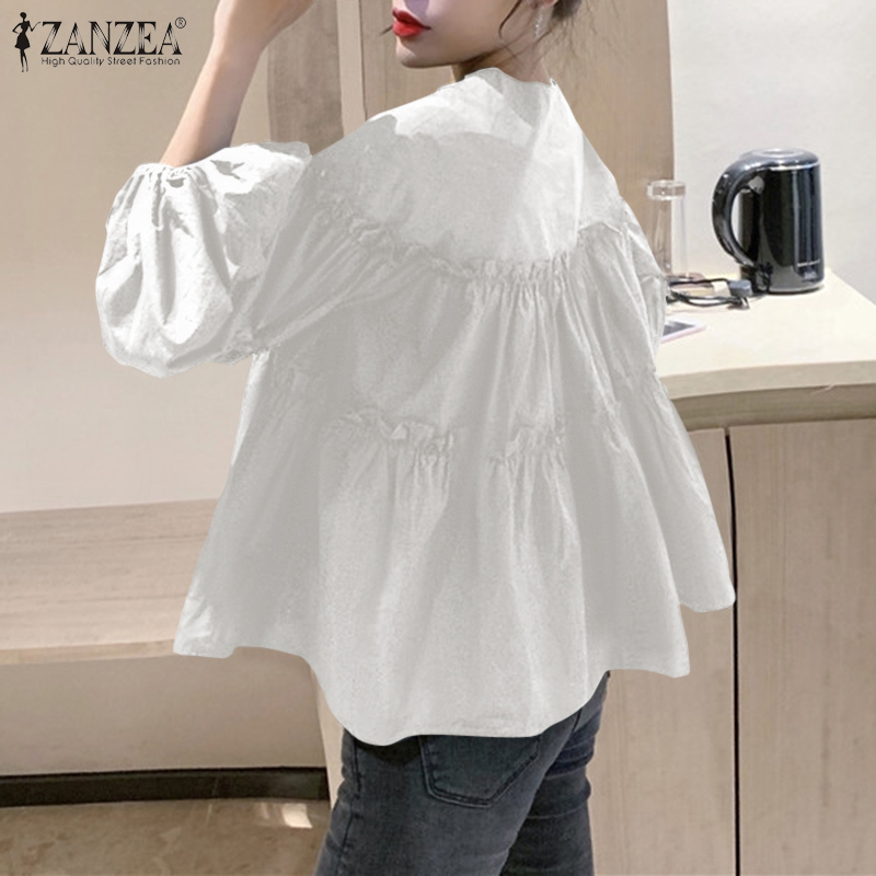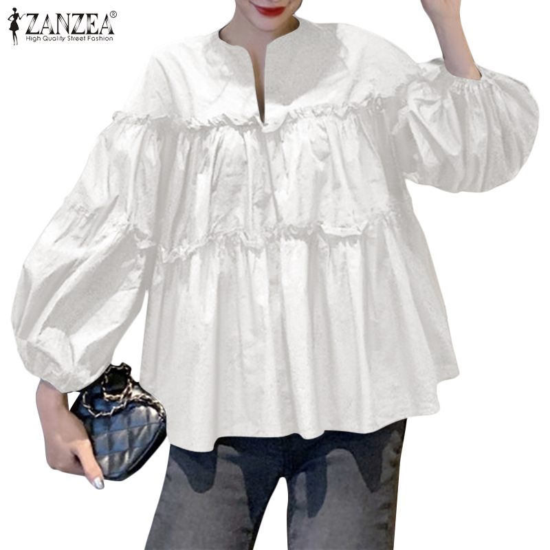 ZANZEA Women Casual Puff Sleeve Ruffled Tiered Peplum Blouse