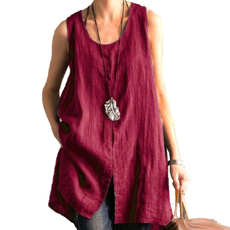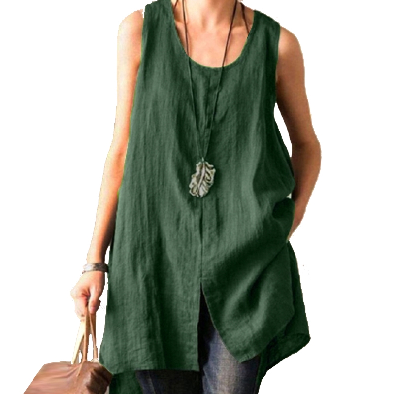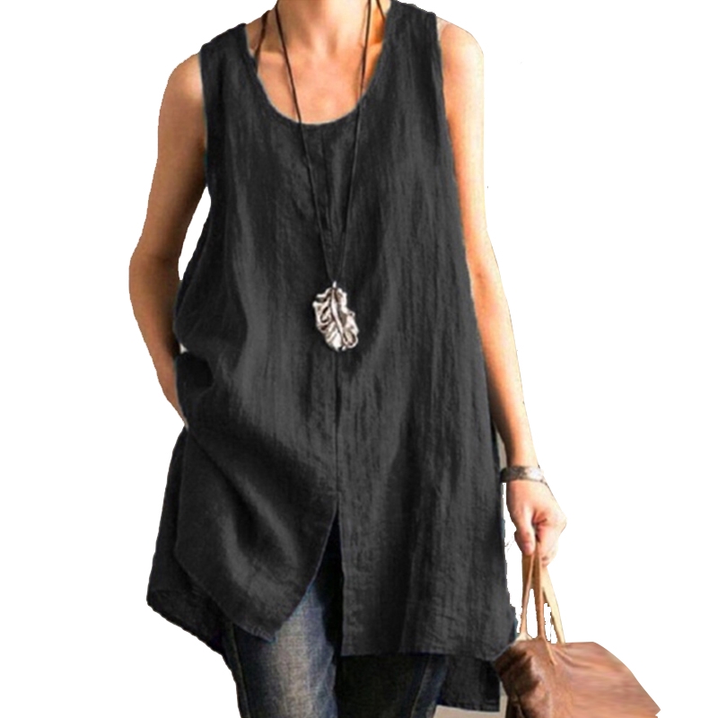 ZANZEA Women Casual Crew Neck Singlet Sleeveless Loose Blouse