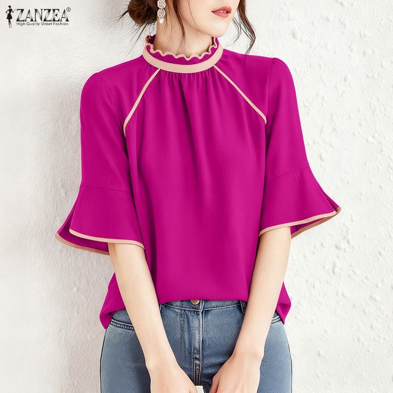 Zanzea Women Korean Fashion Trumpet Sleeves Turtleneck Lace Floral Blouses