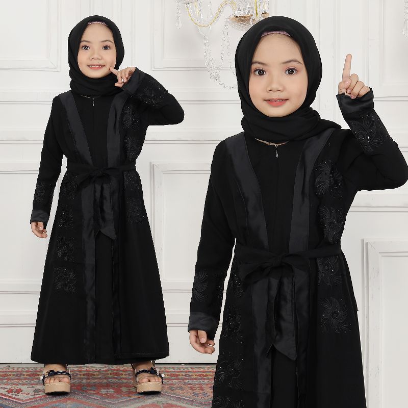 Gallery Abaya Anak Turkey 01 Gamis Syari Black Jetblack Embroidery Turkey Beautiful Muslimah Türkiye Eid Umrah Luxurious Lace Dress Women's Clothes
