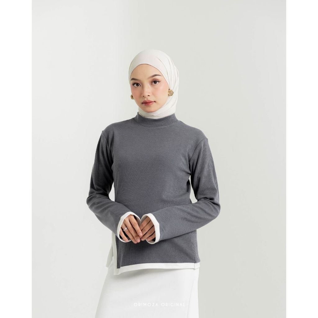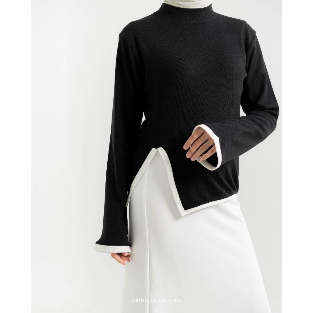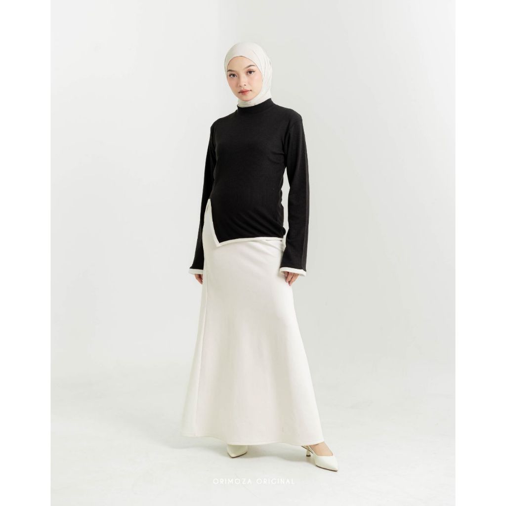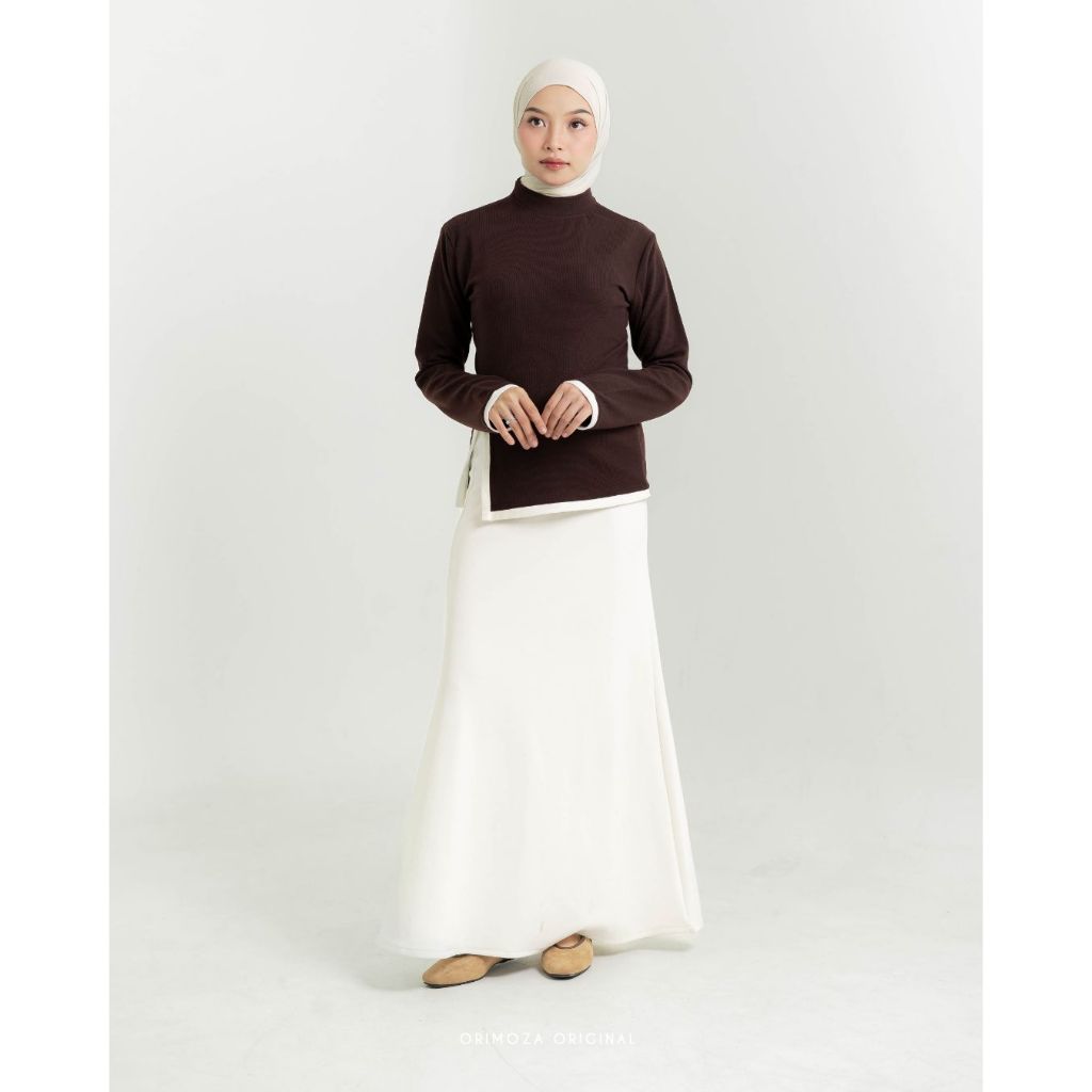 Orimoza Nola Blouse White List Side Slit SnowRib Material | Comfortable Casual Blouse Muslimah Blouse