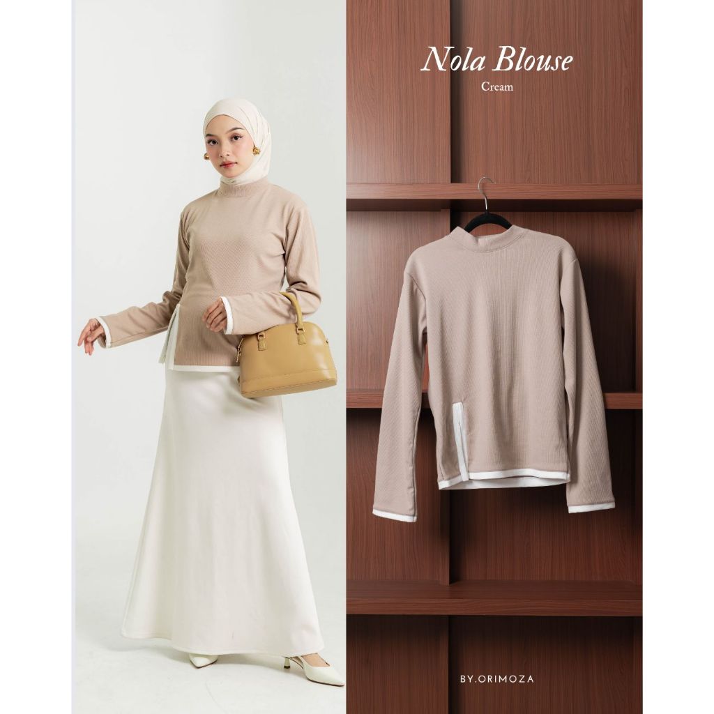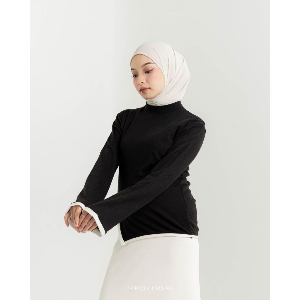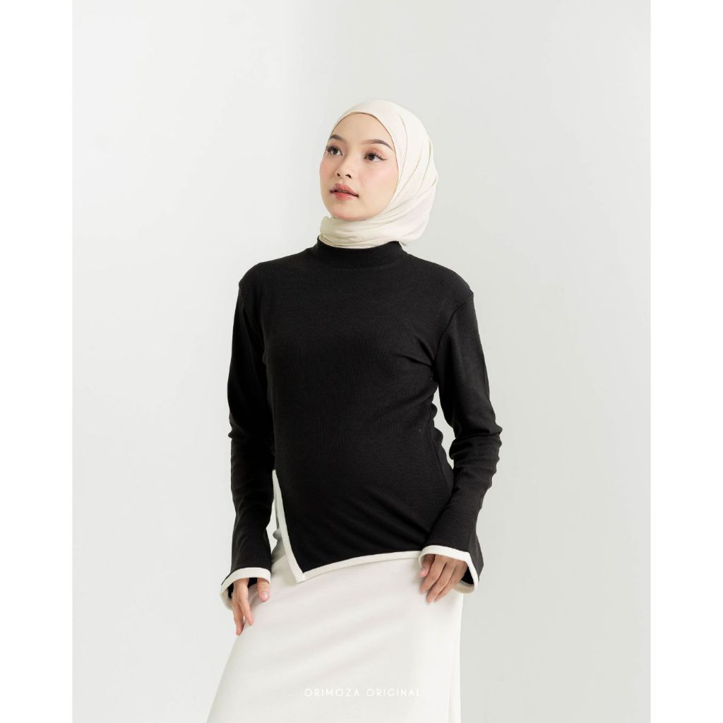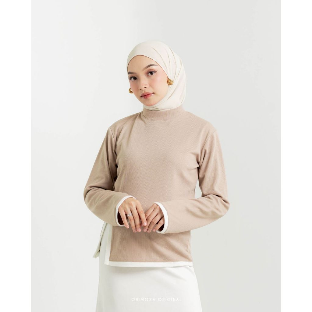 Orimoza Nola Blouse White List Side Slit SnowRib Material | Comfortable Casual Blouse Muslimah Blouse