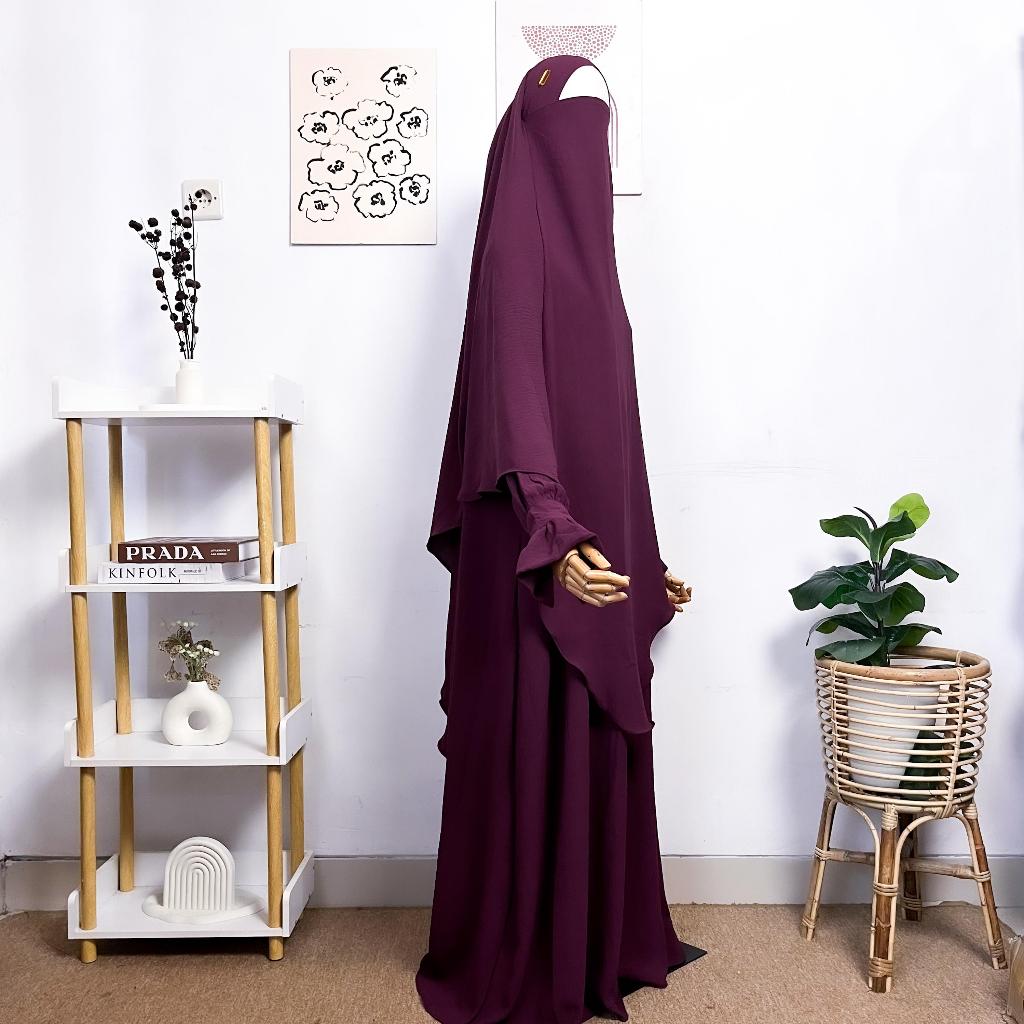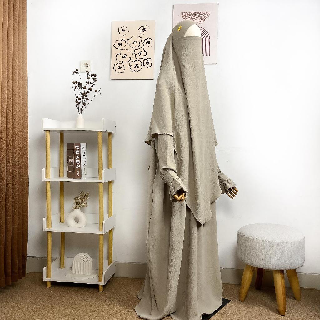 Tsurayya - One Set Jennaira Abaya Crincle Airflow (Abaya+Frenchkhimar Long Free Cadar Tali)/One Set Lebaran Abaya Set Hijab