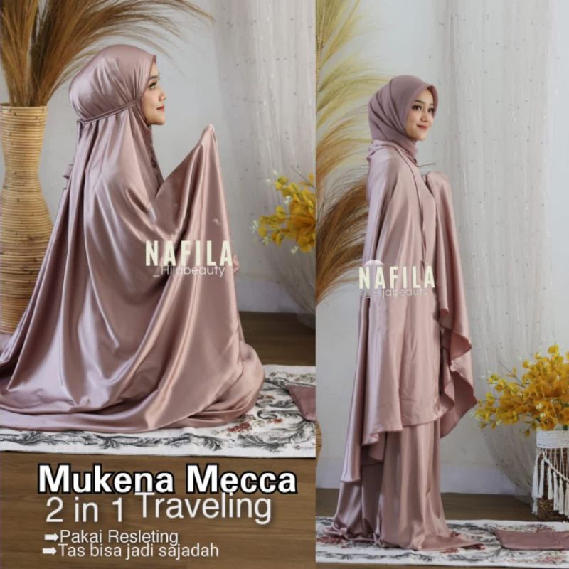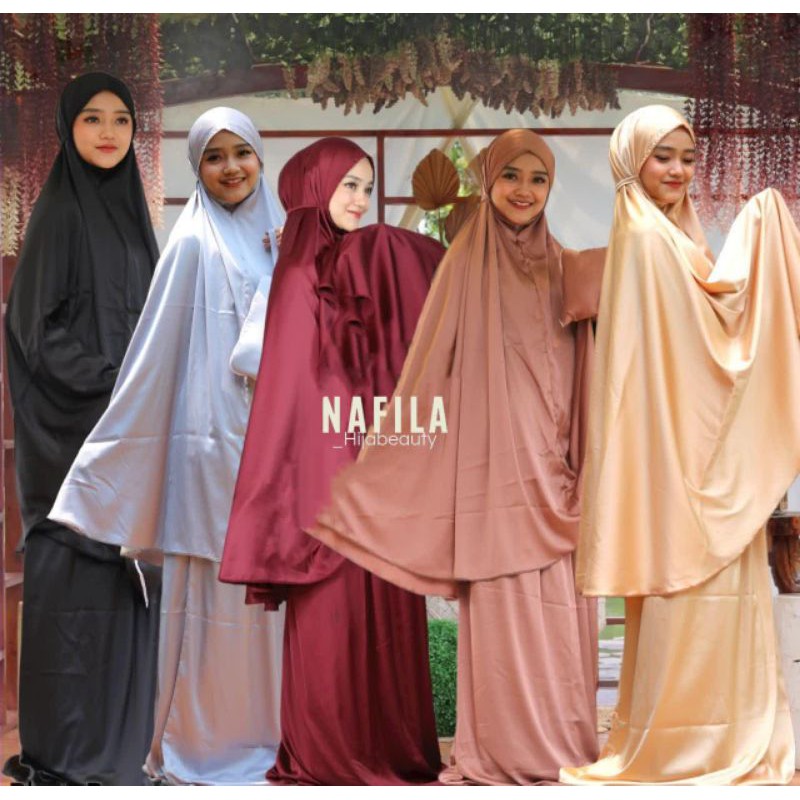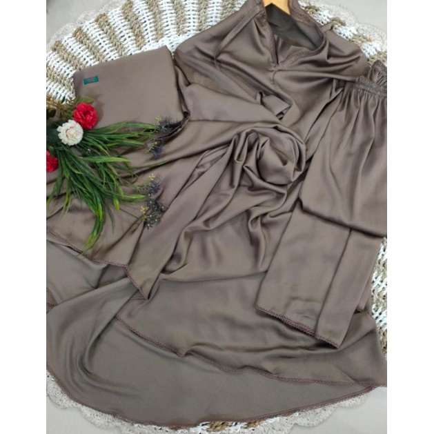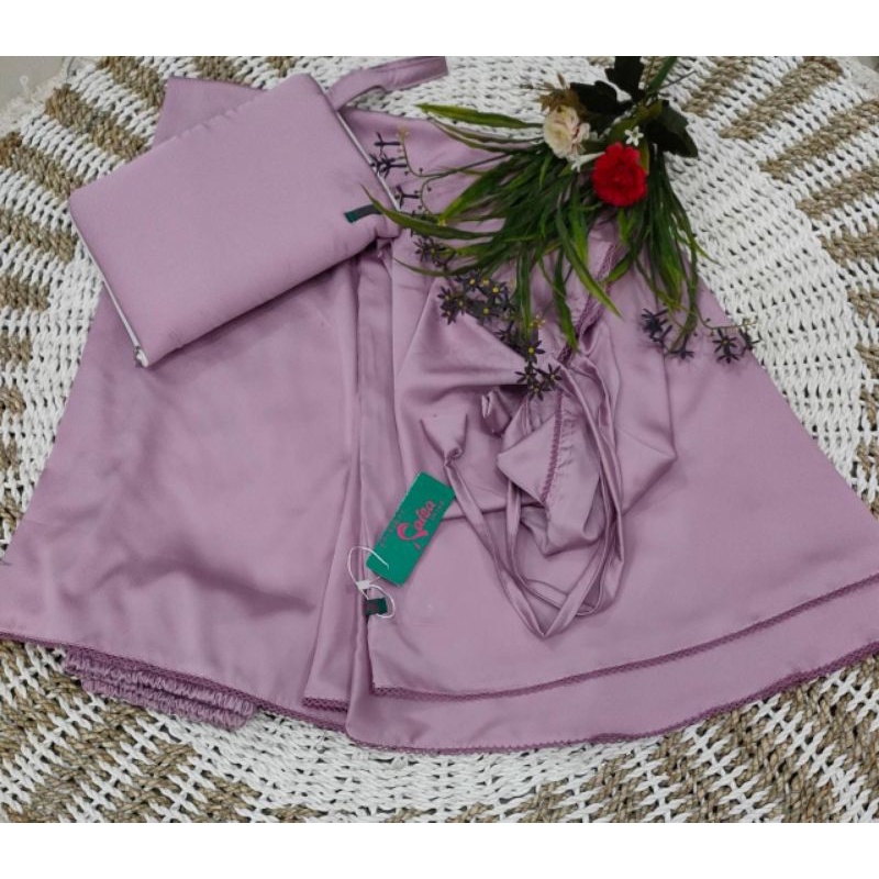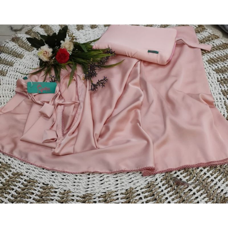 Telekung Mukena Silky Plain Premium Jumbo Silk Satin Material Soft Light Adem 2 in 1 With Chin Zipper By Raisa