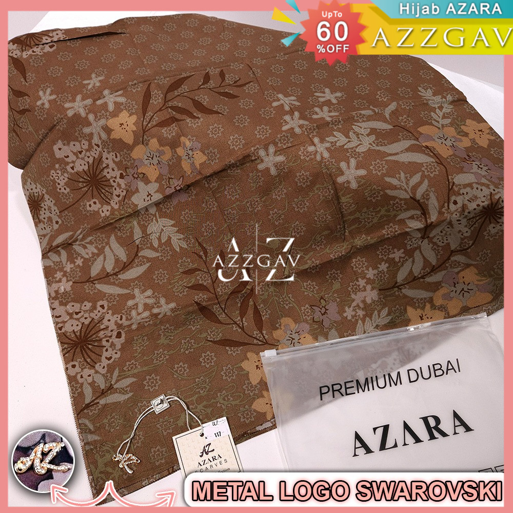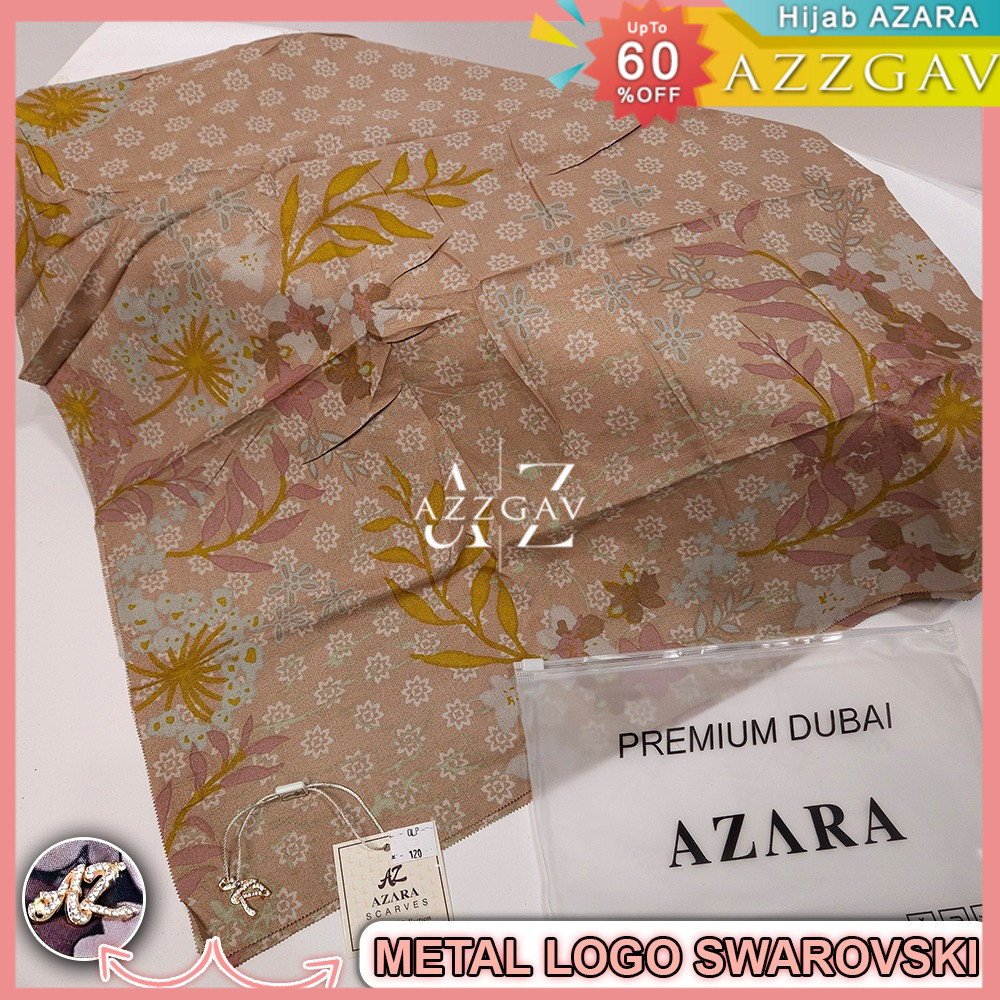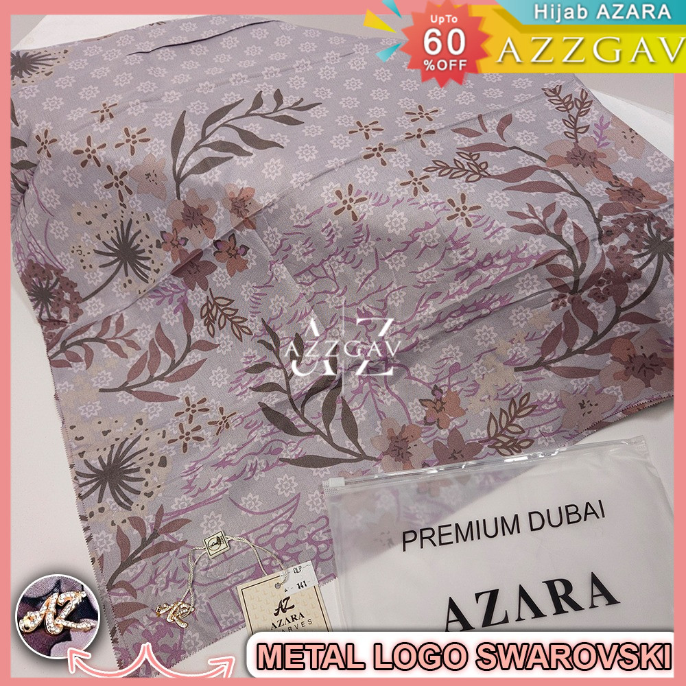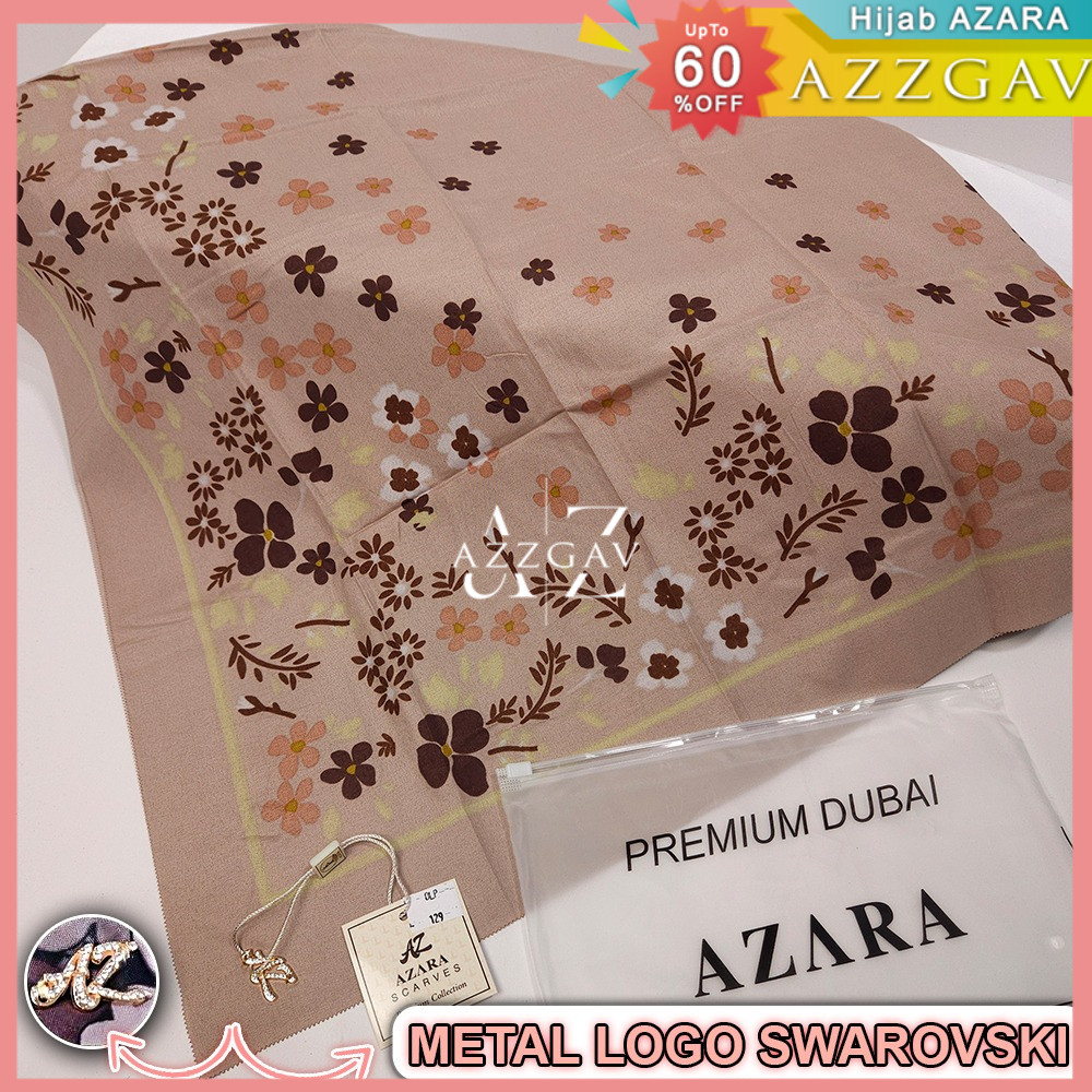 AZARA PREMIUM DUBAI SQUARE VOAL HIJAB, METAL LOGO POUCH PACKAGING, CHOICE OF MOTIFS, square hijab