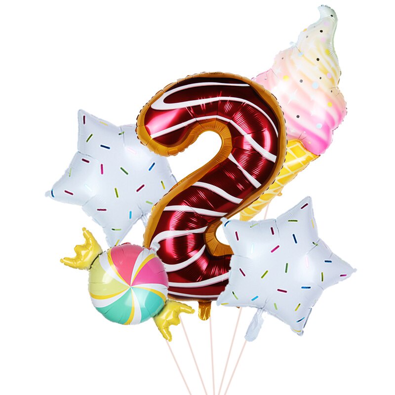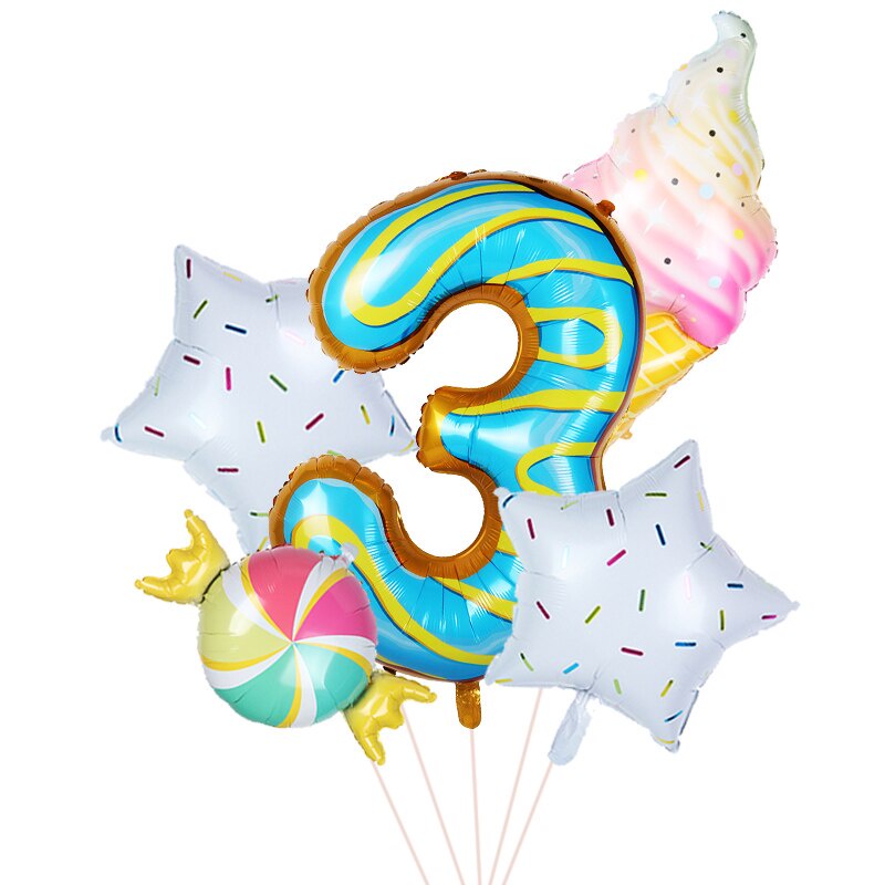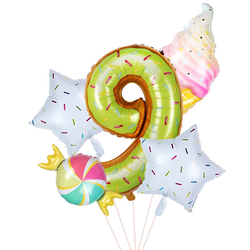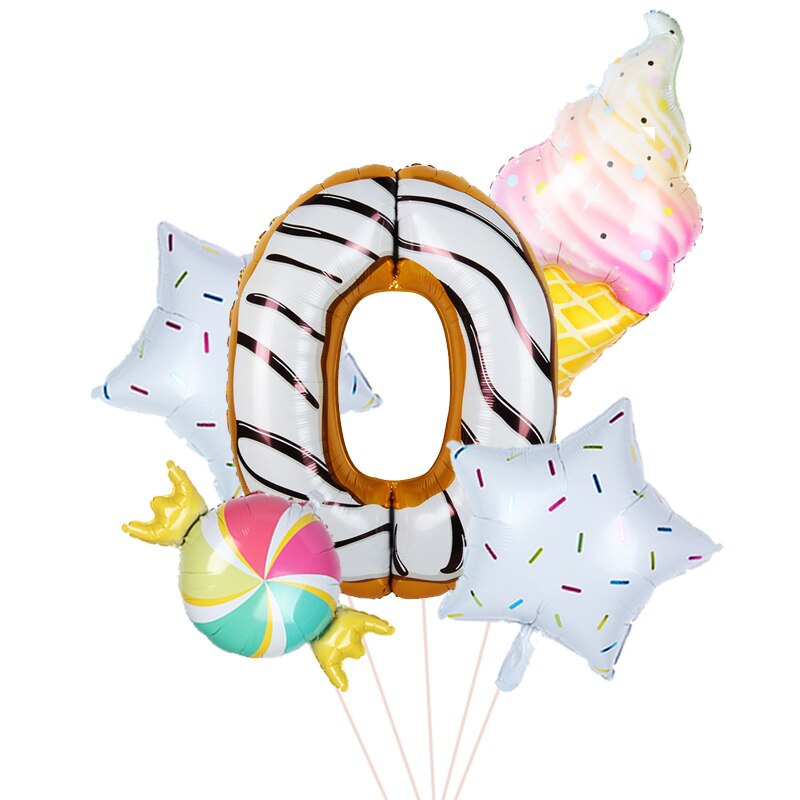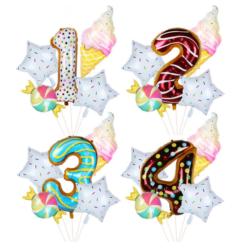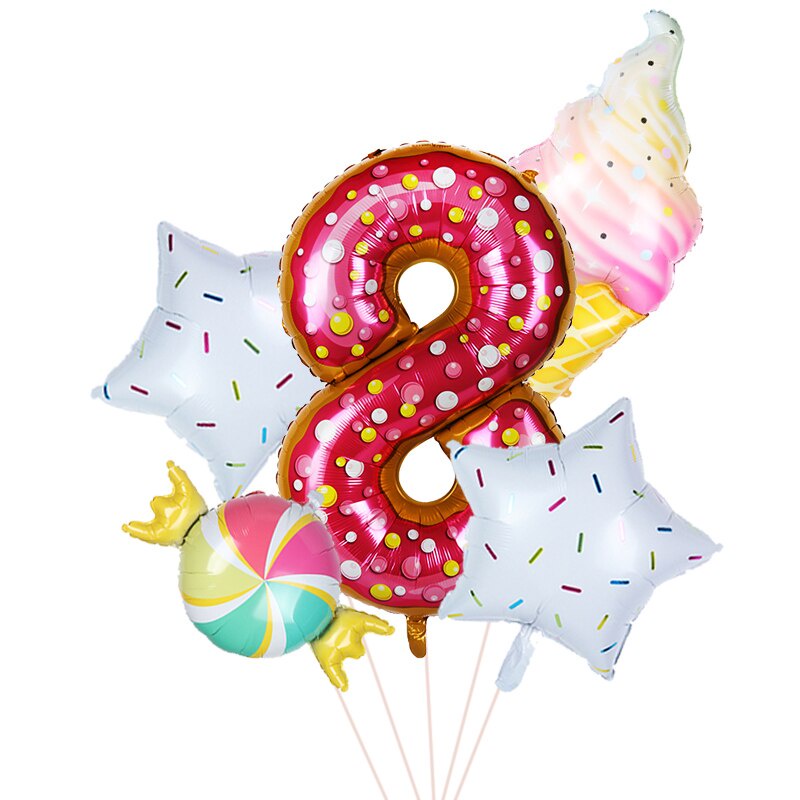 5pcs/set Donut Candy Ice Cream Foil Balloons Baby Shower Birthday Party Decoration kids 1 2 3 4 5 6 7 8 9 year old Digital Balloon globos