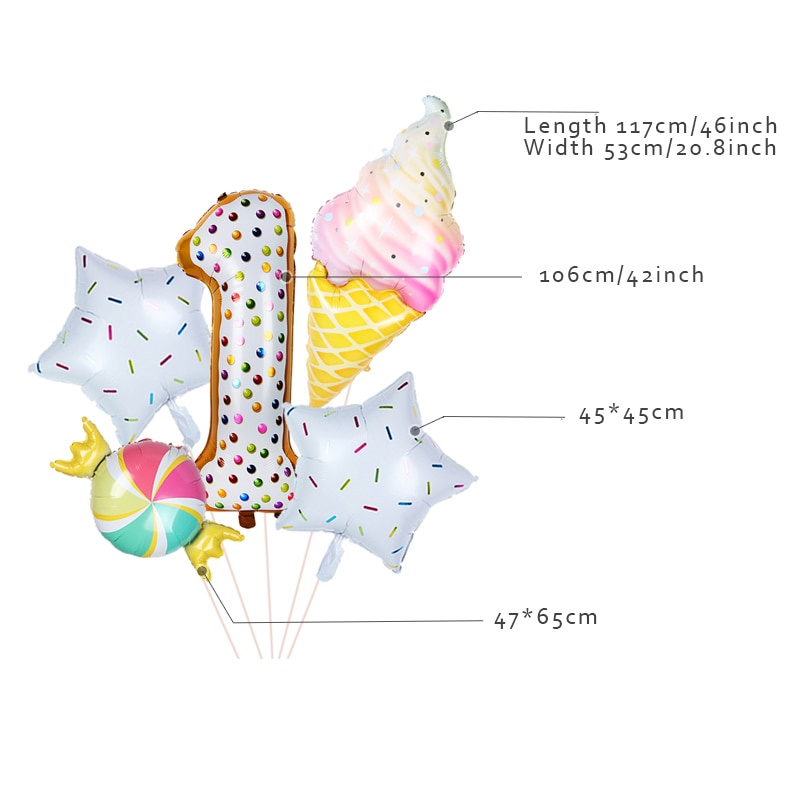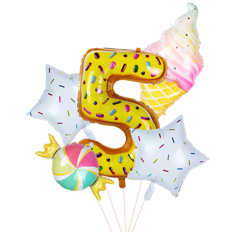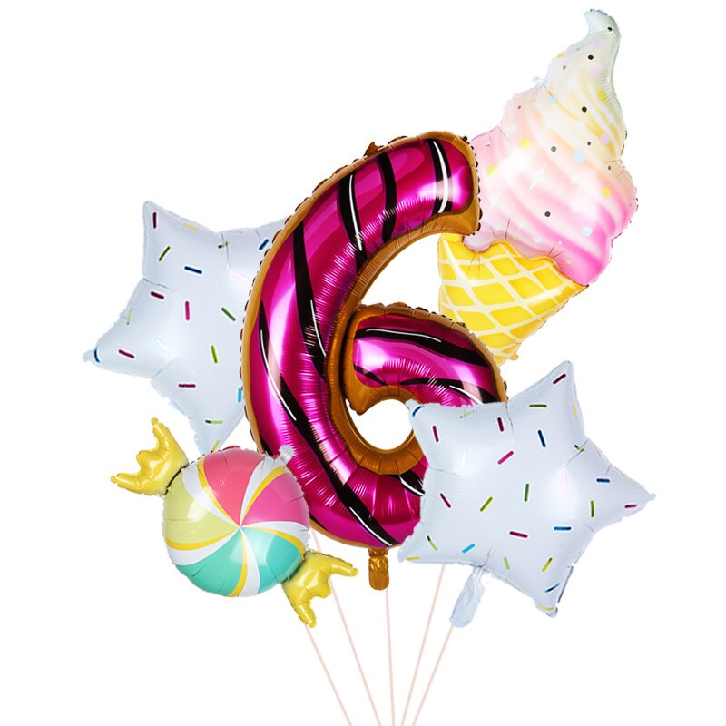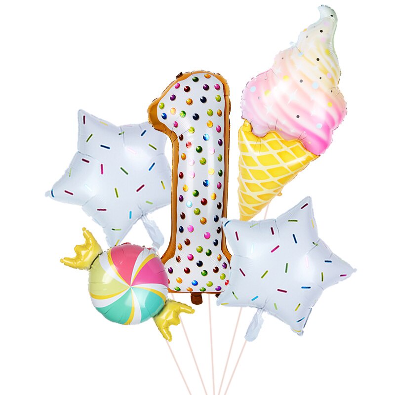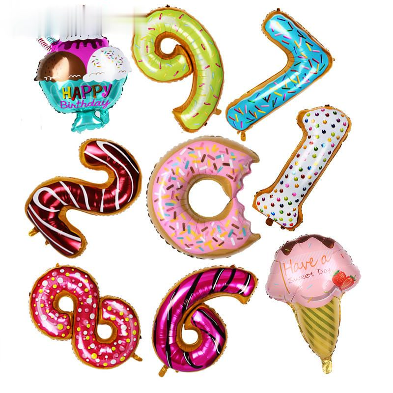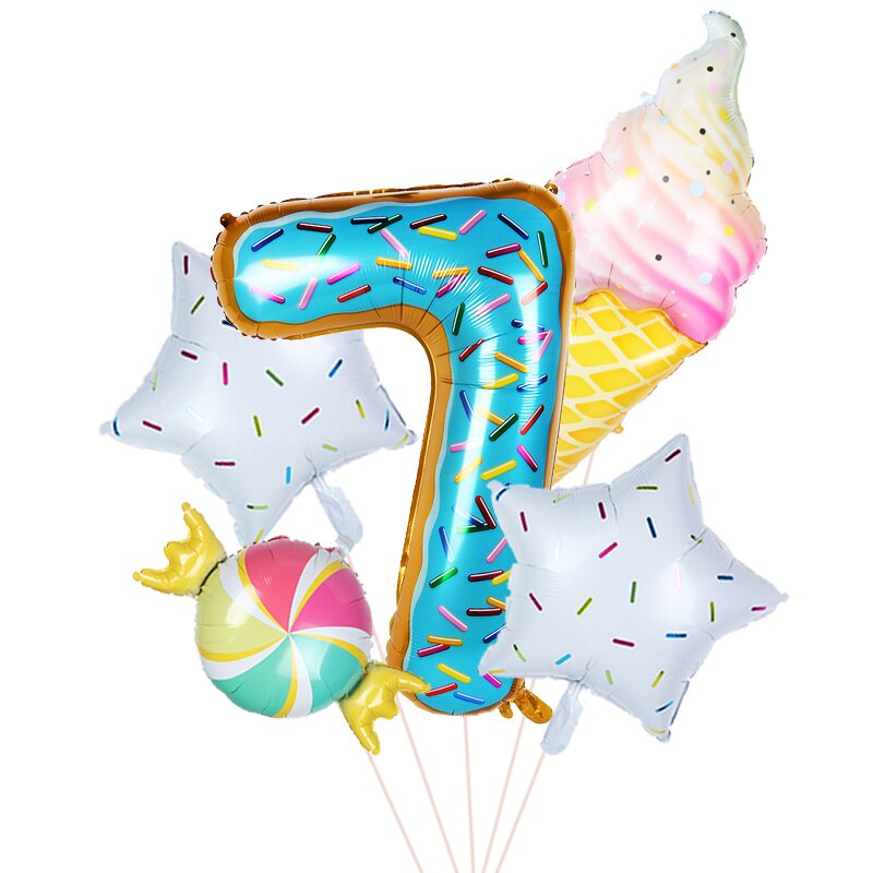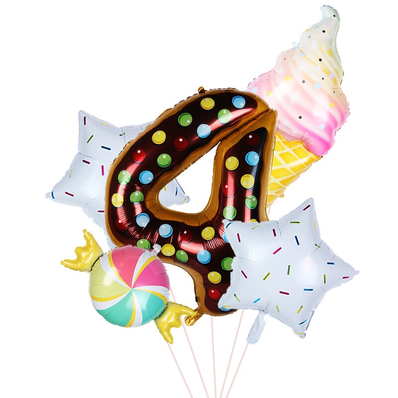 5pcs/set Donut Candy Ice Cream Foil Balloons Baby Shower Birthday Party Decoration kids 1 2 3 4 5 6 7 8 9 year old Digital Balloon globos