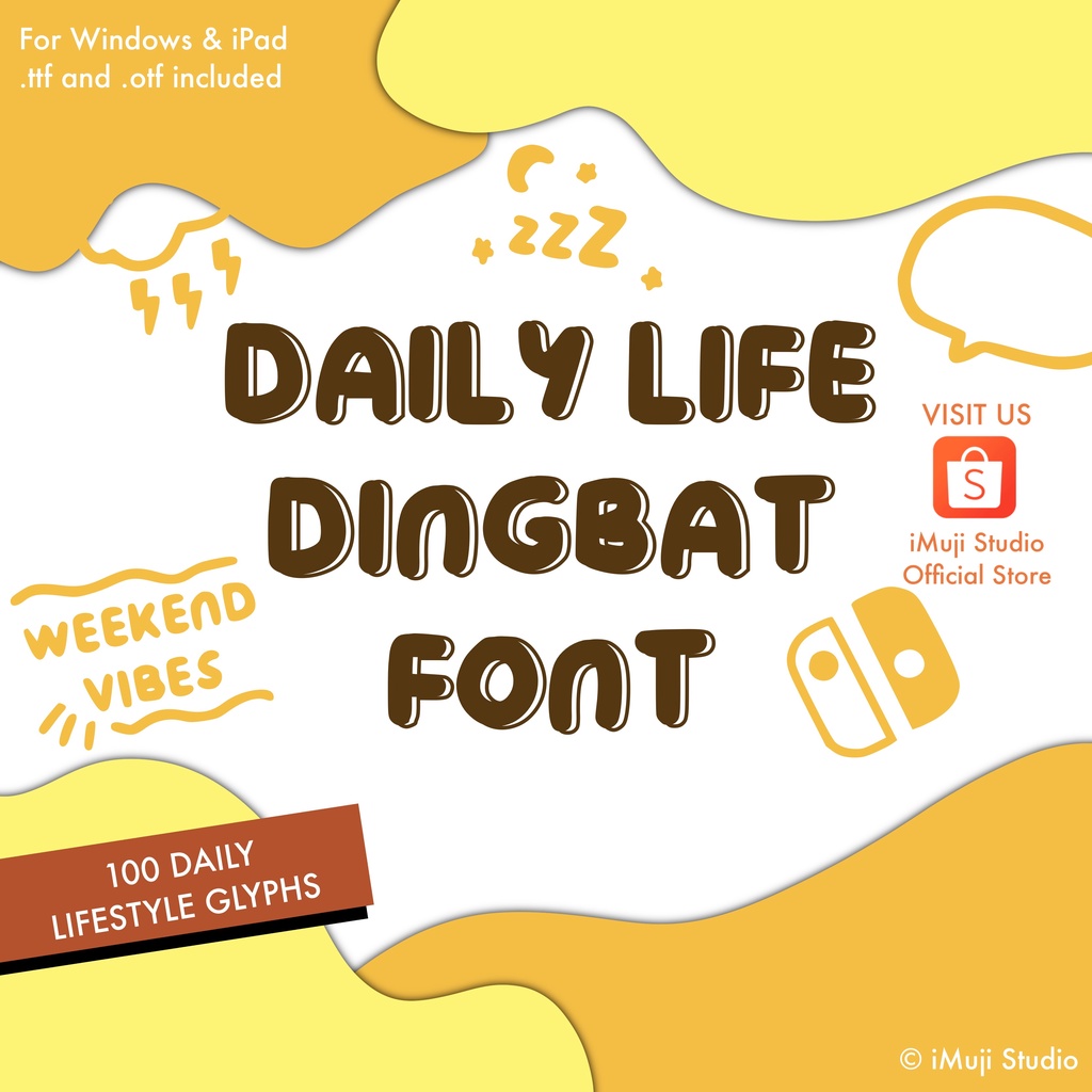 Daily Life Dingbat Font | .ttf .otf files, Lifestyle icons, Font for Windows & iPad, GoodNotes/Notability