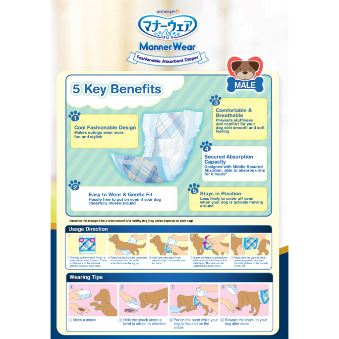 [MALE] Unicharm Manner Wear Male Dog Band, Dog Diaper, Strong Absorption - S, M, L, Extra Large