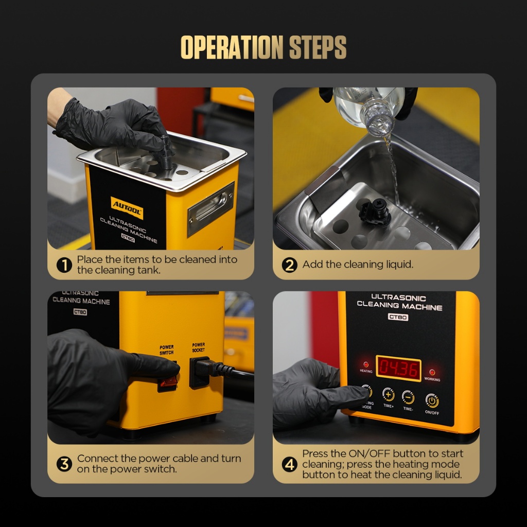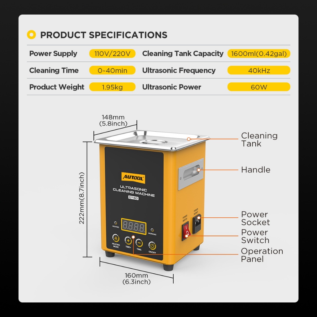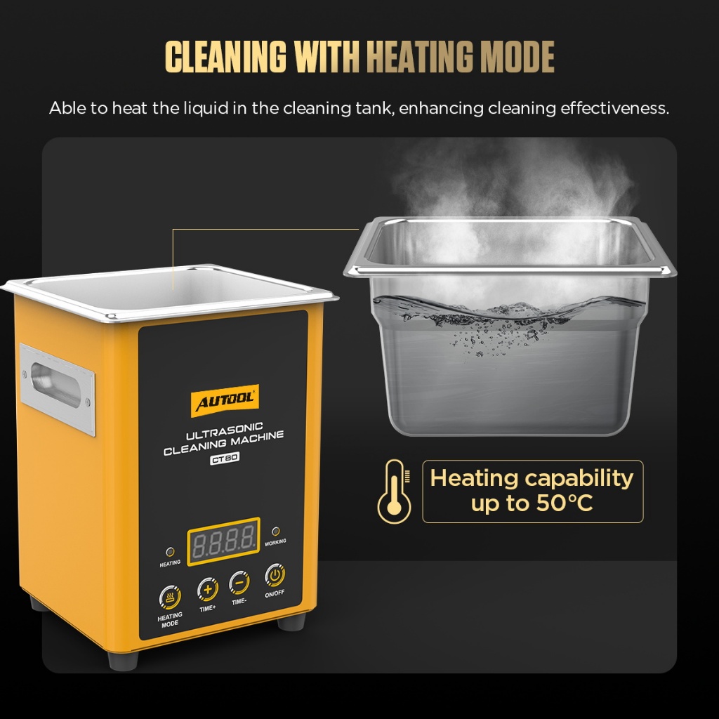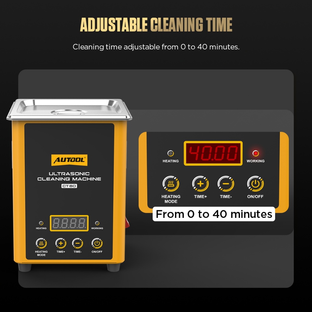 AUTOOL CT80 ultrasonic Cleaning machine Automobile injector cleaning machine heating mode jewelry hardware parts Large capacity 1600ml