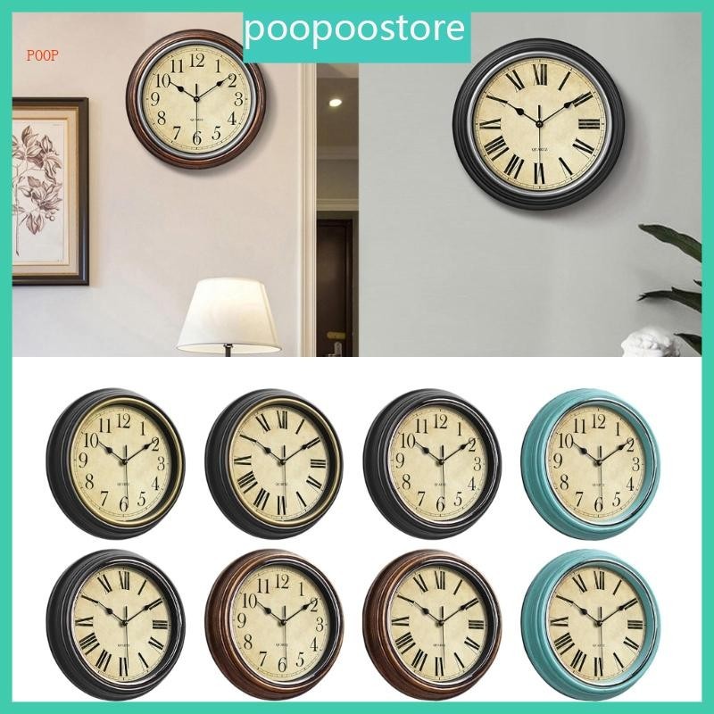 POOP Battery Operated Wall Clock 12in Vintage Wall Clocks Retro Quiet Non Ticking