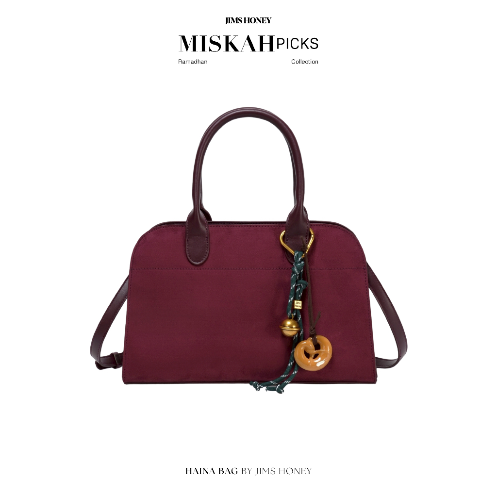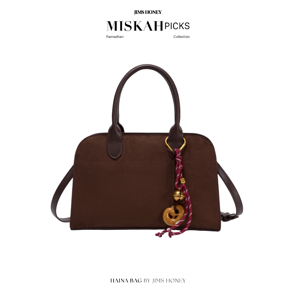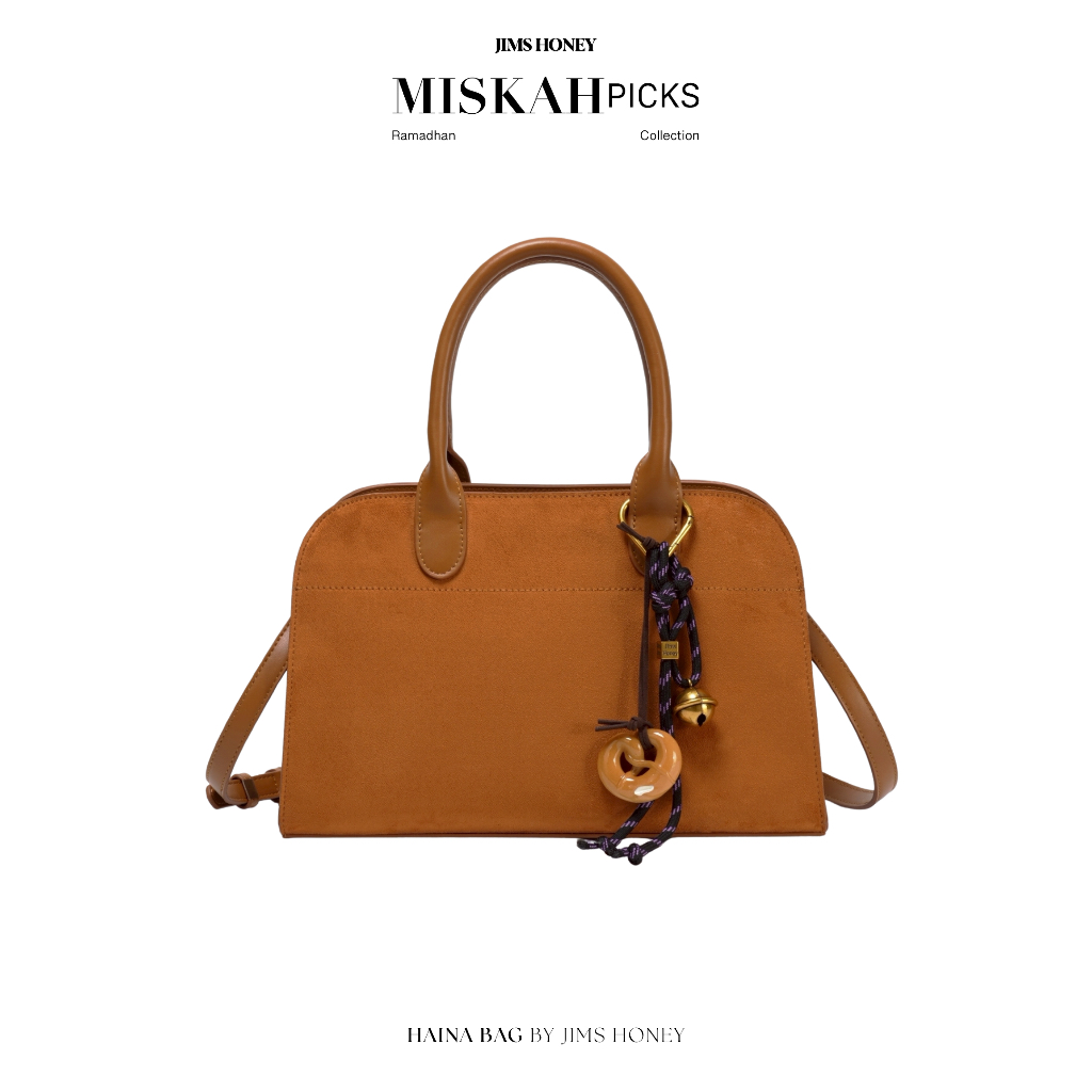 JIMS HONEY X Miskah Pick's - Haina Bag | Ramadan Collection 2026 Women's Sling Bag Top handle bag Ramadan collection Structured Bag Suede Bag certified clean look with charm bag