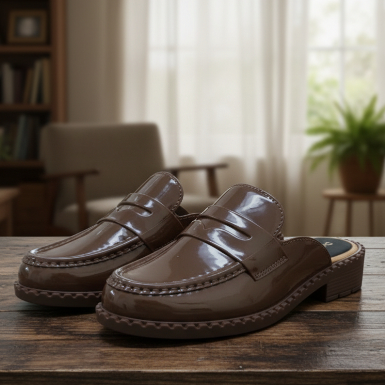 Porto Pearce - Comfortable Anti-Slip Hells Shoes | Women's Shoes | Glossy Office Shoes | Cherry Red | Chocolate Chocolate