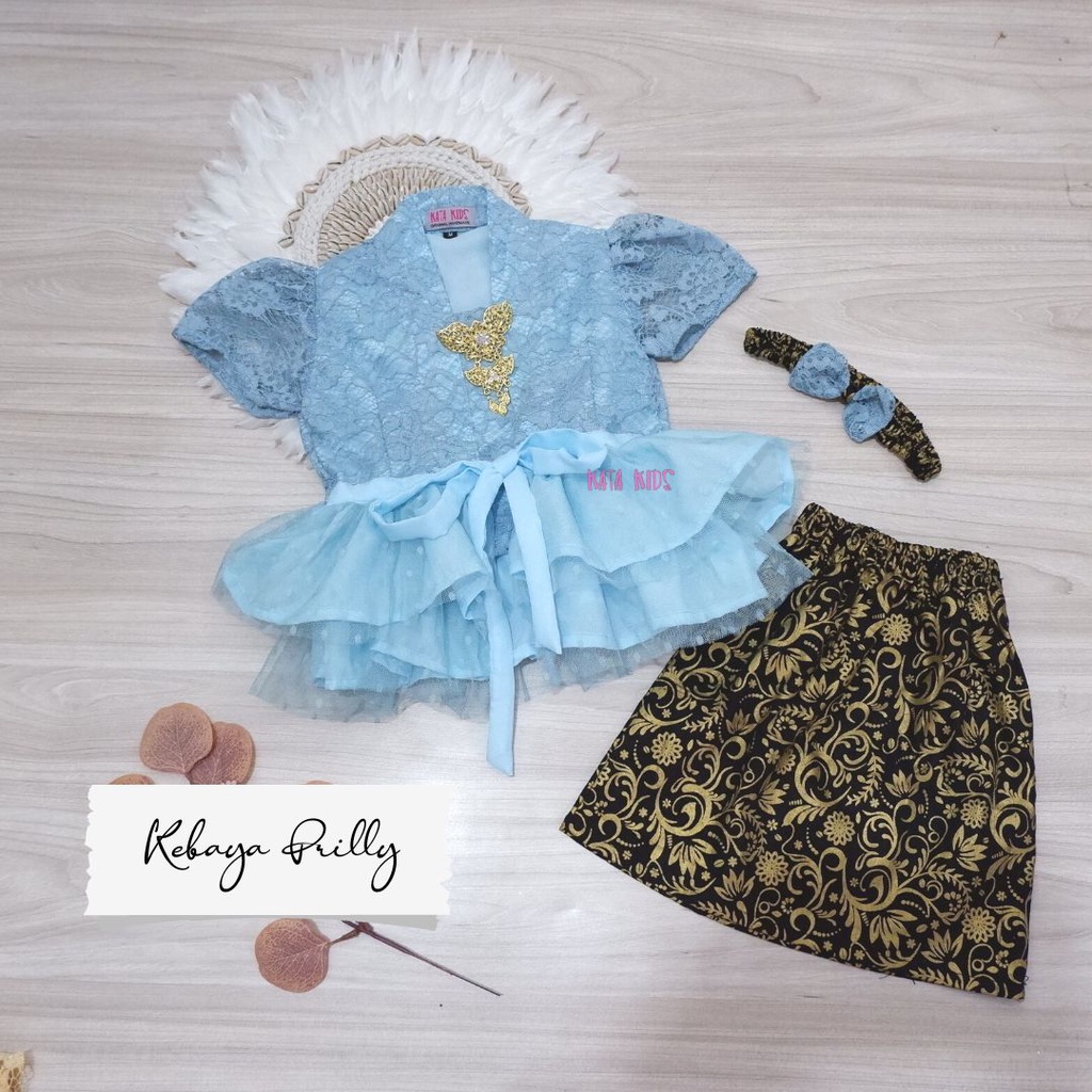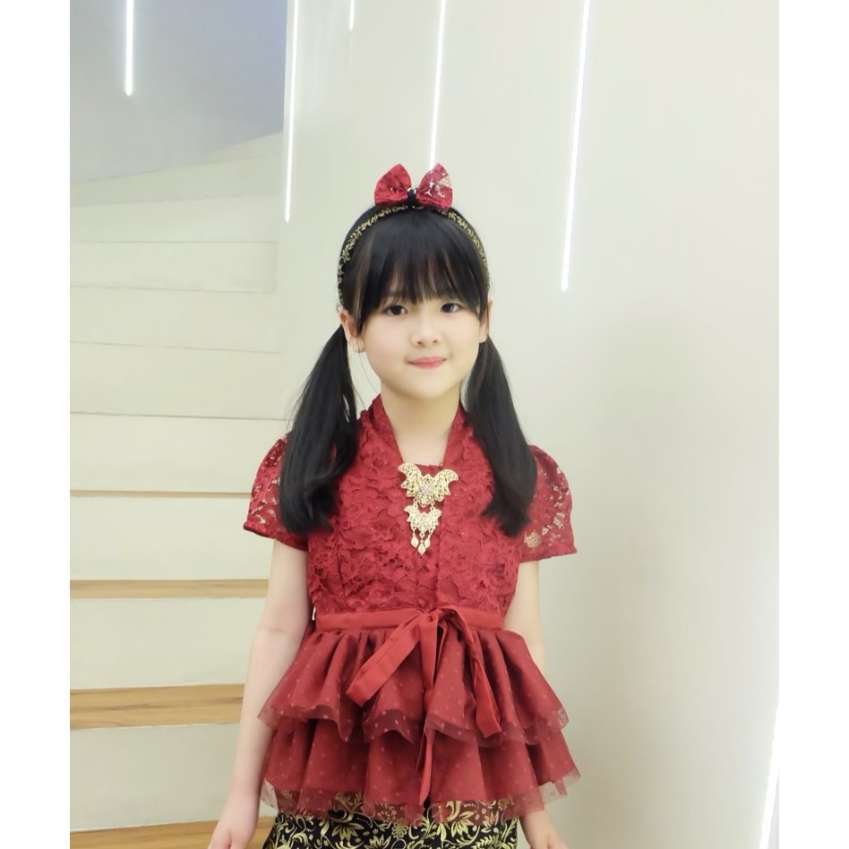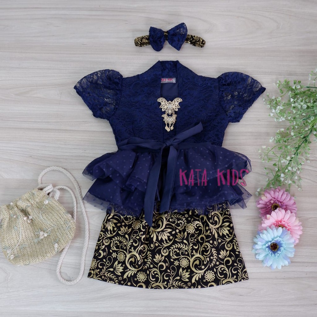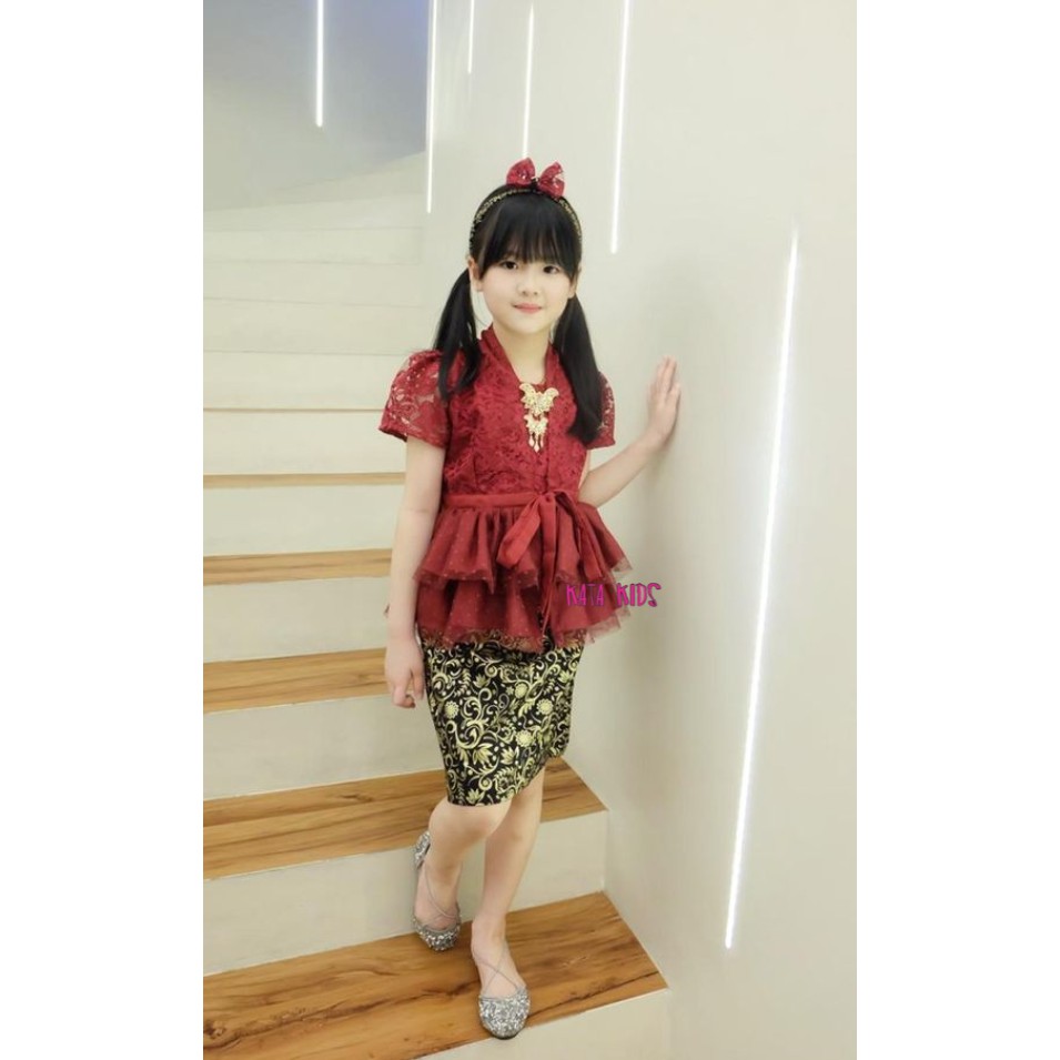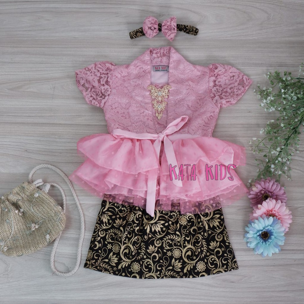 Modern Kebaya for Children Maheswari brocade mix tille doty black skirt Original by Kata Kids