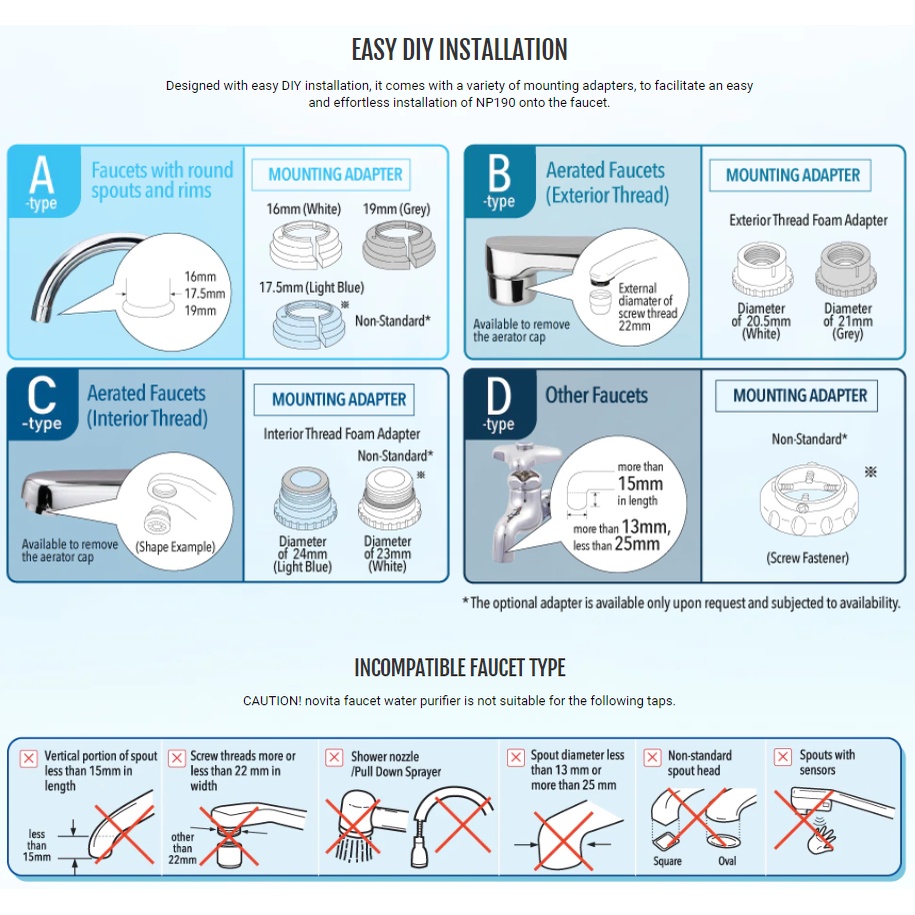Bundle Deal: novita Faucet Water Purifier NP190 & Filter Pack | MADE IN JAPAN