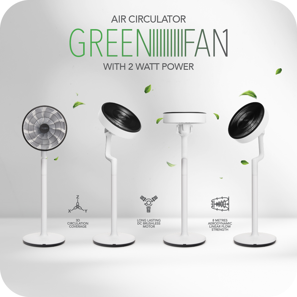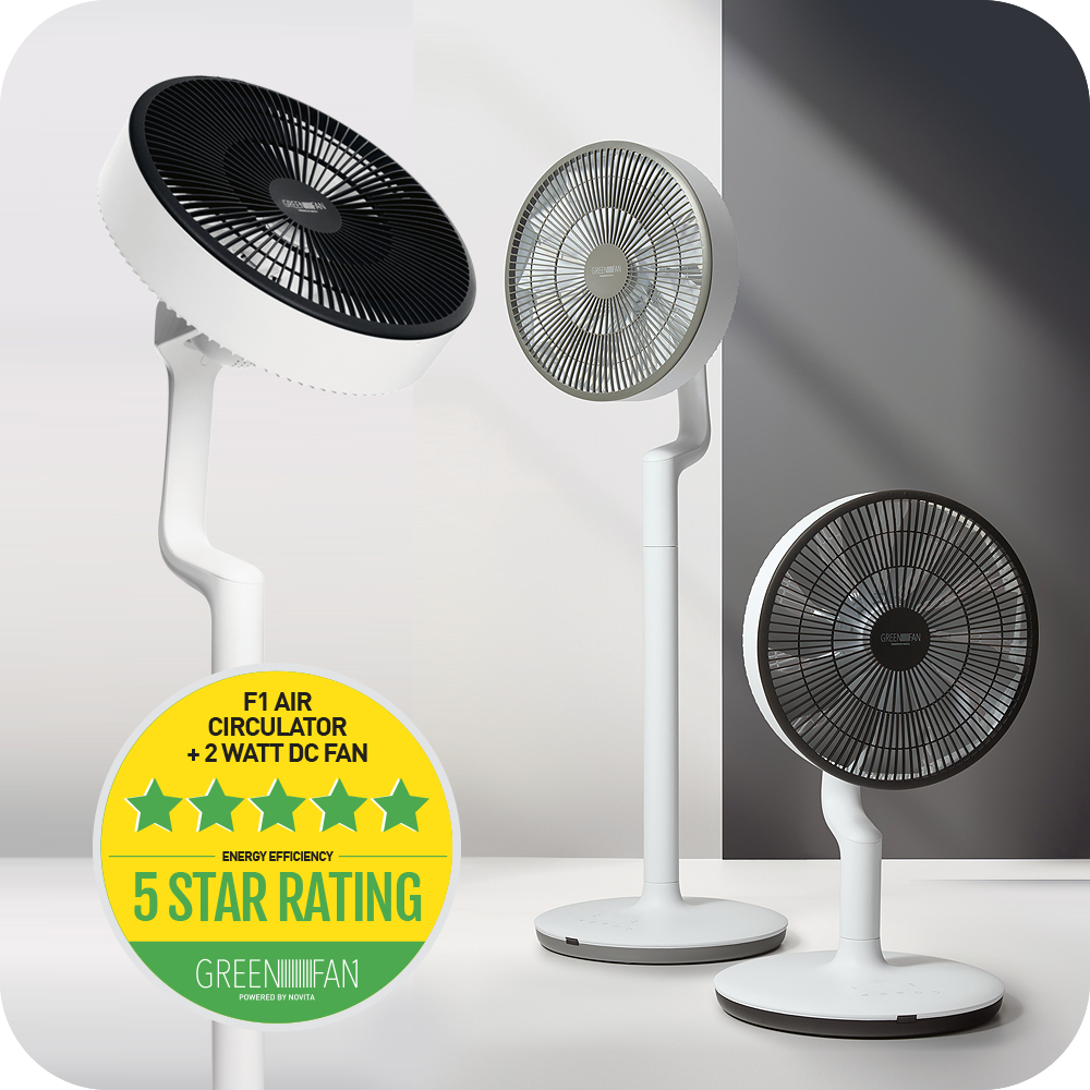 novita 2-in-1 GreenFan® F-1 (15 Speed Setting, 2 Watts Power 3D Circulation, 2-in-1 Desktop/Standing