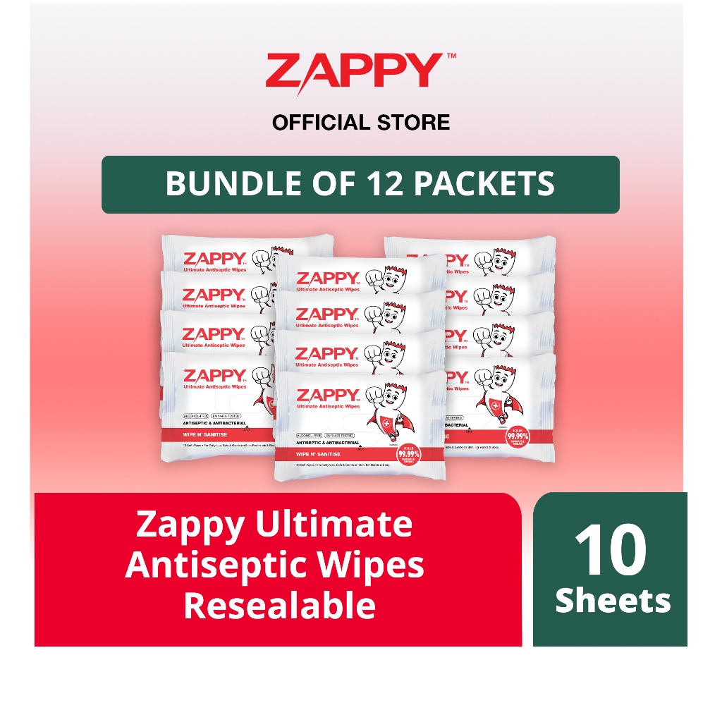 Zappy Ultimate Antiseptic 10 Sheets Resealable