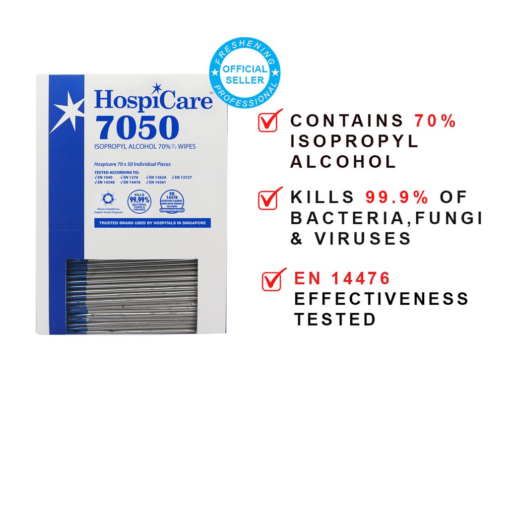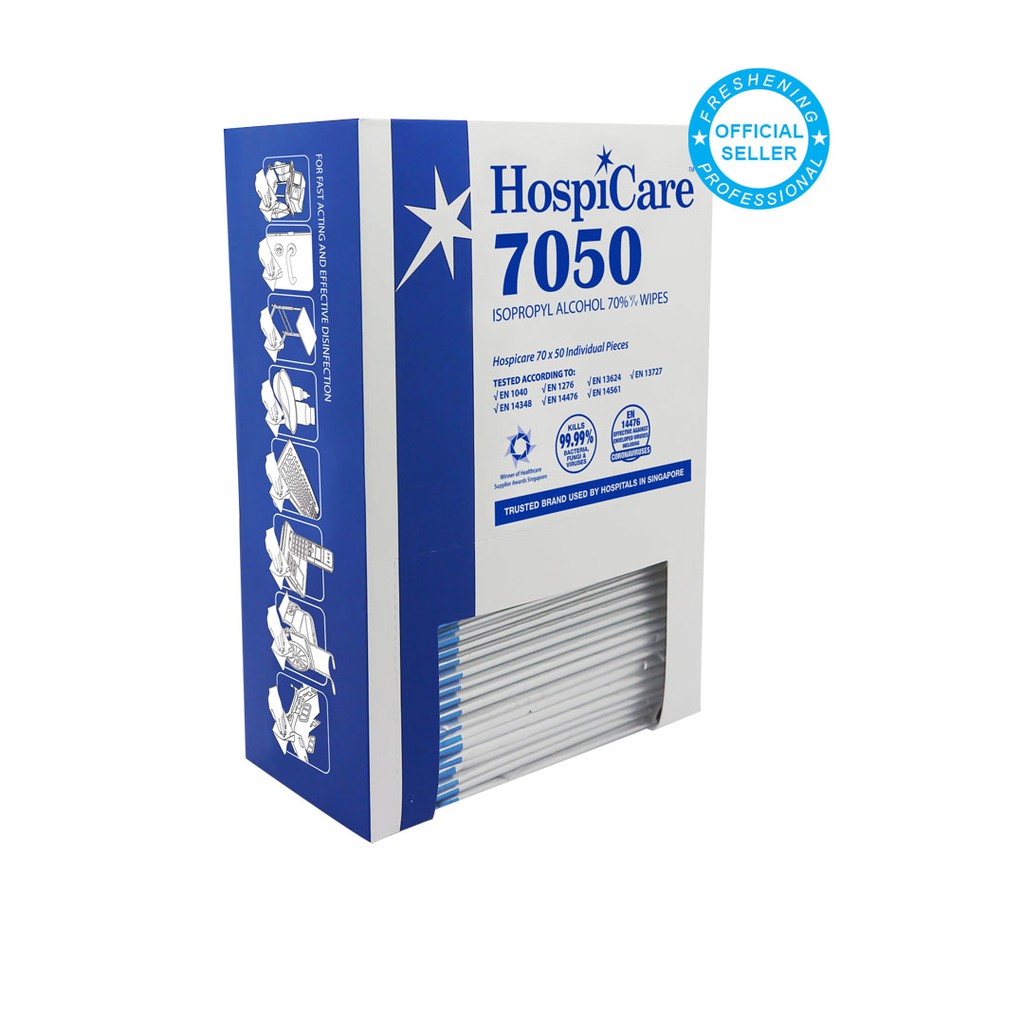 HospiCare 7050 IPA 70% Alcohol Wipes 50 Sheets (Individually Wrapped)