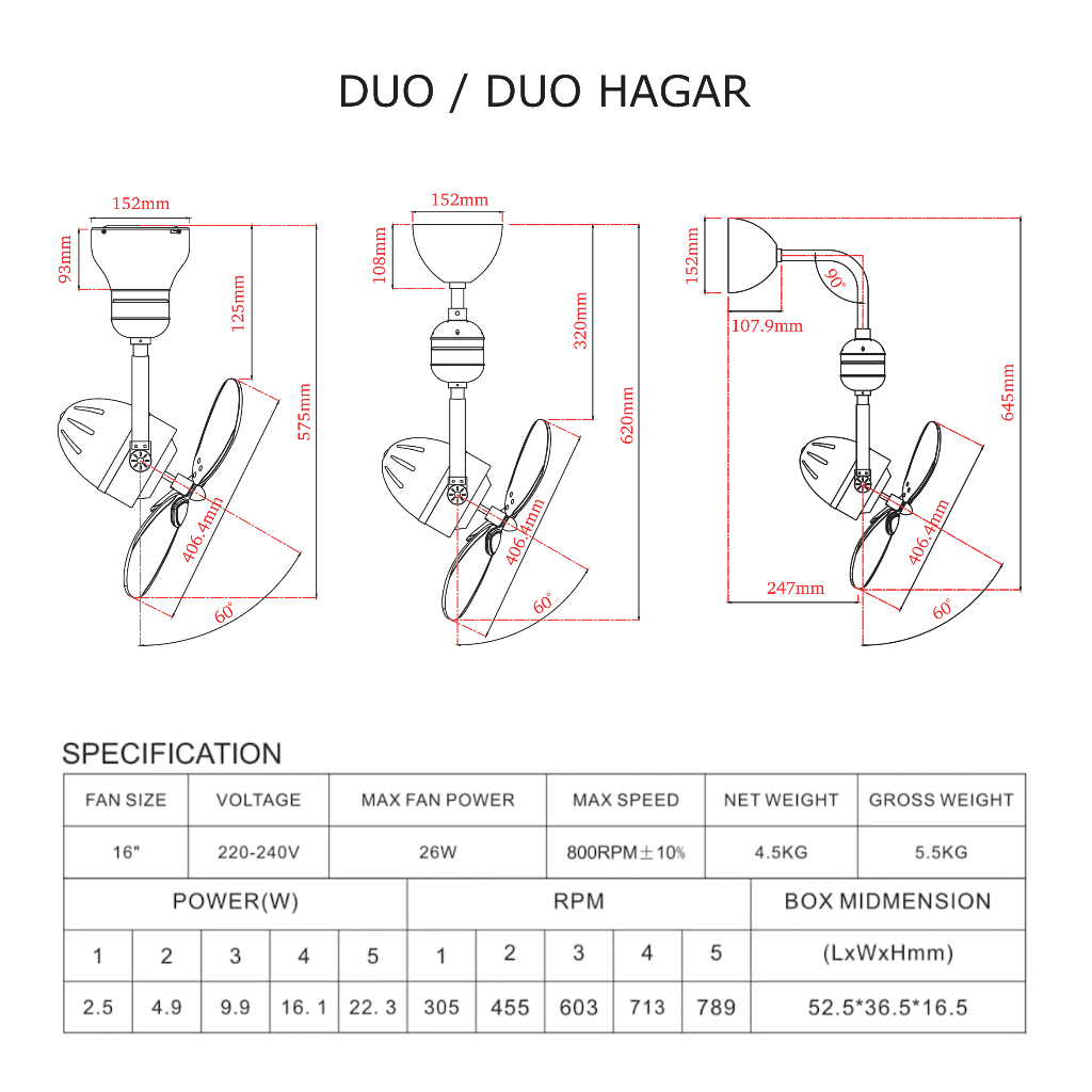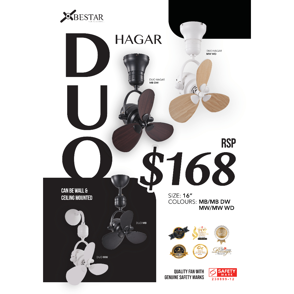 BESTAR Duo Hagar Corner Fan Ceiling Fan Wall Fan 16Inch DC Motor