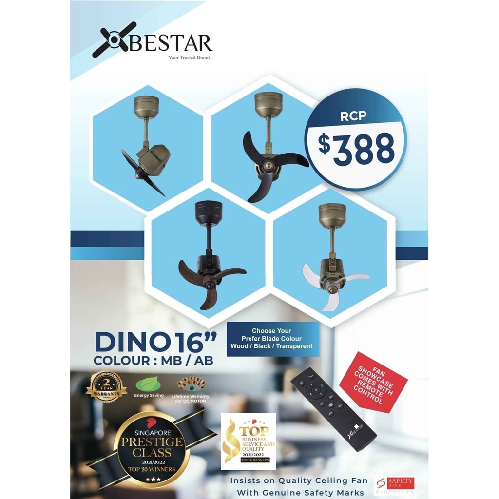 Bestar Dino 16 inches DC Motor Series Fan Remote Control