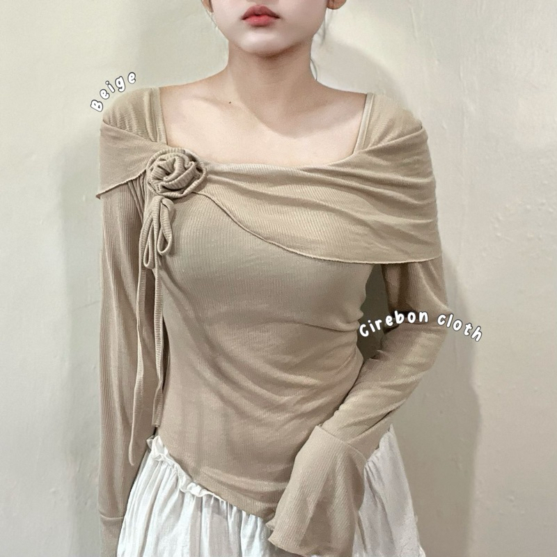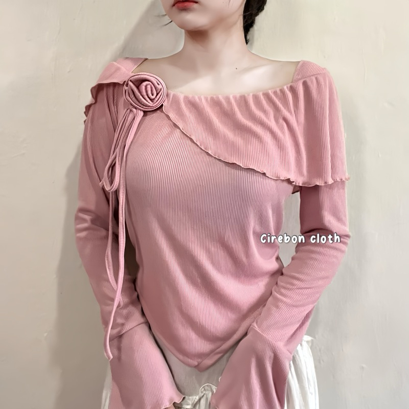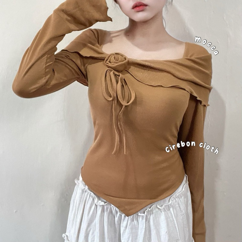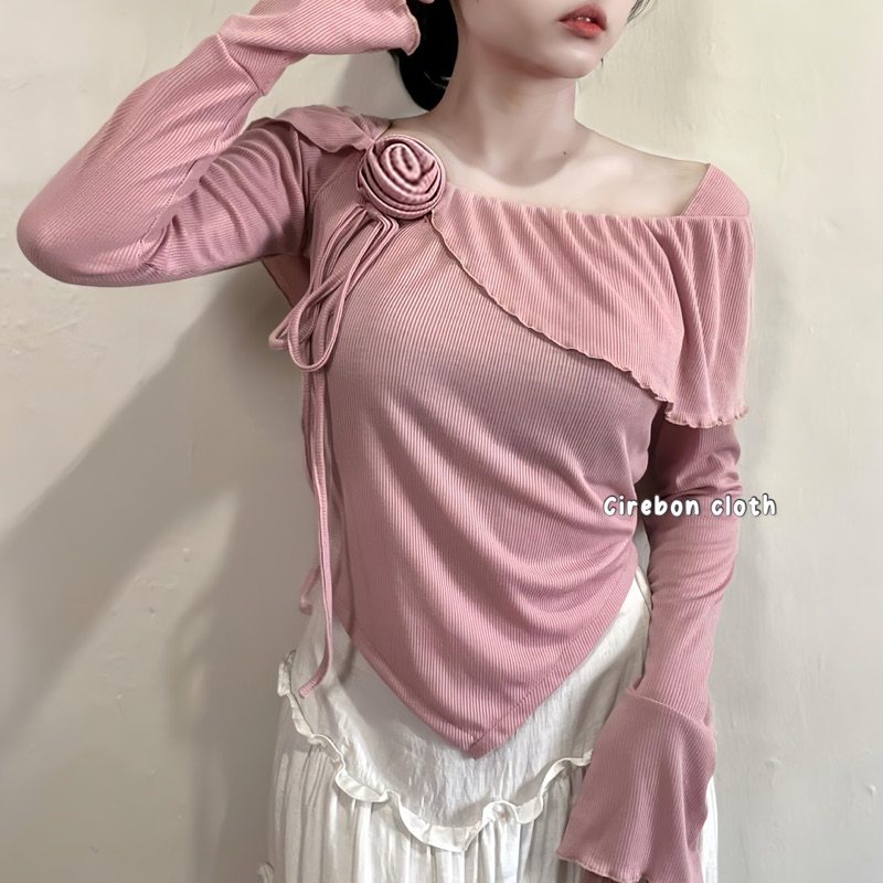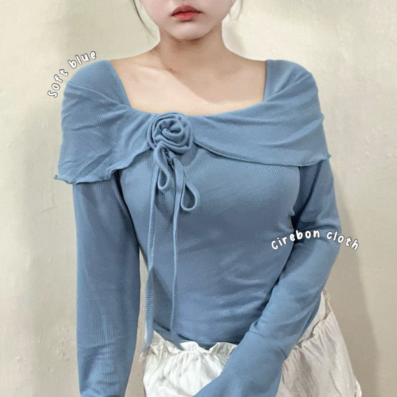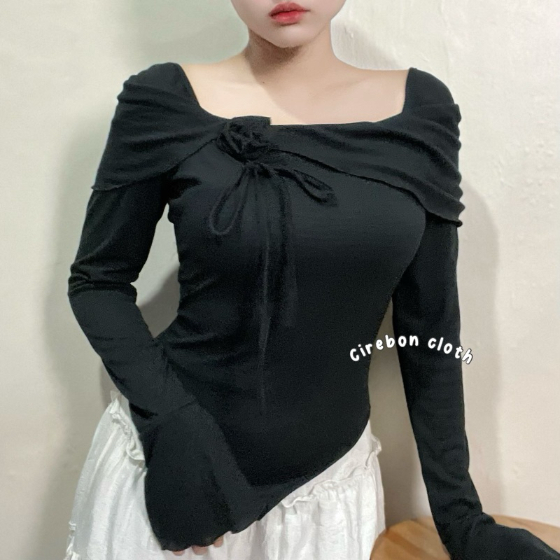 KIYANA Cirebon Cloth - Flower Top Long Sleeve Ribbon Coquette Knit Top Women's Long Sleeve Knit Top/ Blouse Women Long Sleeve Top