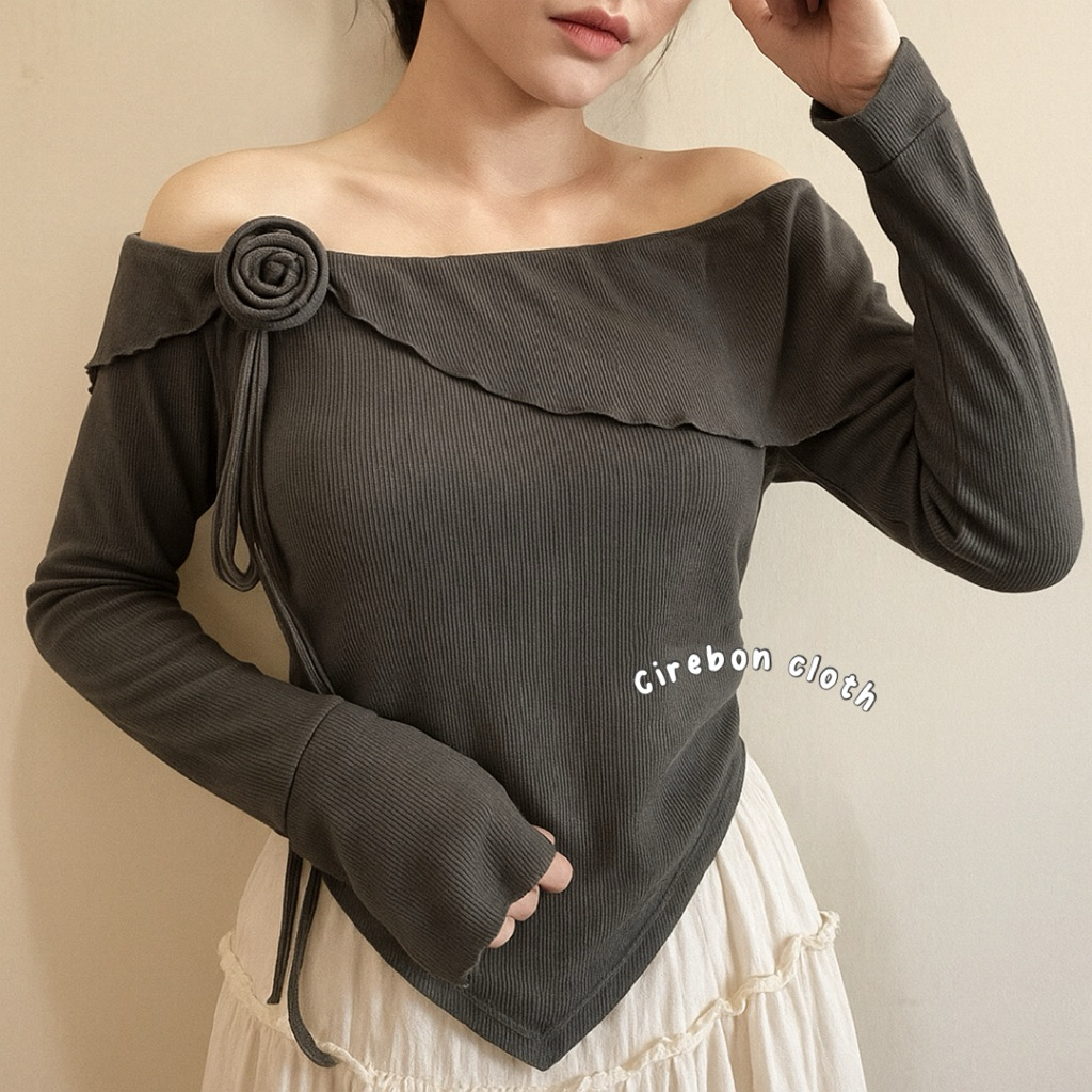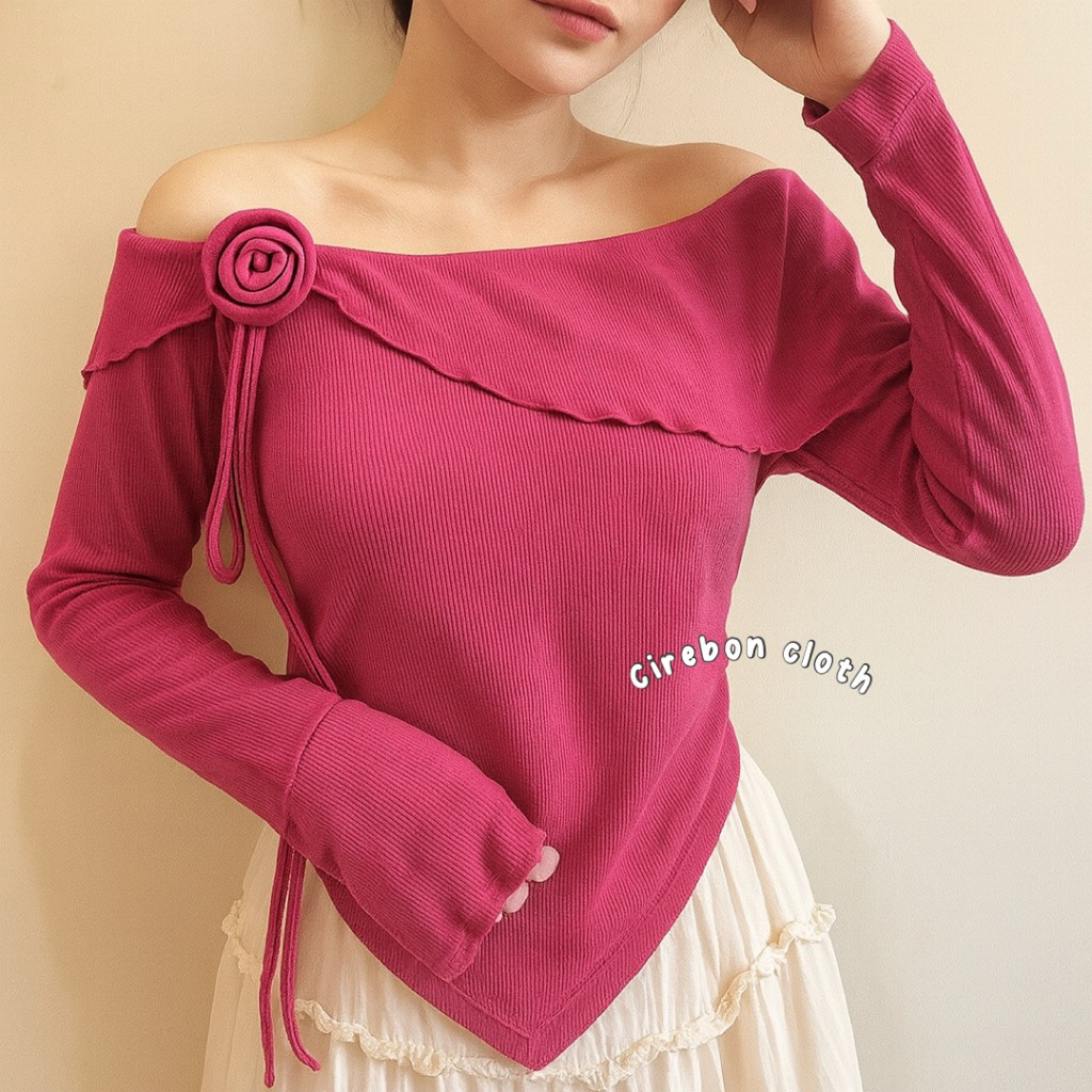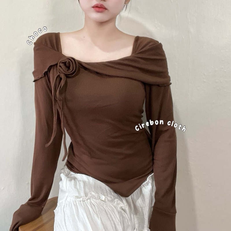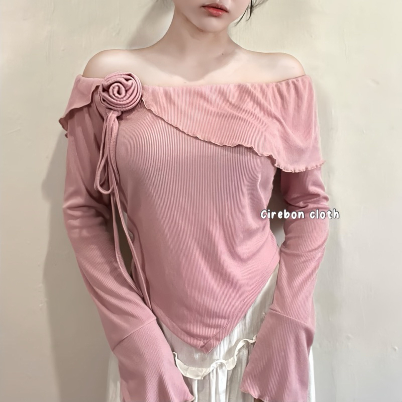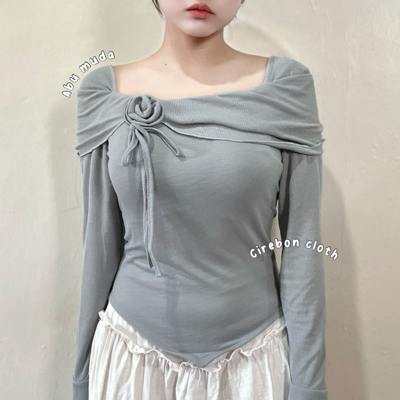 KIYANA Cirebon Cloth - Flower Top Long Sleeve Ribbon Coquette Knit Top Women's Long Sleeve Knit Top/ Blouse Women Long Sleeve Top