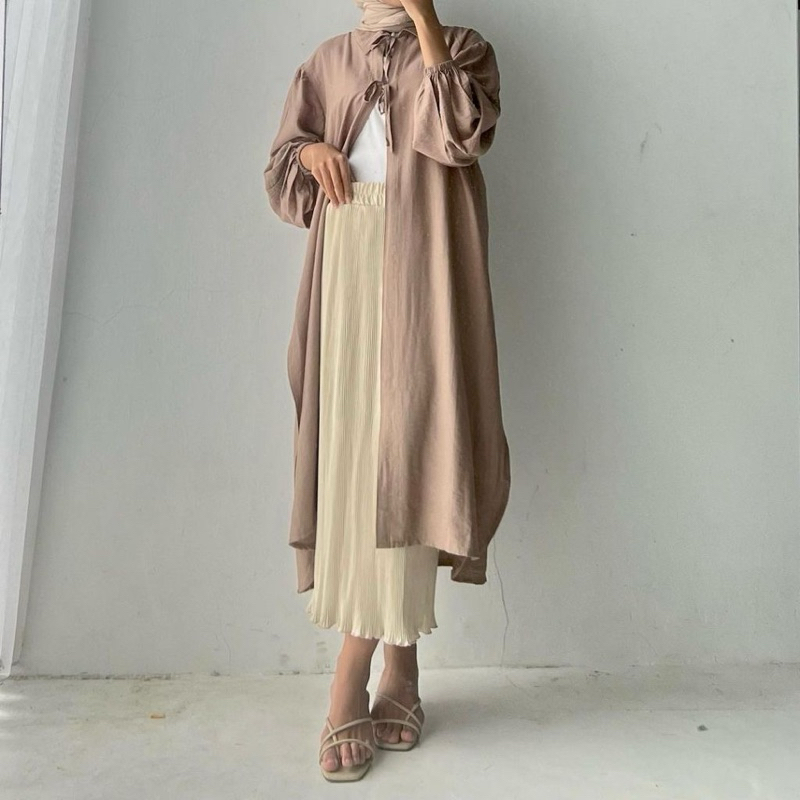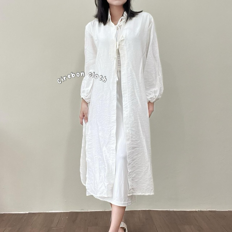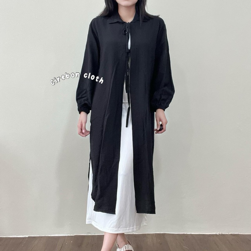 Cirebon Cloth - Ayra Outer Premium LinenPOLO Plain Tunic Outer/ with Side Slit Long Cardigan Muslimah Outerwear Muslimah