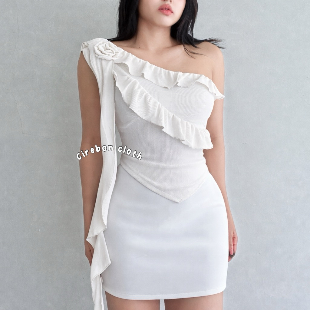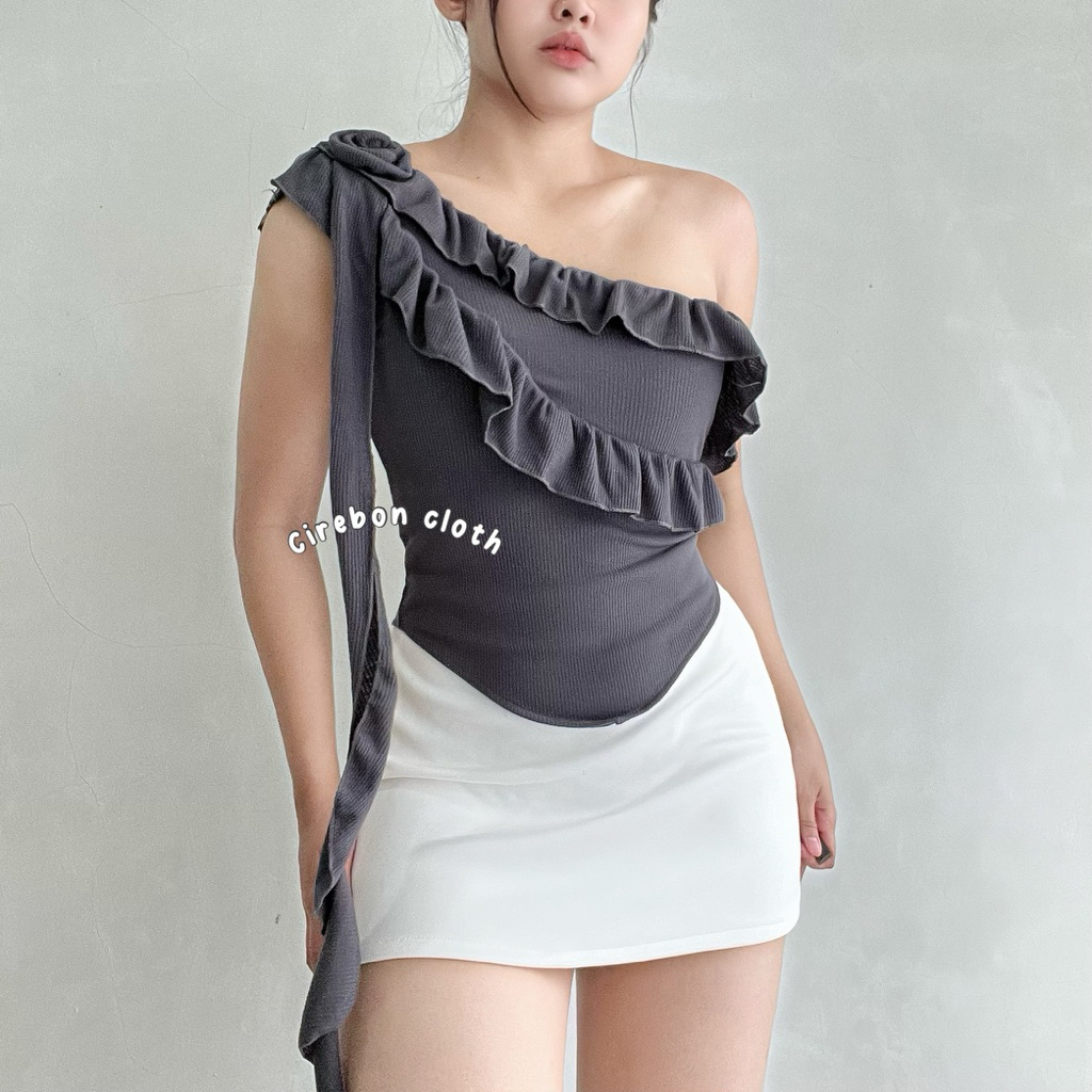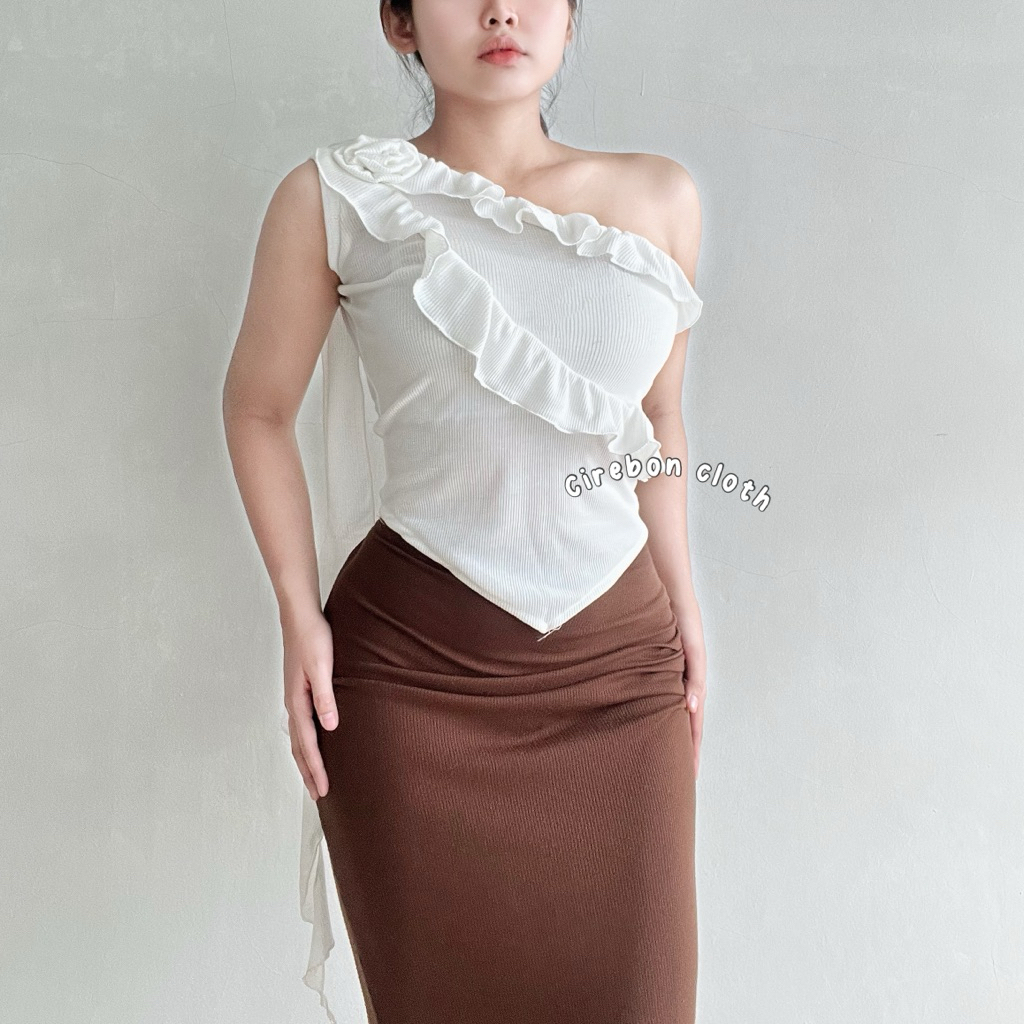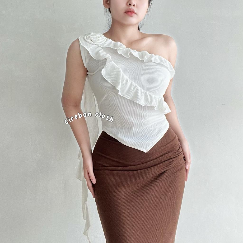 KIYANA Cirebon Cloth - Heejin Jellyfish Top Asymmetrical Ruffle Top Asymmetrical Top with Flowers Cute Korean Top