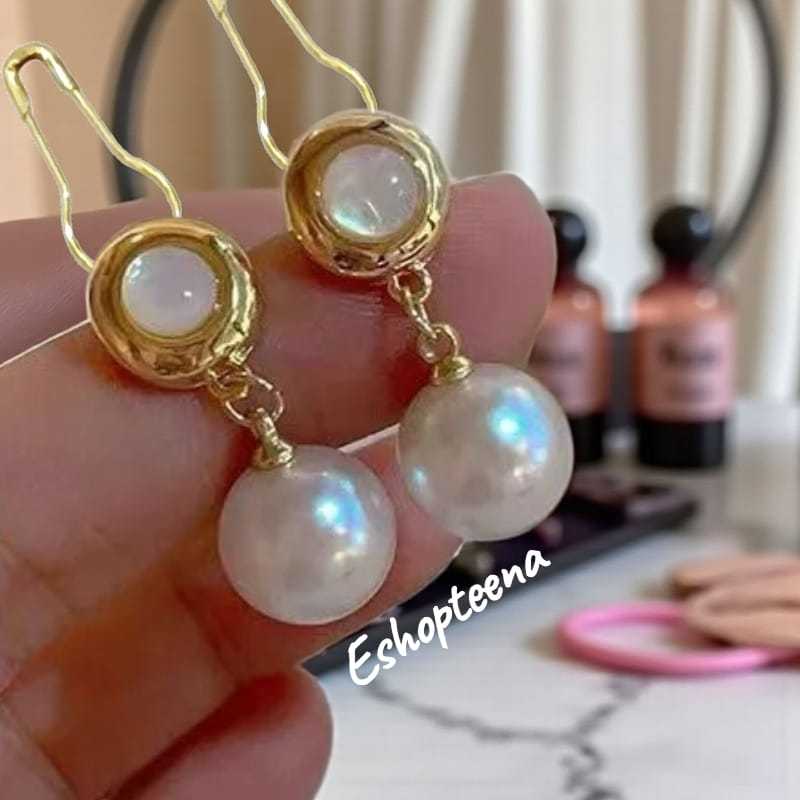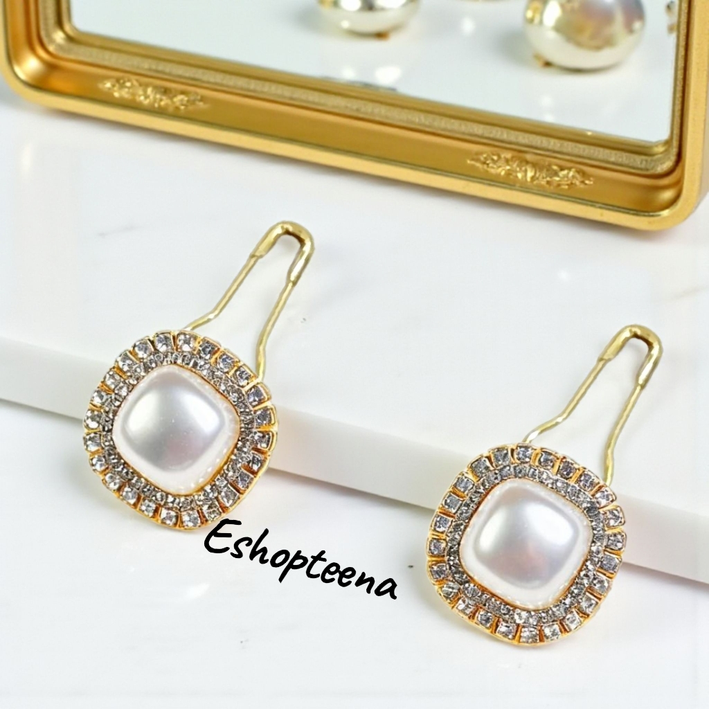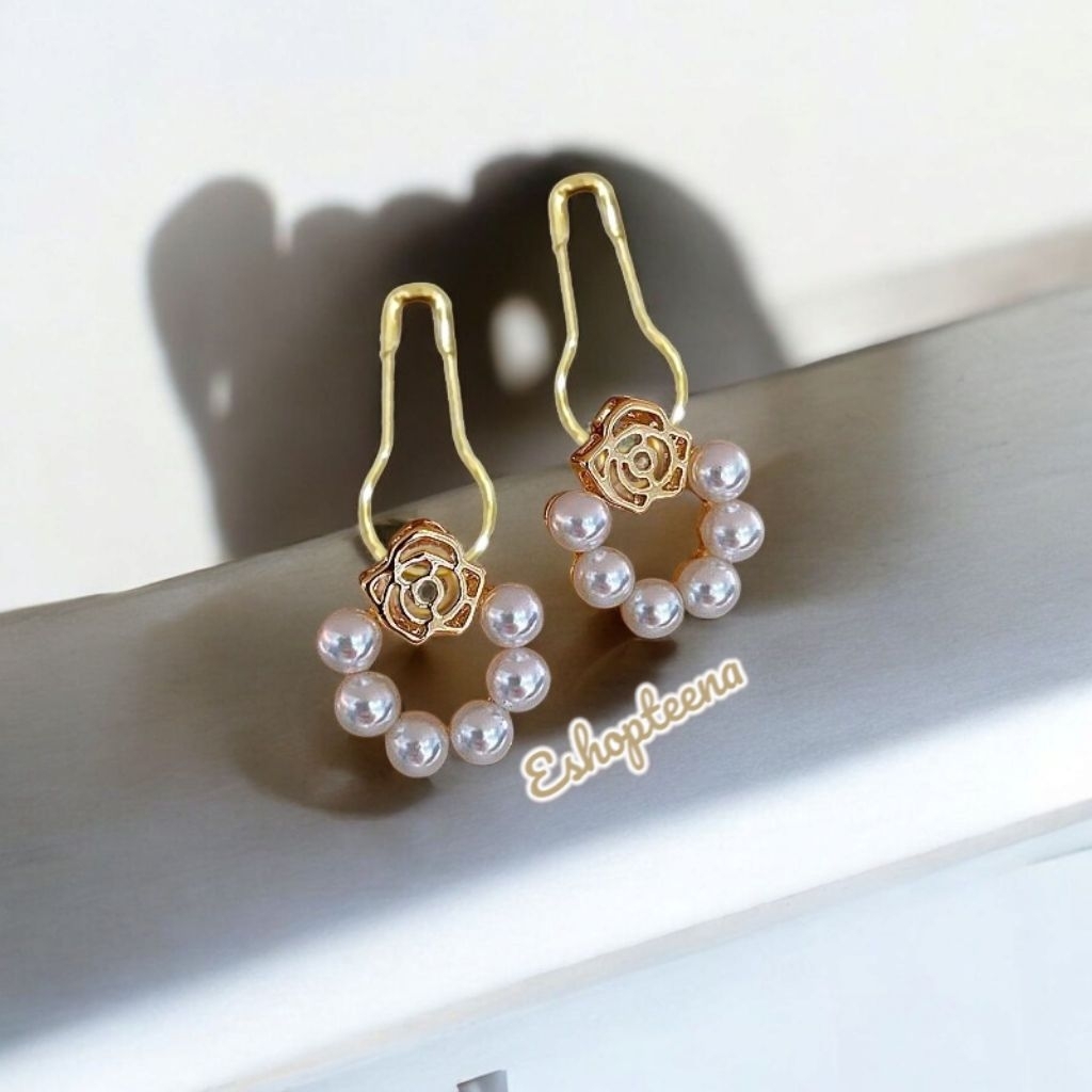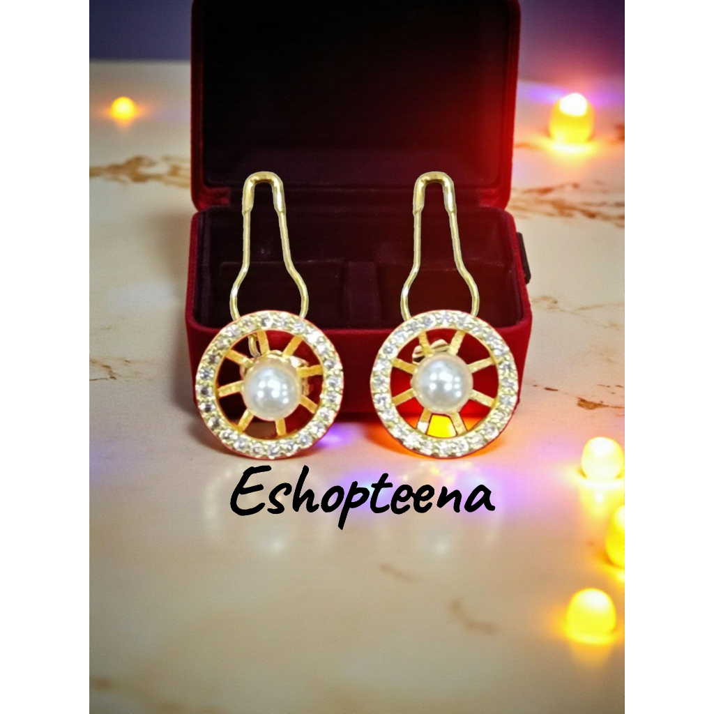 MATA A119 3 Round hijab earrings PIN & CLIP part 3 pearl eyes_hijab earrings_hijab earrings CLIP_hijab pin earrings_women's earrings pearl earring hijab earring clip