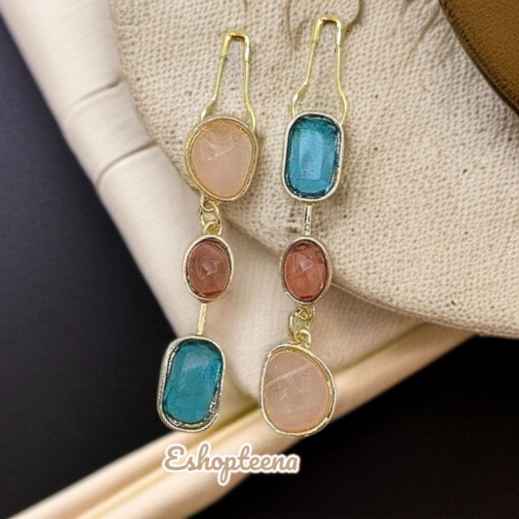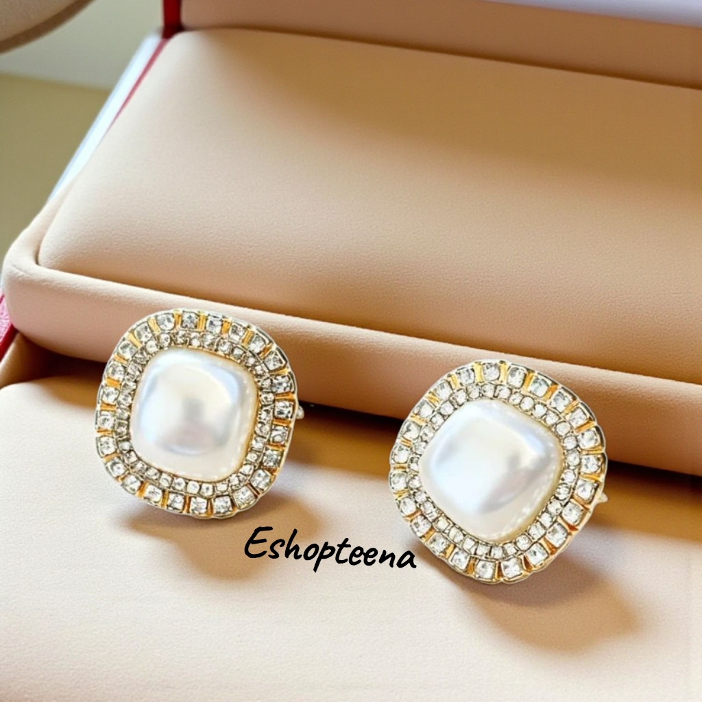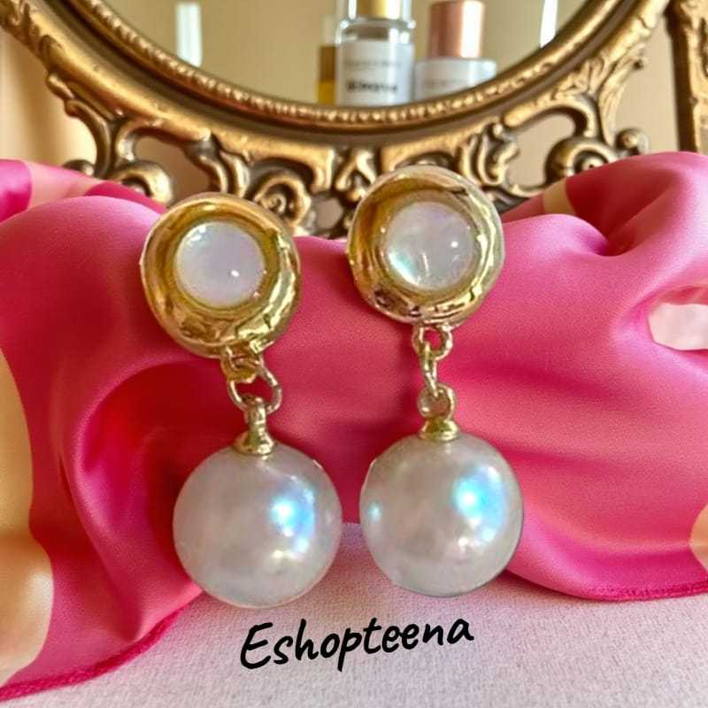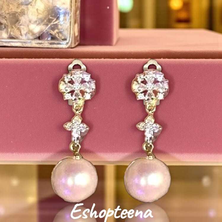 MATA A119 3 Round hijab earrings PIN & CLIP part 3 pearl eyes_hijab earrings_hijab earrings CLIP_hijab pin earrings_women's earrings pearl earring hijab earring clip