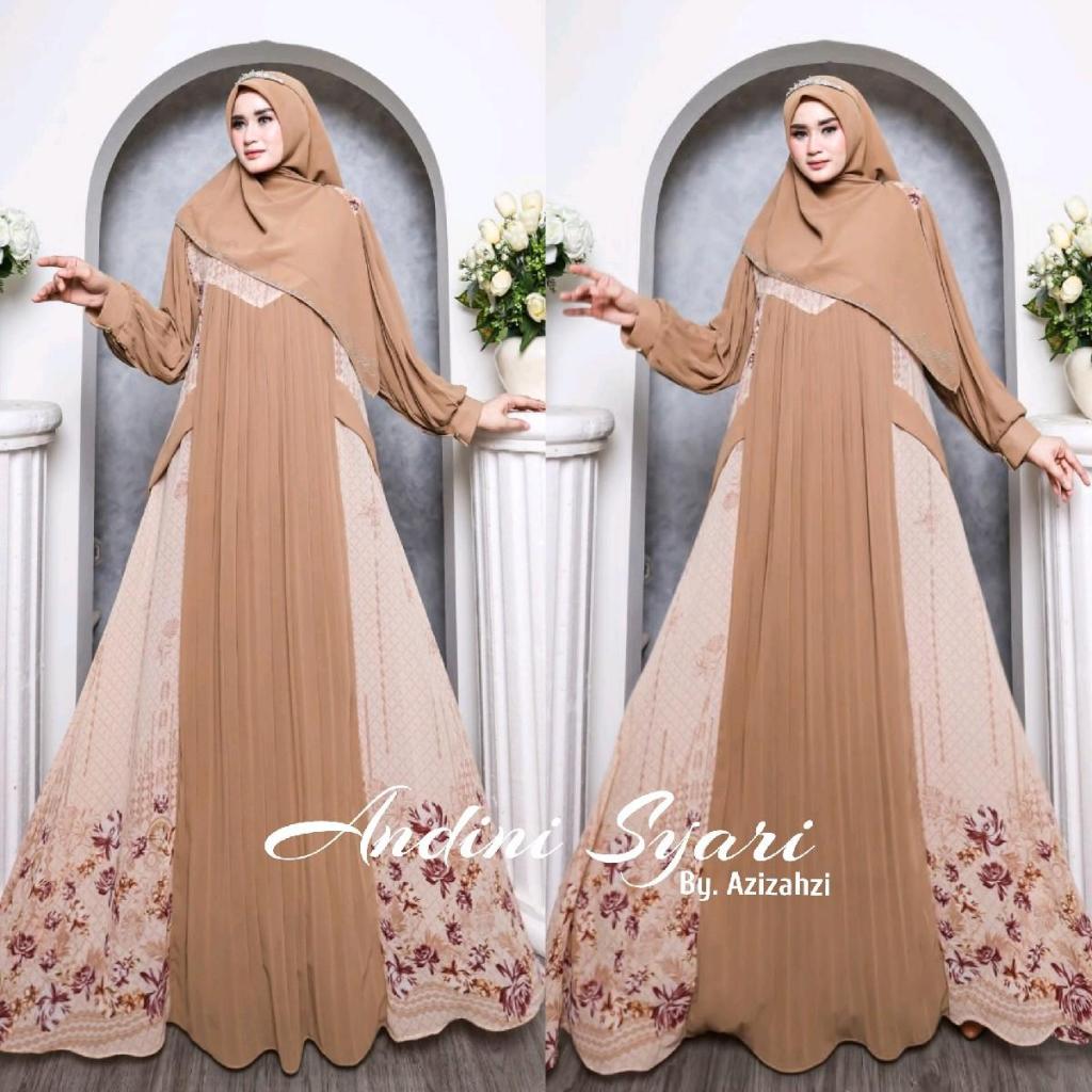 ANDINI (By. Azizahzi) GAMIS SET SYARI PREMIUM BUSUI LUXURY CERUTY PLISKET MOTIF PARTY STUDY