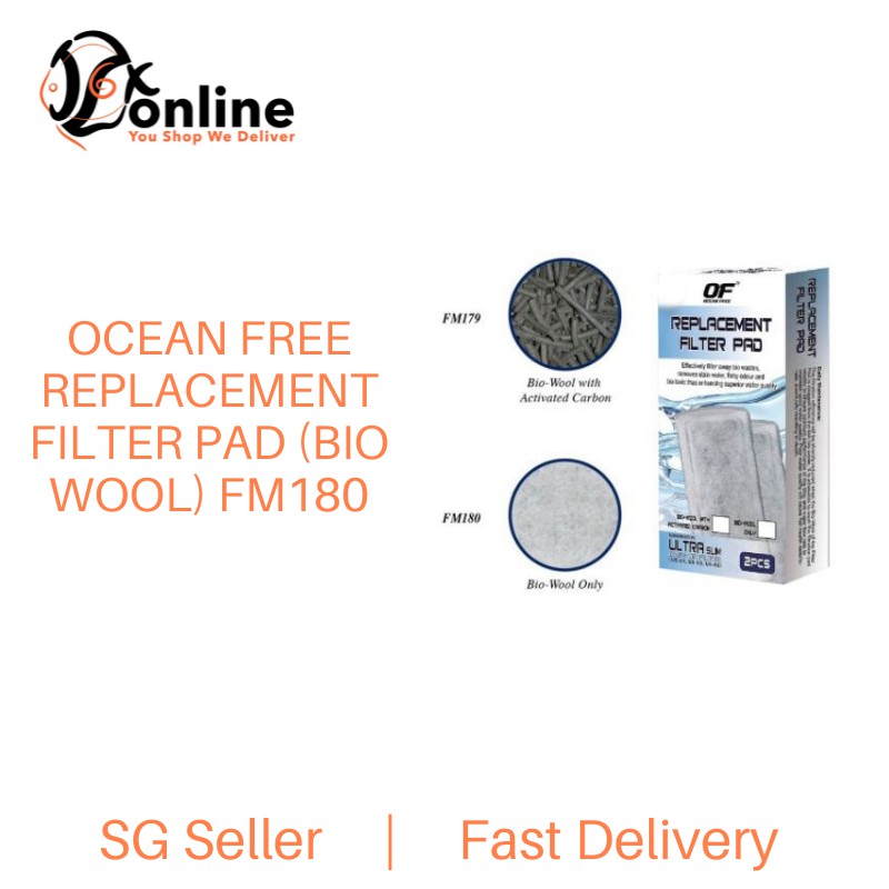 BUNDLE Deal : (2 Packs) OCEANFREE Bio Wool Replacement Filter Pad For Ultra Slim Hang On Filter (FM180)