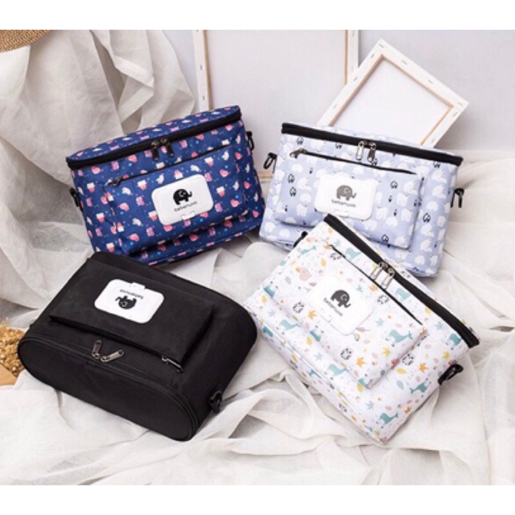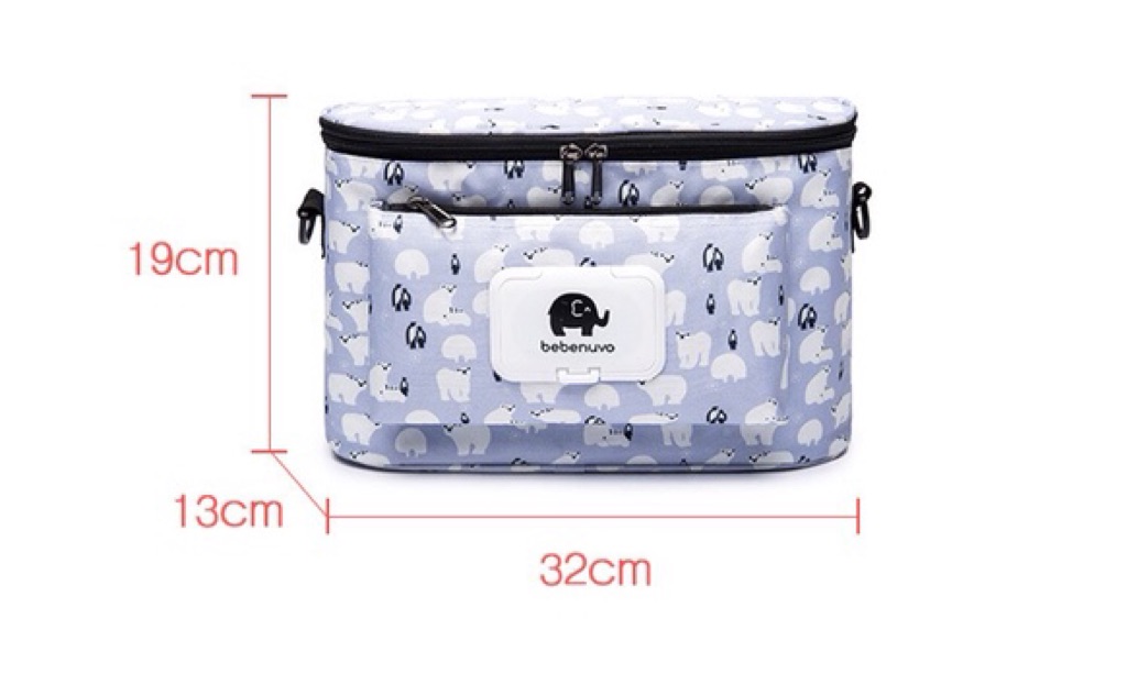 🇸🇬 Bebenuvo Stroller Organiser Multi Storage Thermal Bottle Wet Wipes Sling Pram Bag