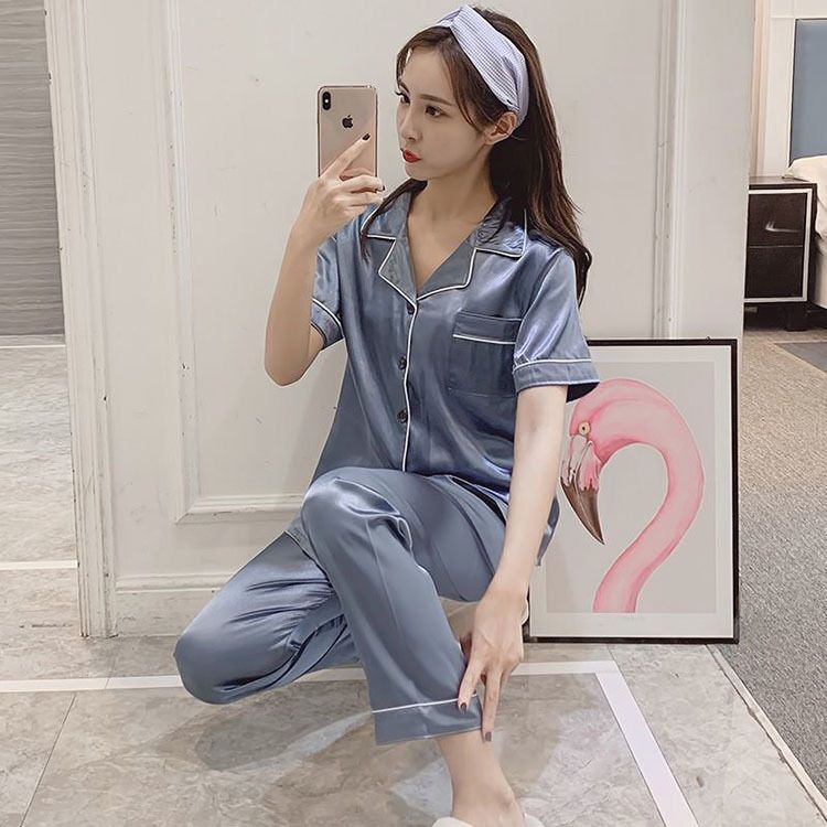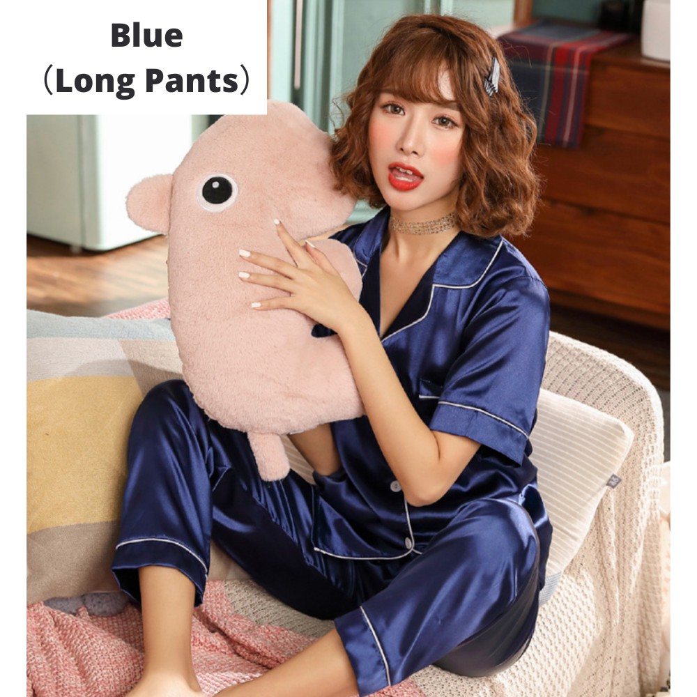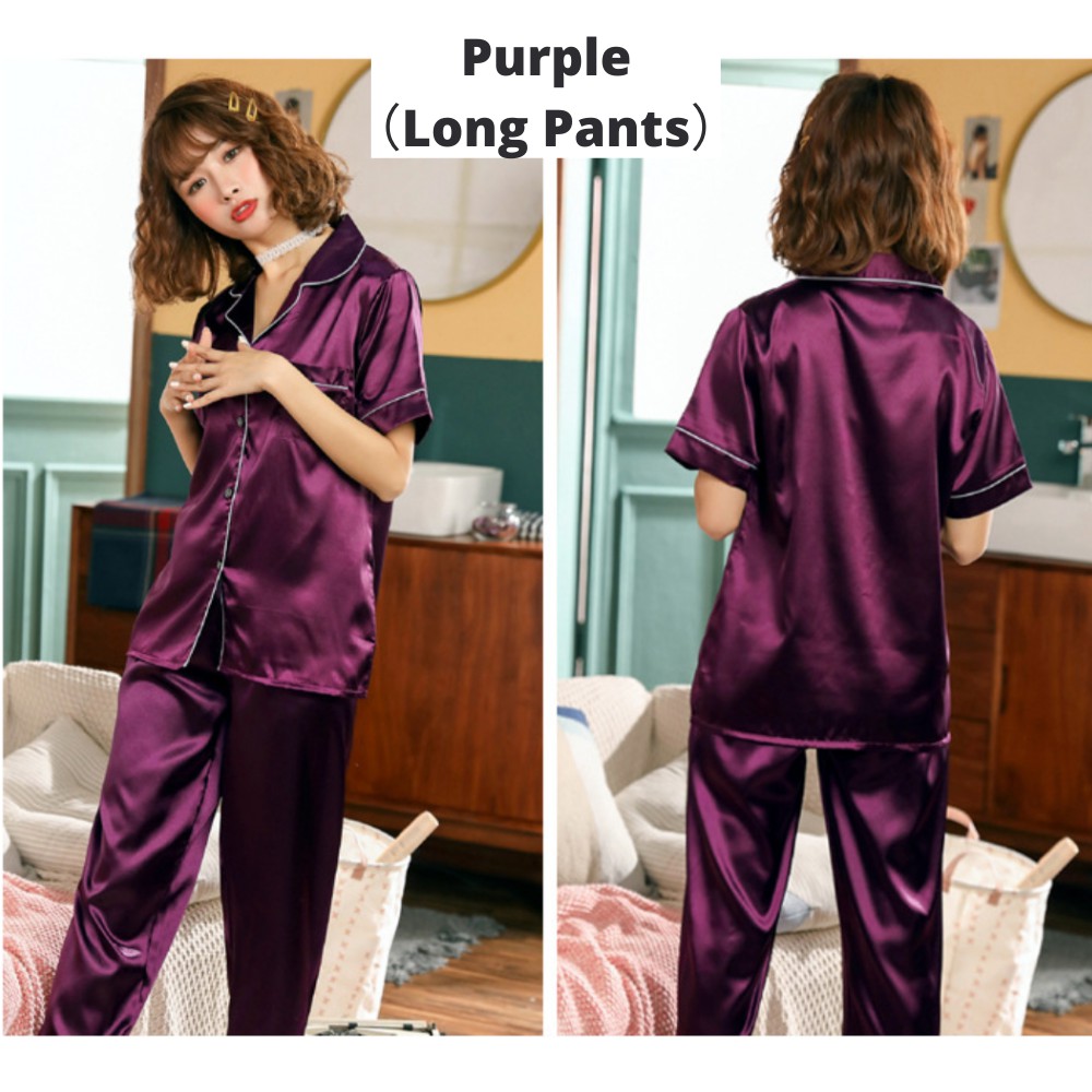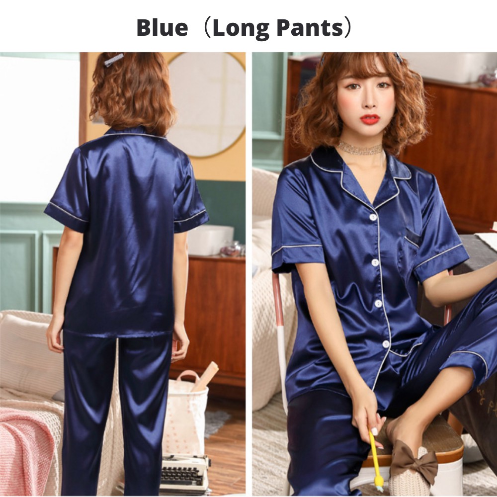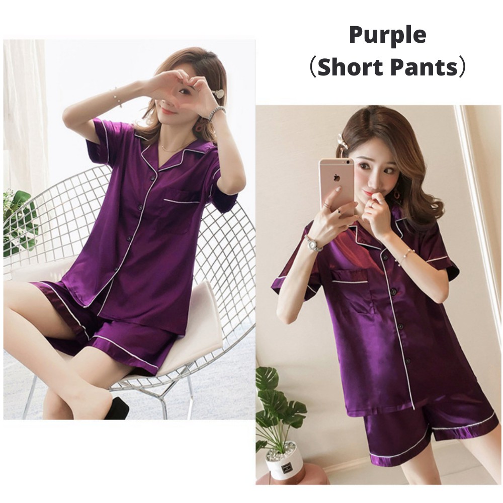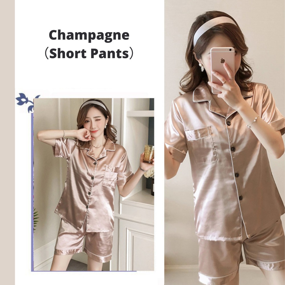 【SG】Silk Pajama Women Short Sleeve Top and Shorts Pj Set 2 Piece Soft Sleepwear Loungewear Pyjamas