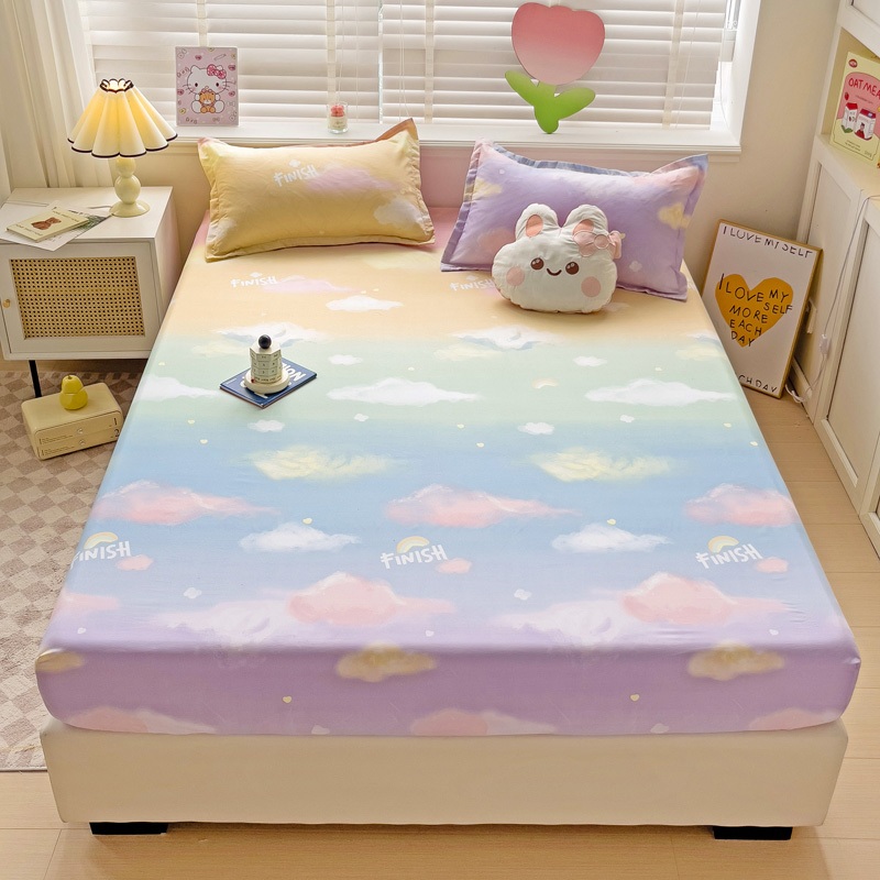 【Ready Stock】Fitted Bed sheet Single/Super Single /Queen/King Size Premium Cotton Mattress Dust Cover 45 Popular Styles