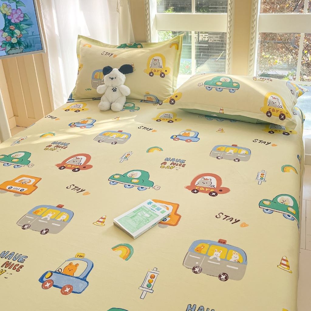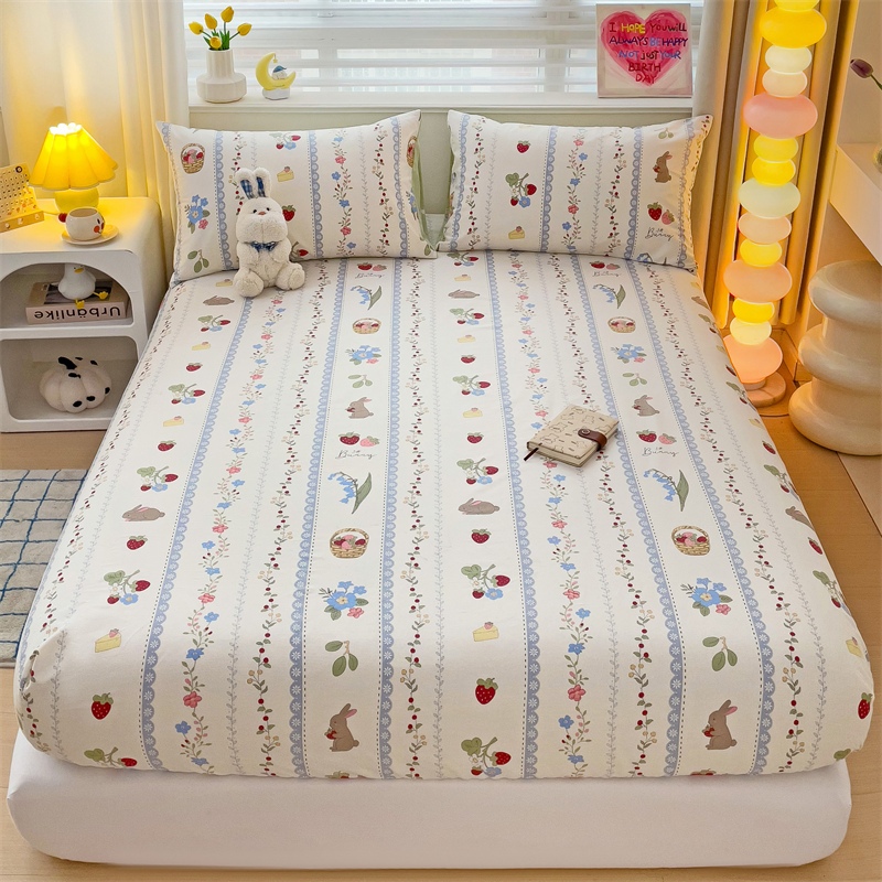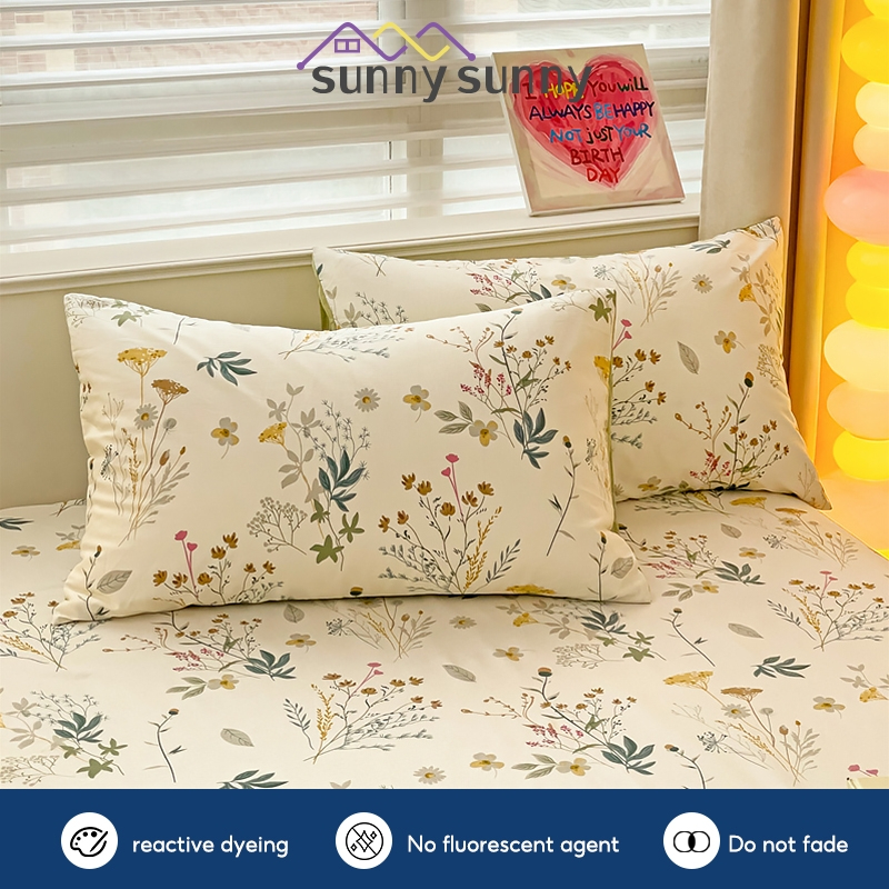 SunnySunny 100% Cotton 3 In 1 Fitted Bedsheet Set Super Comfortable Bed Sheet Super Single / Queen / King Size