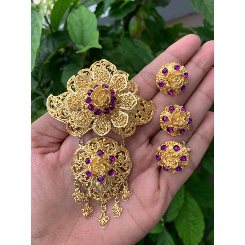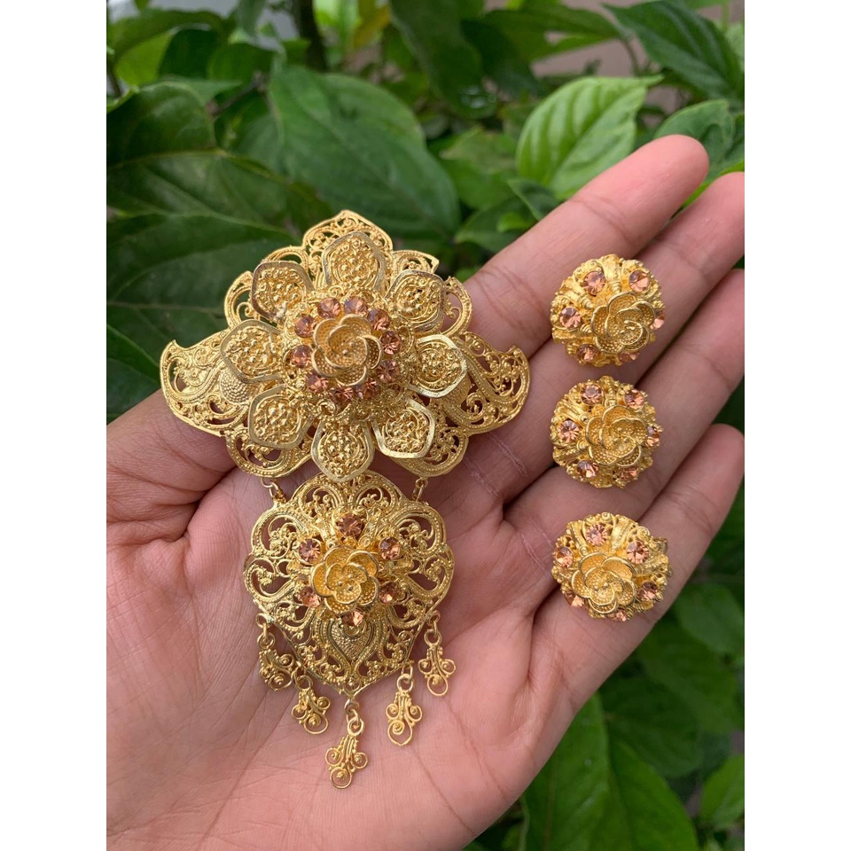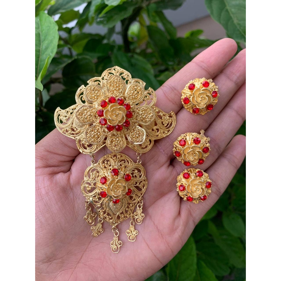 MAWAR Balinese alpaca brooch kebaya set with luna motif, rose filling brooch kerongsang kebaya