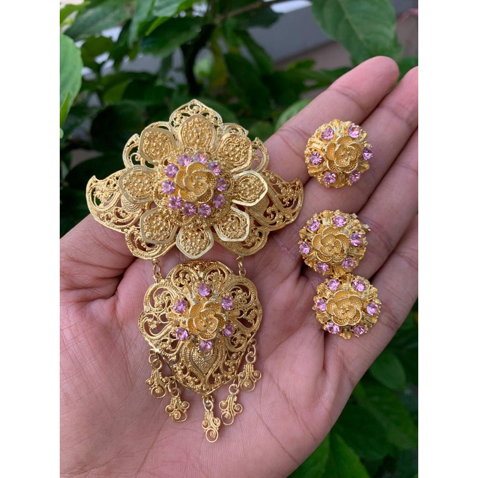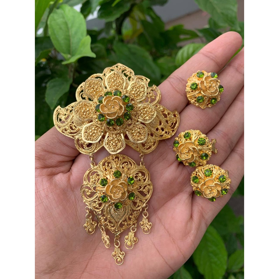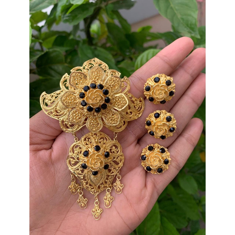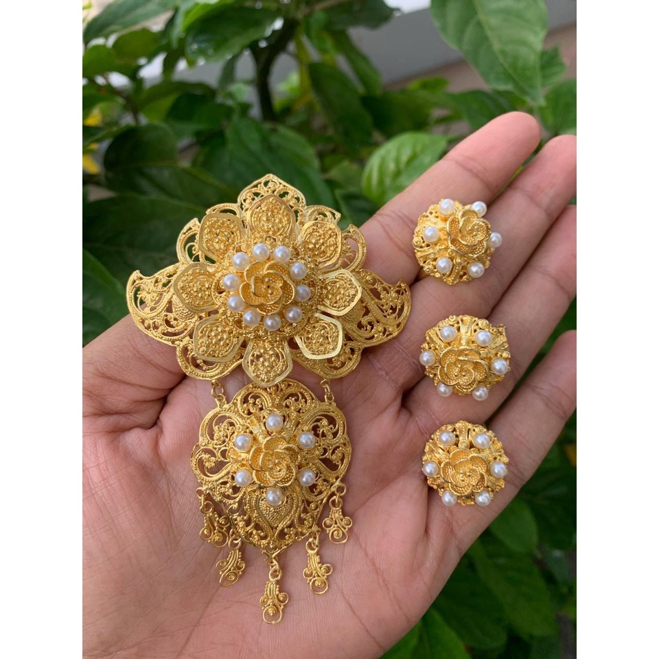 MAWAR Balinese alpaca brooch kebaya set with luna motif, rose filling brooch kerongsang kebaya