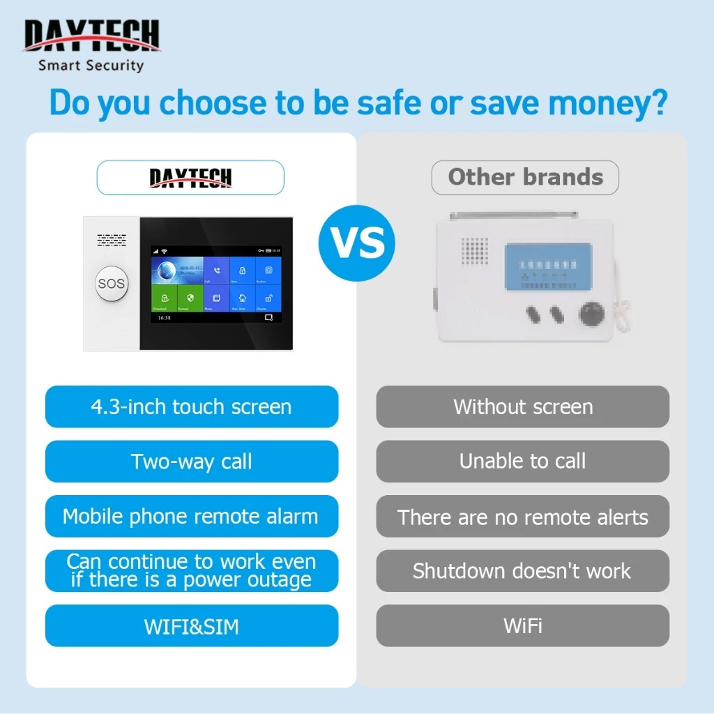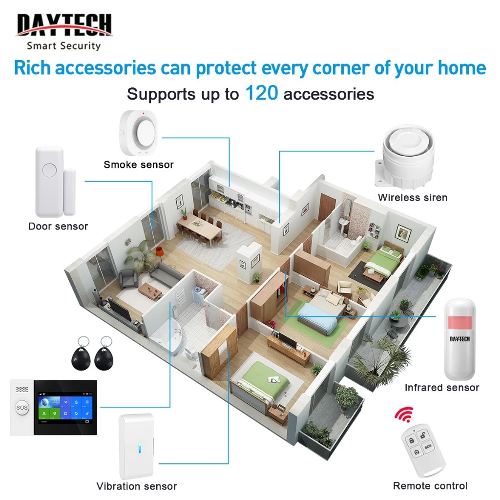 Daytech Wireless Alarm System For Home Anti theft Burglar Security Wifi Tuya Touch Screen TA04