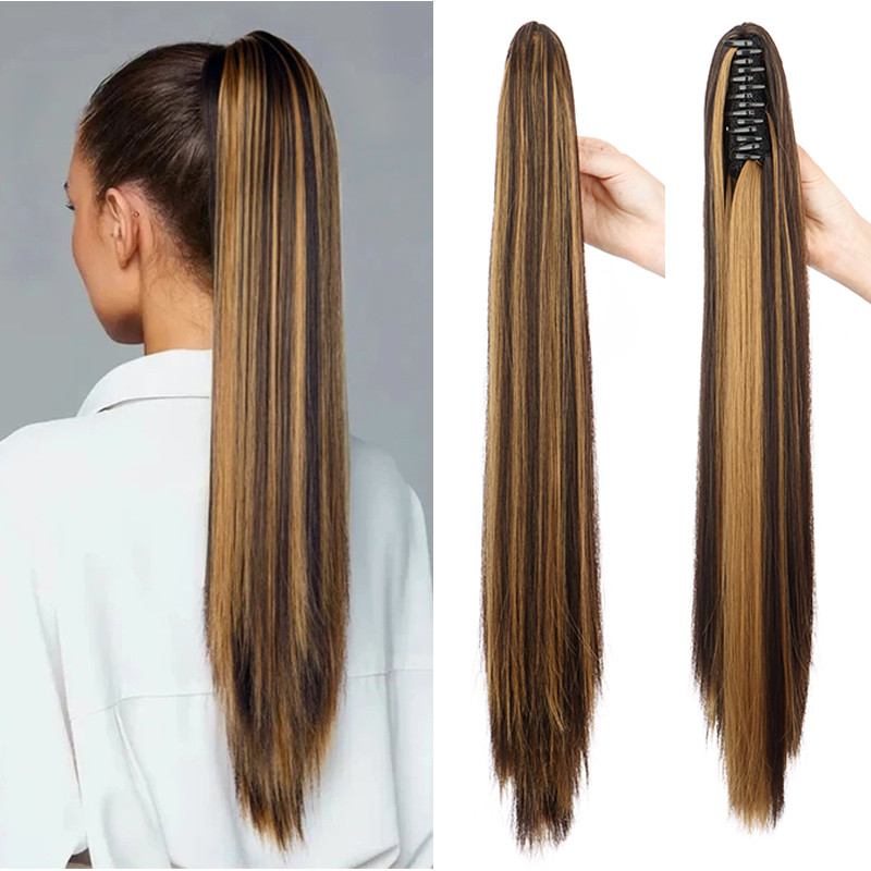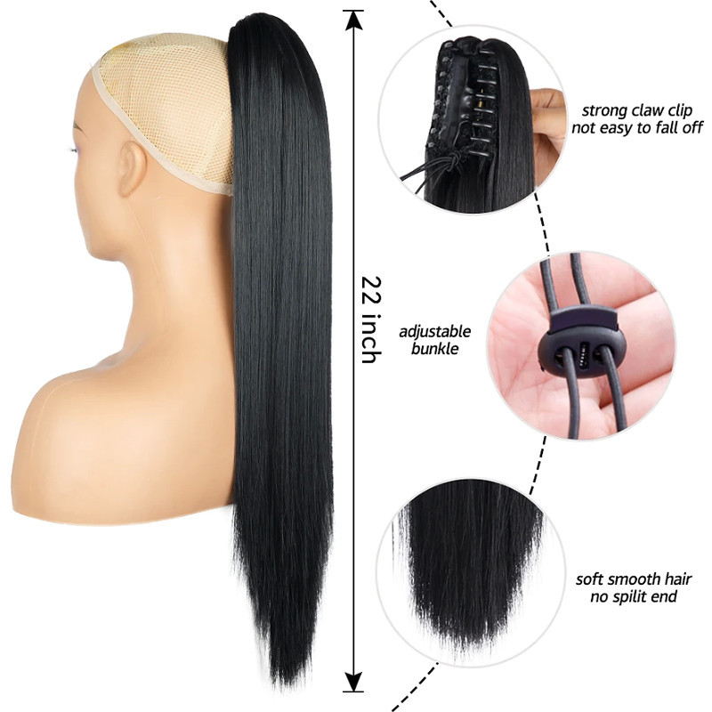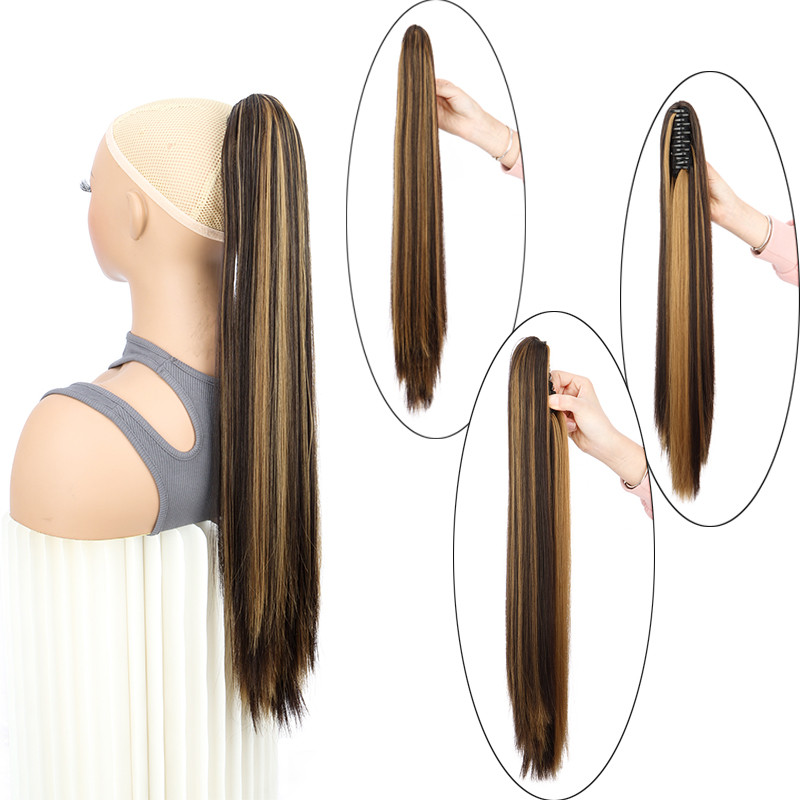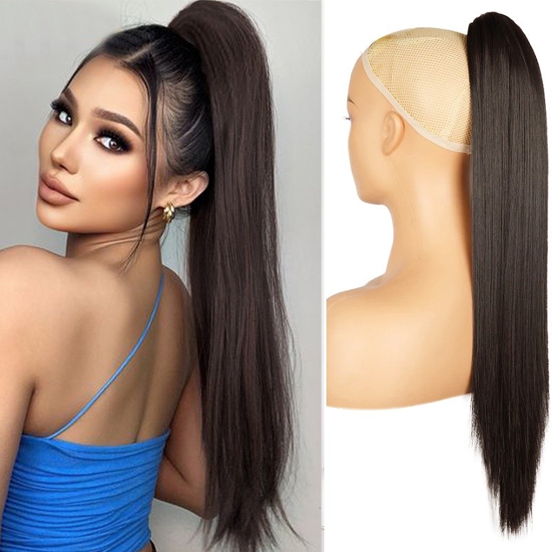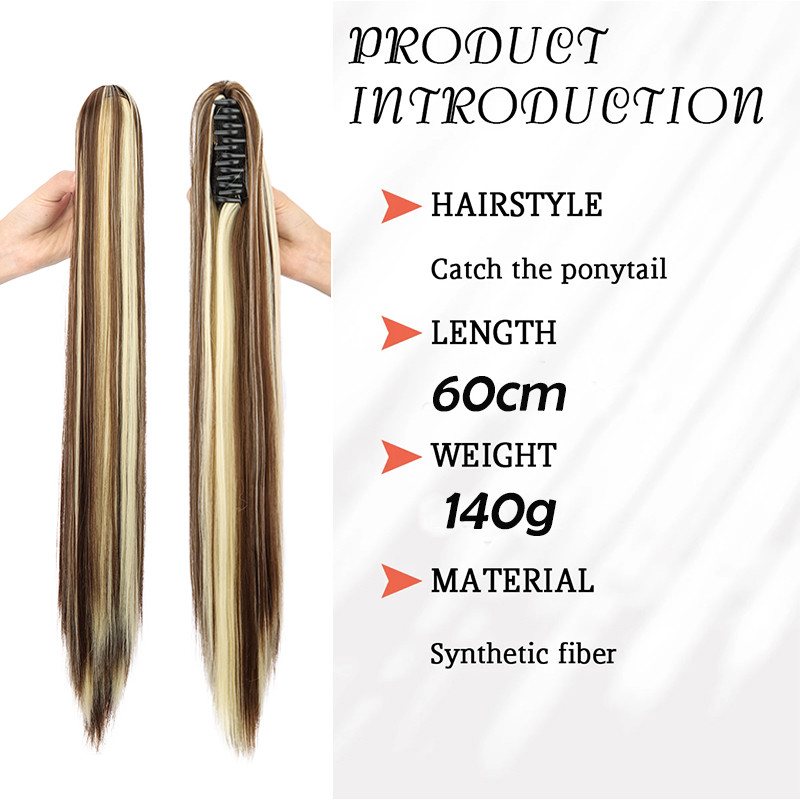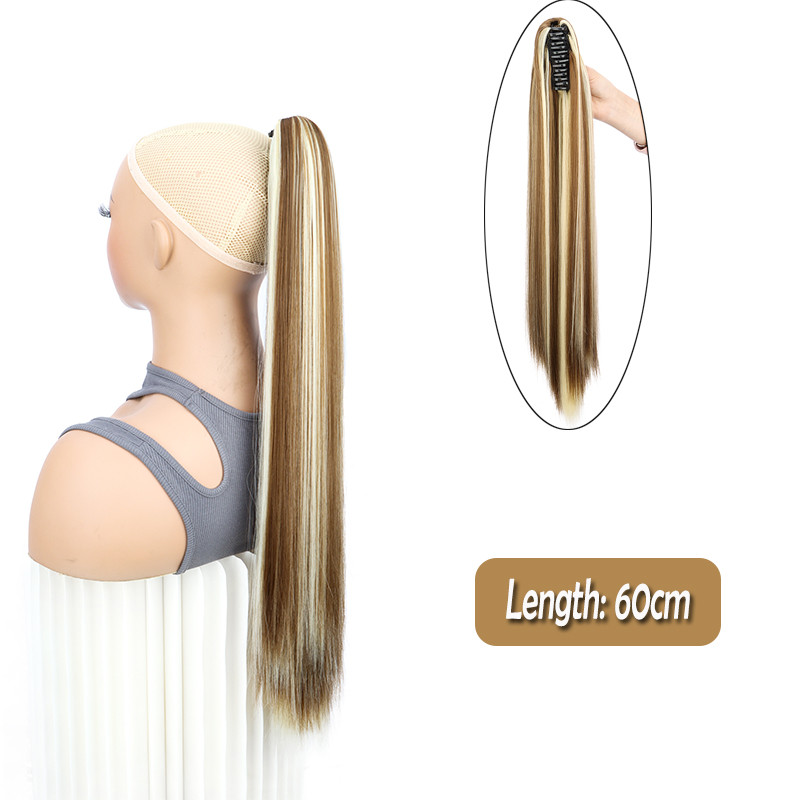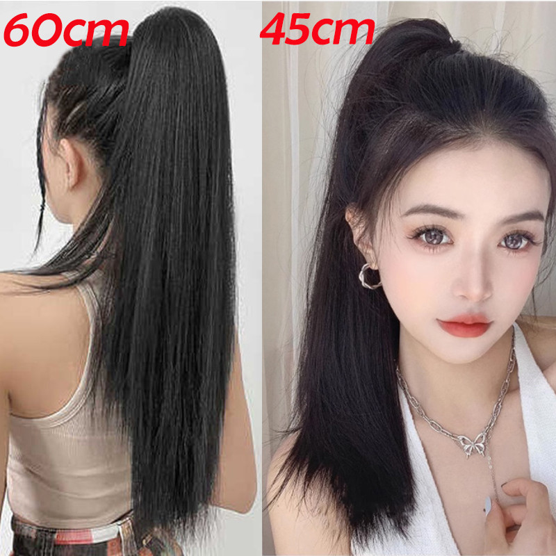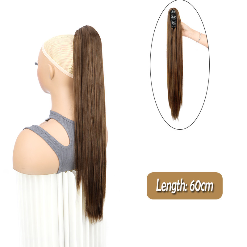Synthetic 60cm/45cm Long Straight Ponytail Hair Extensions Clip-on Ponytail Extension Hair For Women Pony Tail Hair Hairpiece