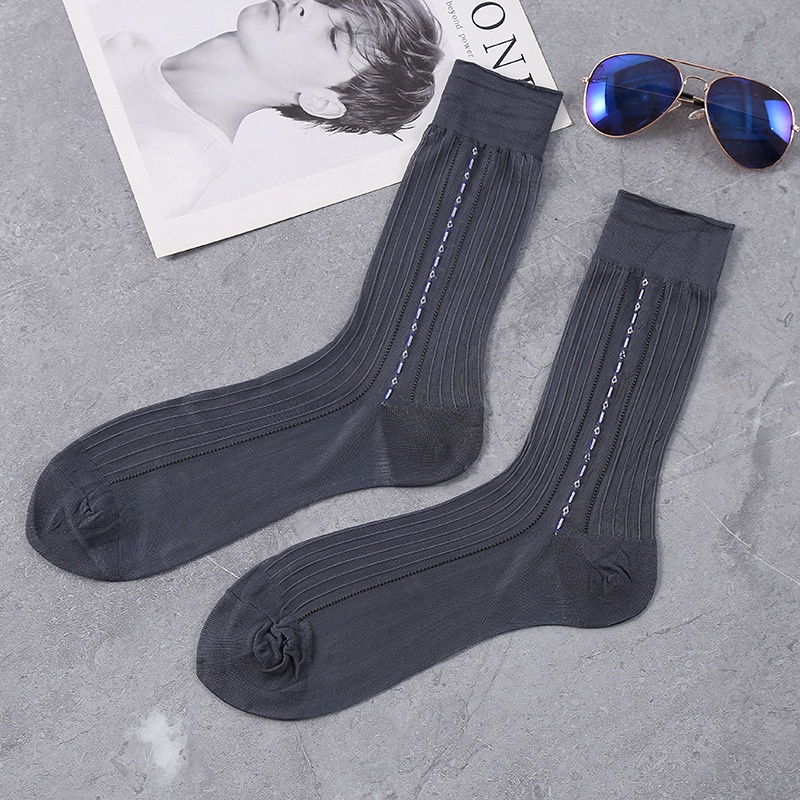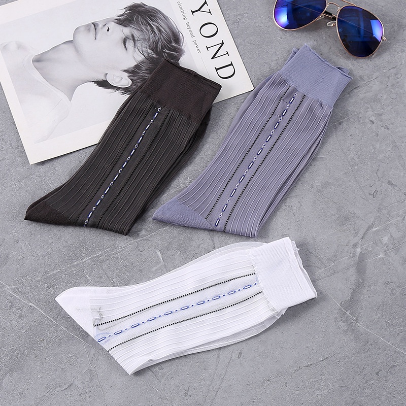 ELITE High Quality Silky Smooth Nylon Socks Men Sheer Mesh Summer Male Business Elite Sock Black Navy Gray Formal Sock
