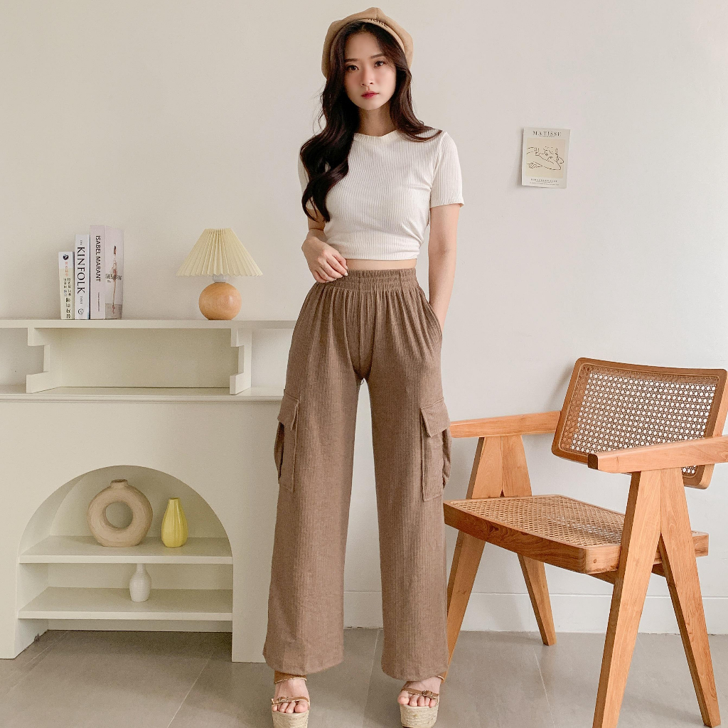 Tometoh | Gwen Cargo Pants Rib Culottes Pocket Basic Women's Pants