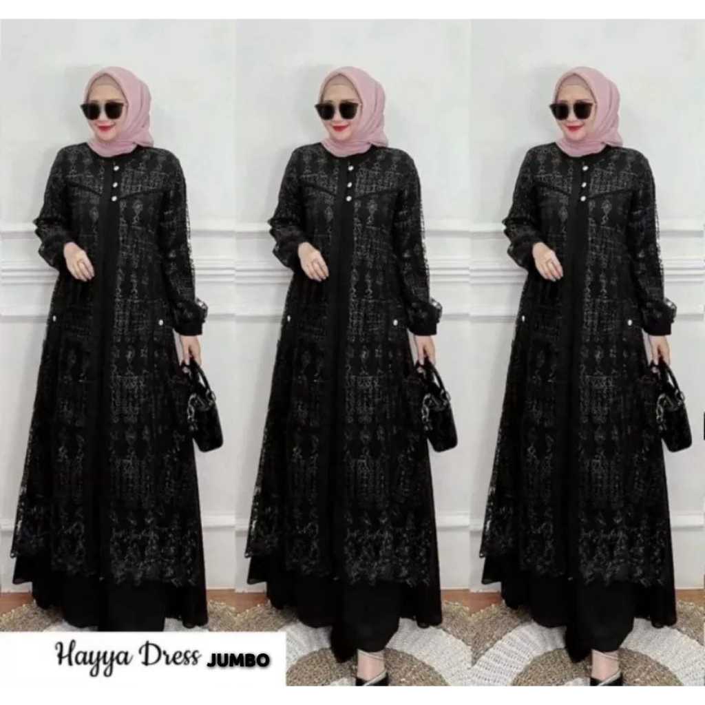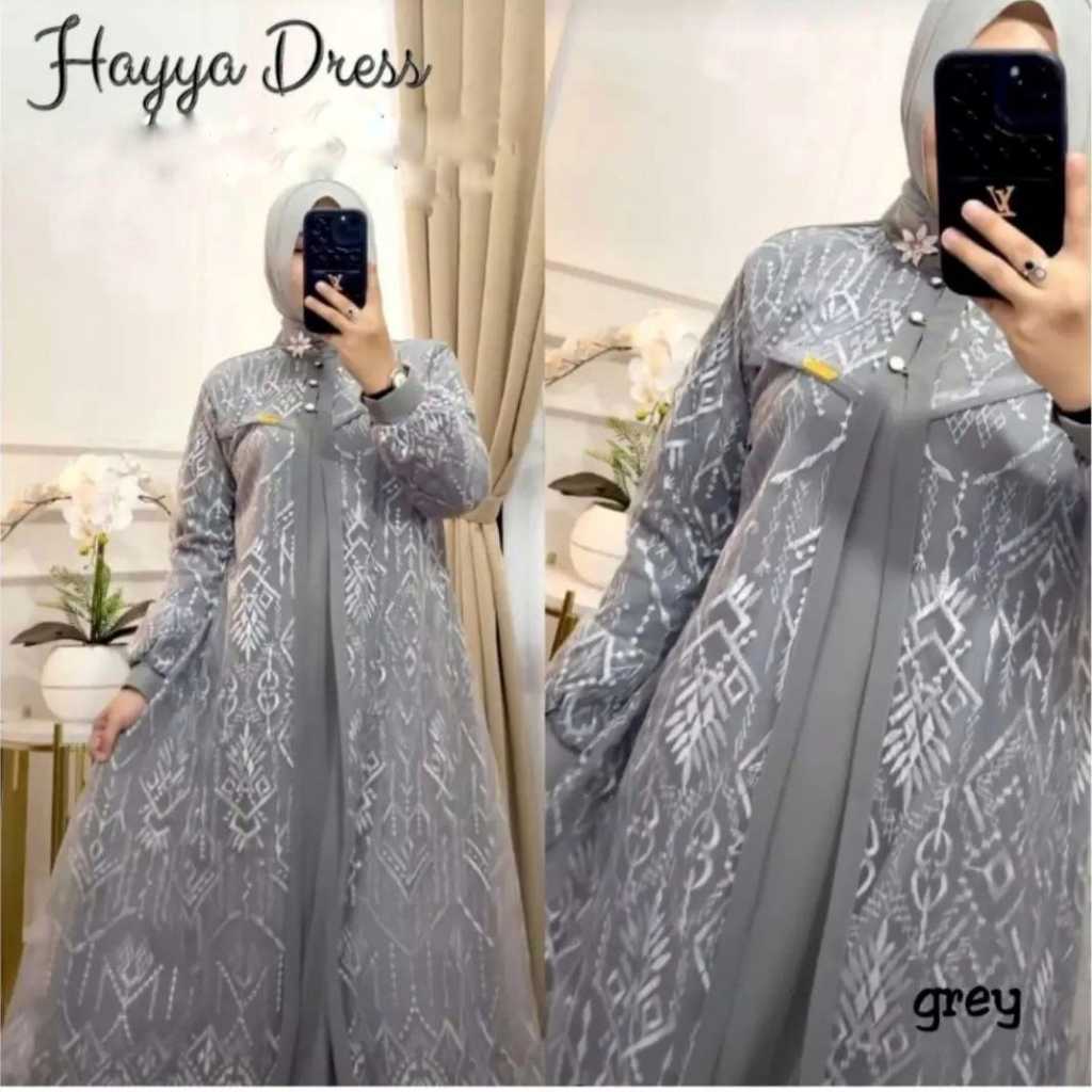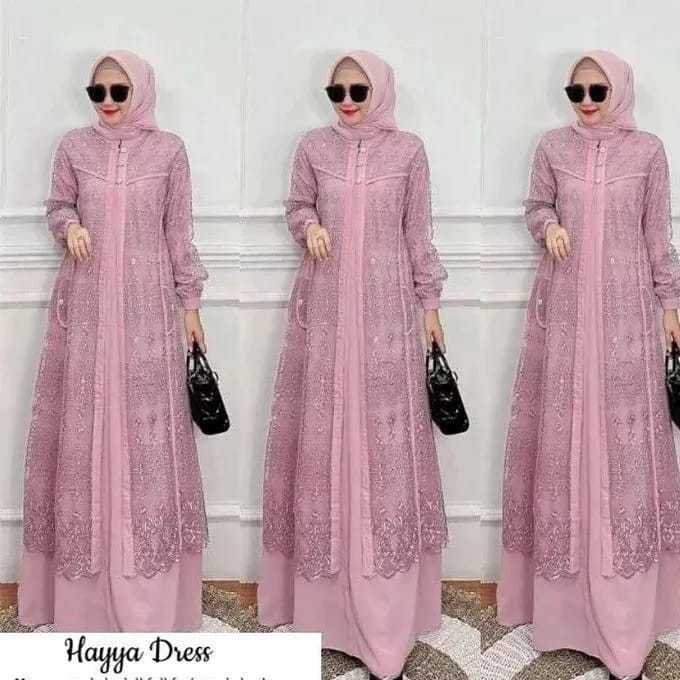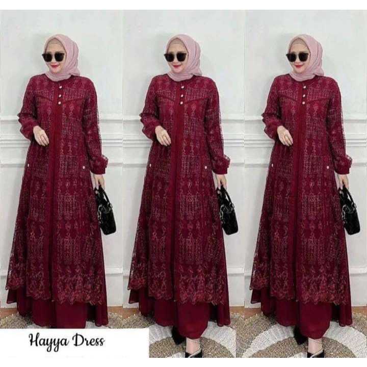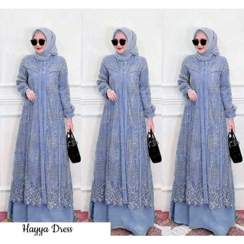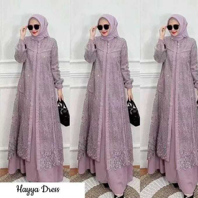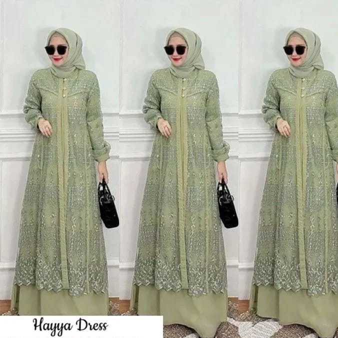 Hayya Women's Gamis Dress with Crinkle Mix Brukat Material, Contemporary Wedding Dress Crinkle Dress