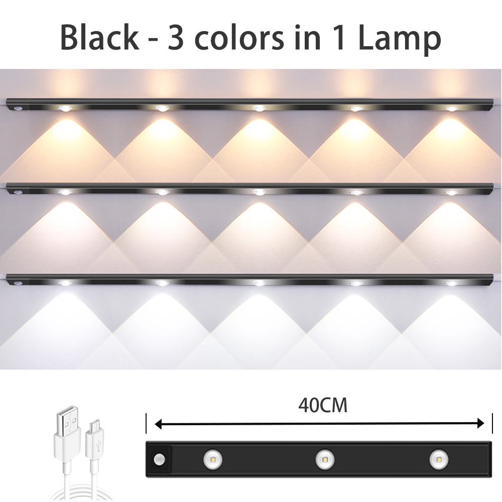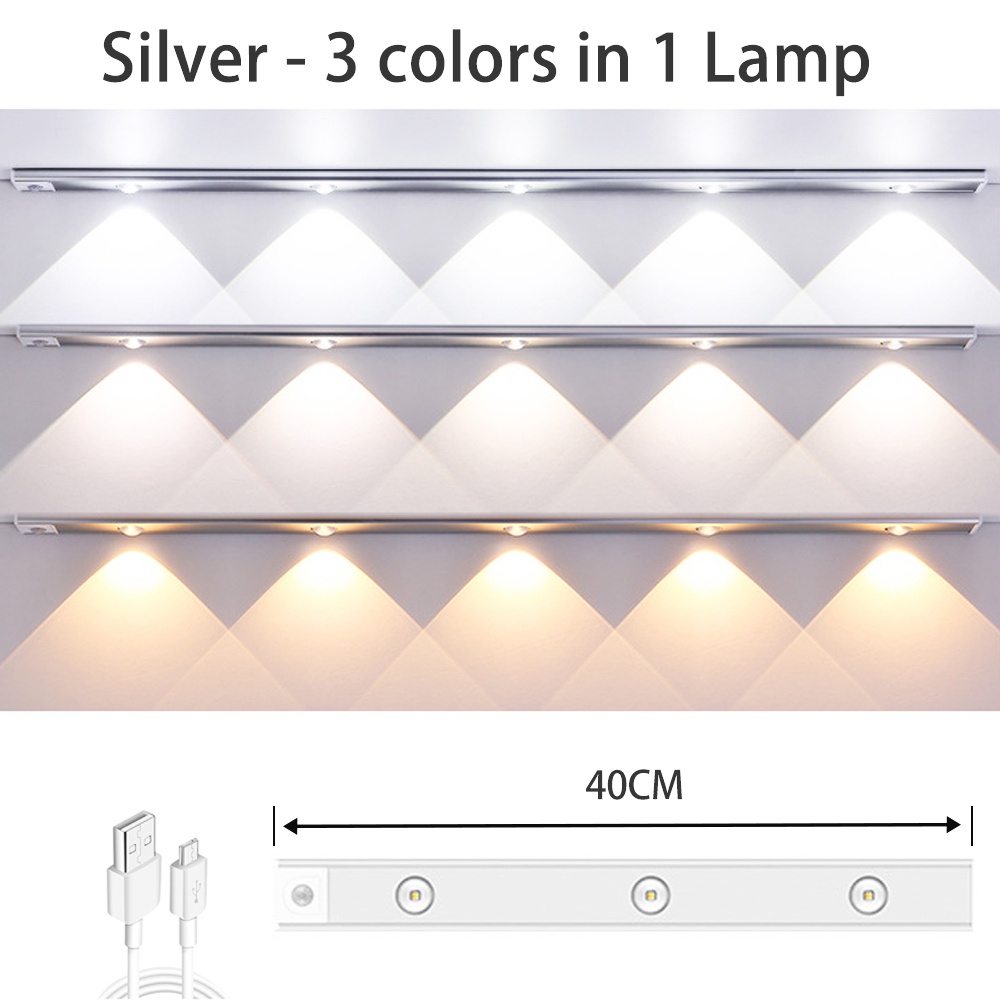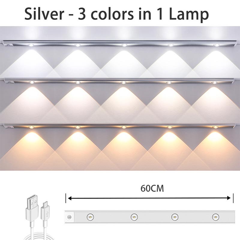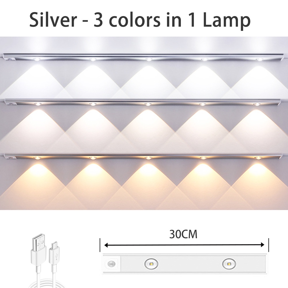 3 Color Dimmable Cat Eye Light Strip LED Desk Lamp Motion Sensor Light USB Rechargeable Kitchen Cabinet Wardrobe Lamp 20/30/40cm