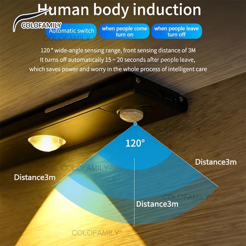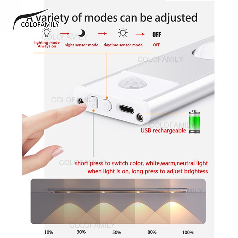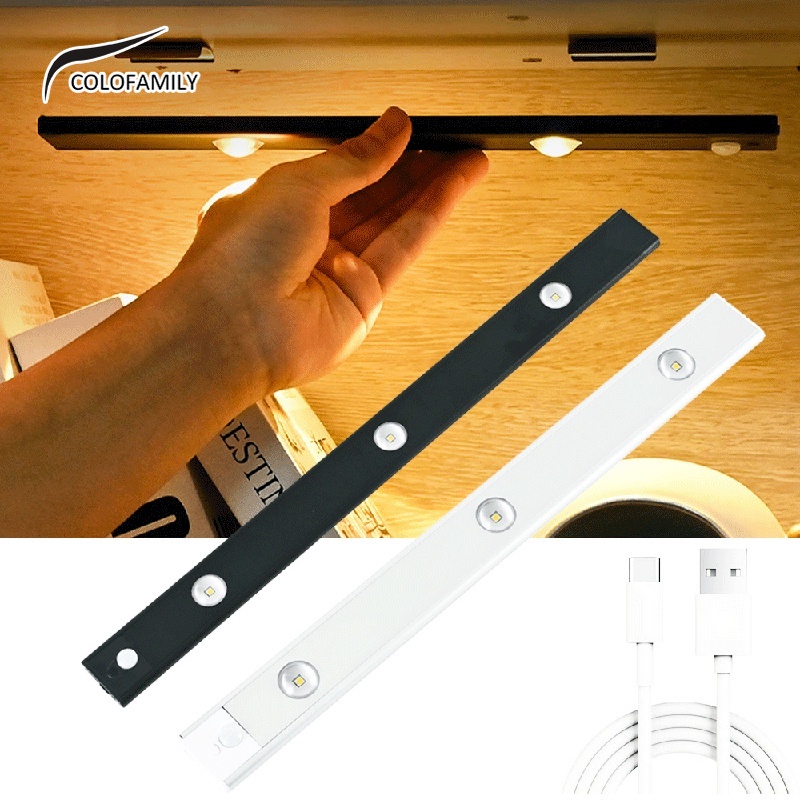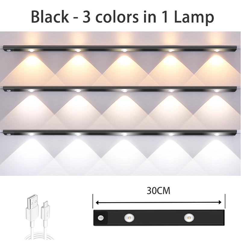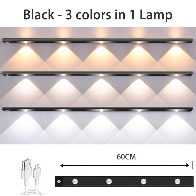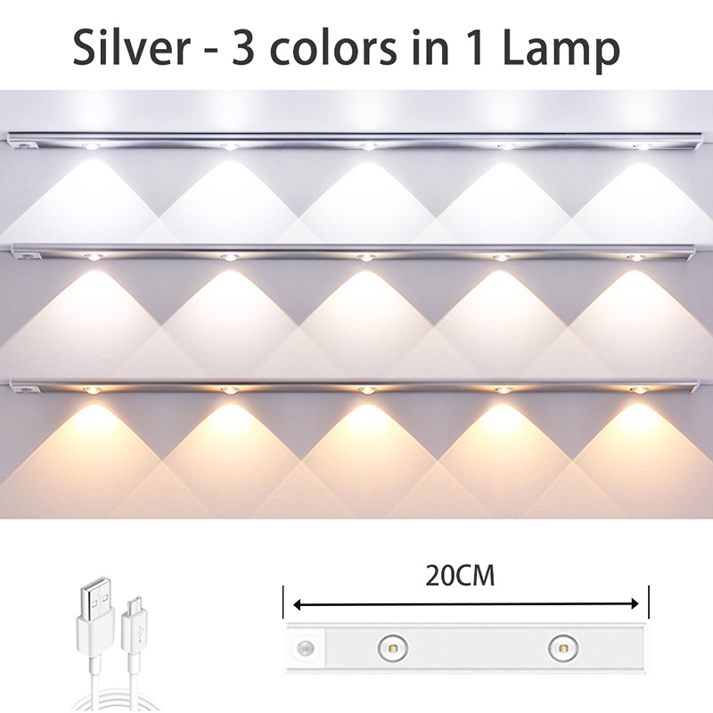 3 Color Dimmable Cat Eye Light Strip LED Desk Lamp Motion Sensor Light USB Rechargeable Kitchen Cabinet Wardrobe Lamp 20/30/40cm