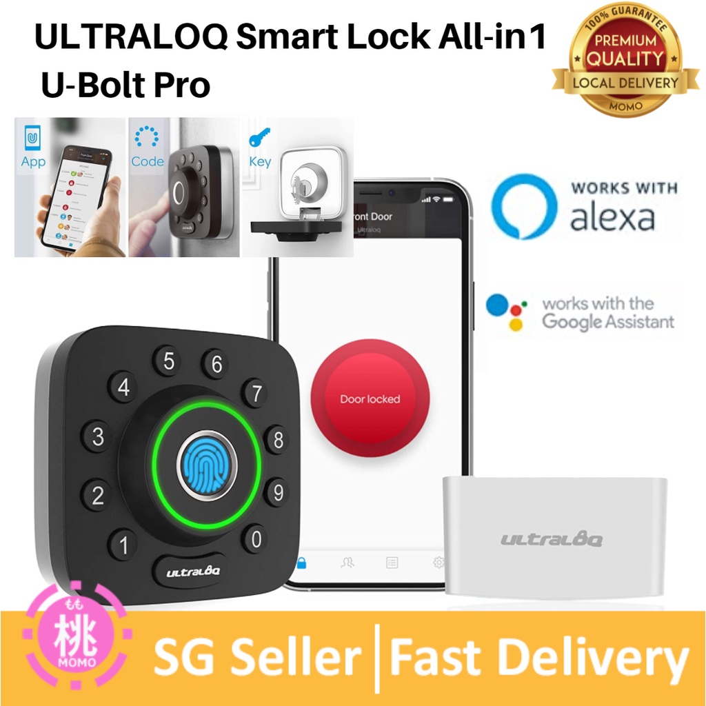 ULTRALOQ Smart Lock U-Bolt Pro + Bridge WiFi Adaptor, 6-in-1 Keyless Entry Door Lock, Bluetooth, Fingerprint and Keypad