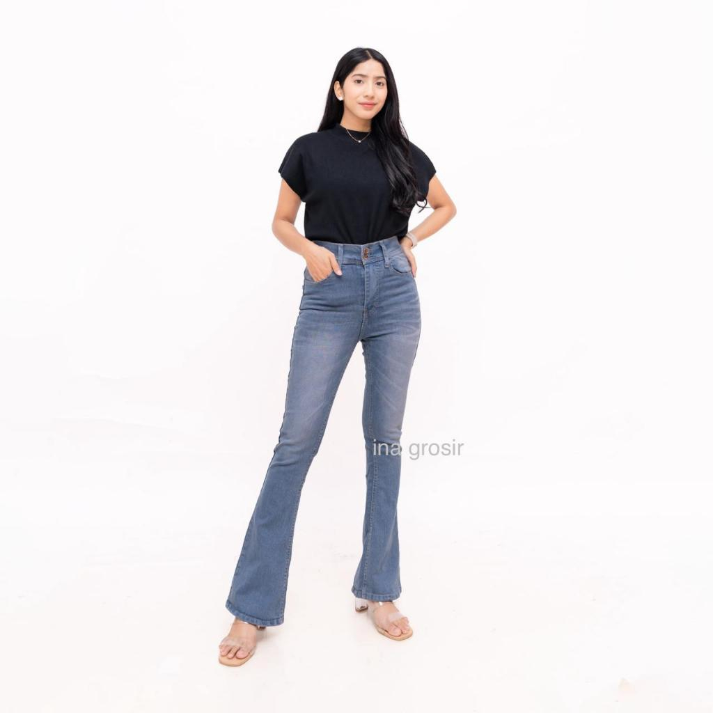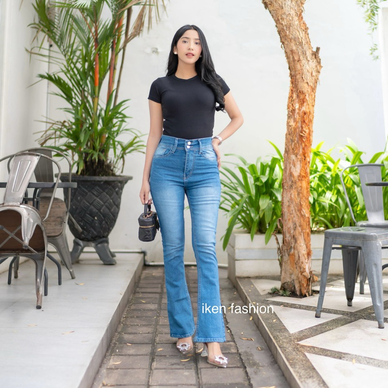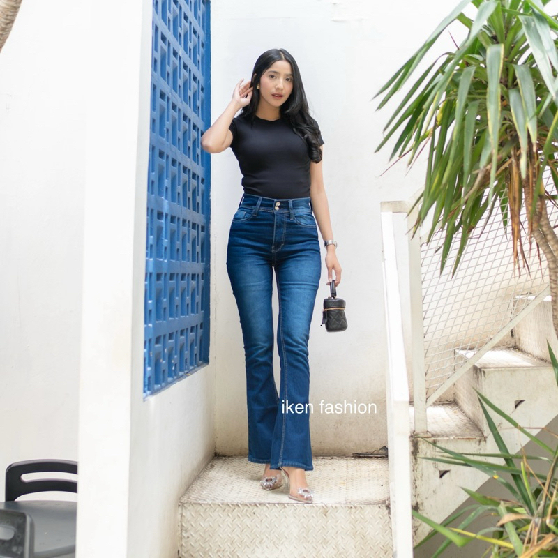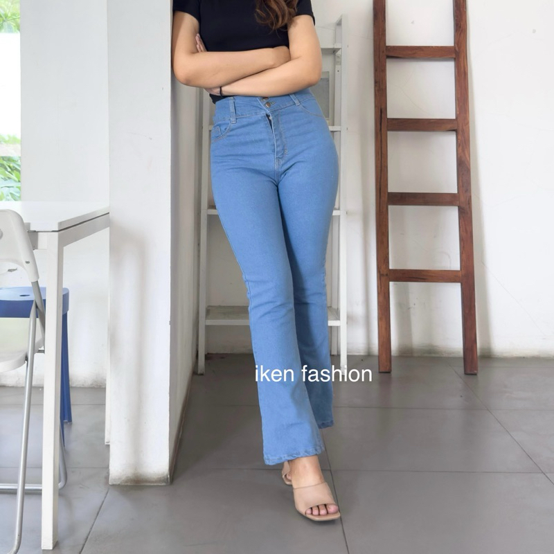 Iken Fashion Women's Cutbray Flared Jeans - Highwaist Cutbray Retro Jeans 2 Button Flared